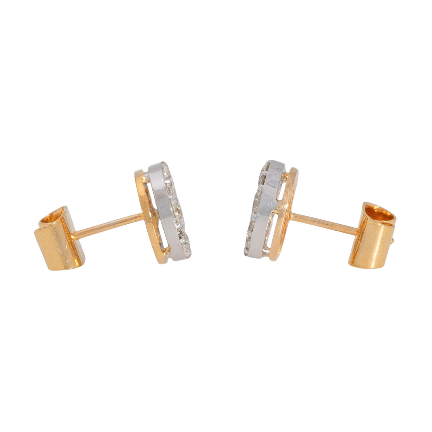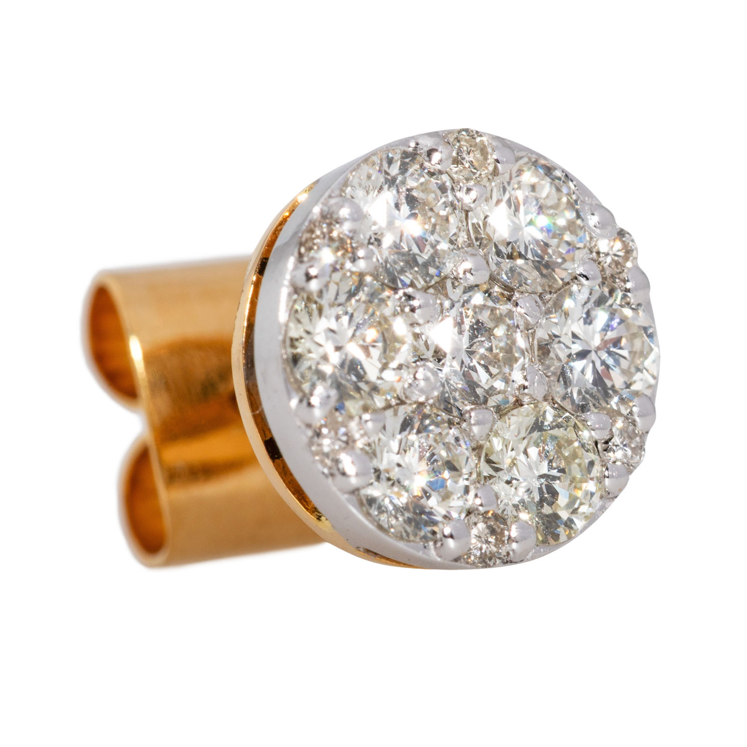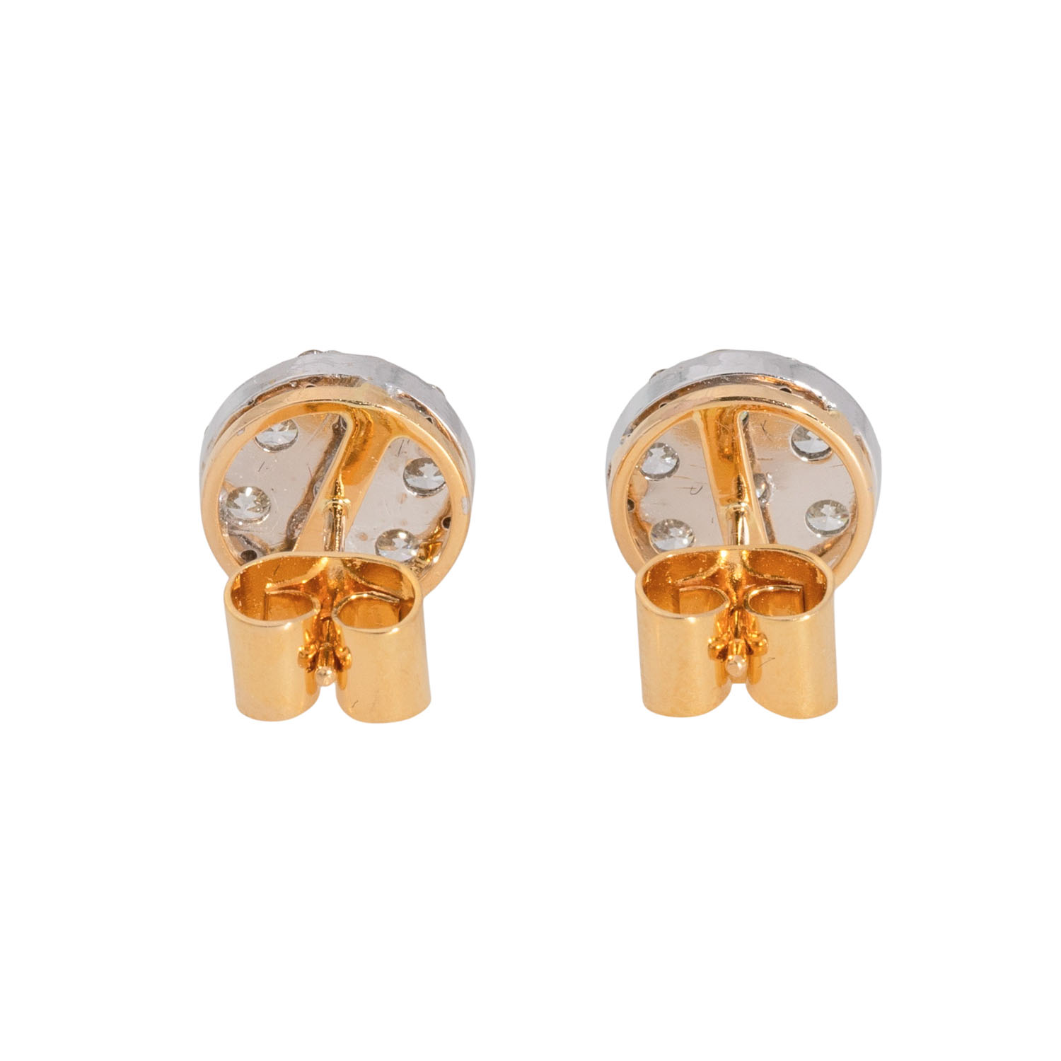 Pair of stud earrings with 26 brilliant-cut diamonds totalling ca. 0.92 ct, 4 stones chipped, YG/WG 18K, 4.3 g, 21st good condition.