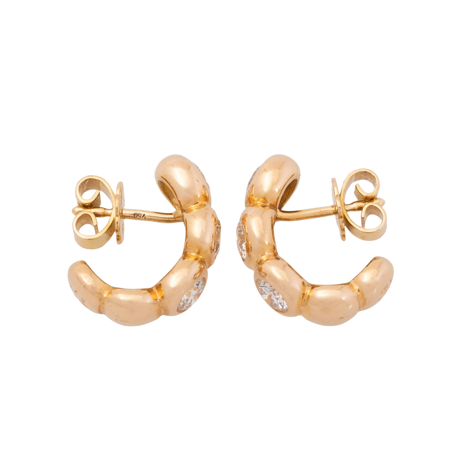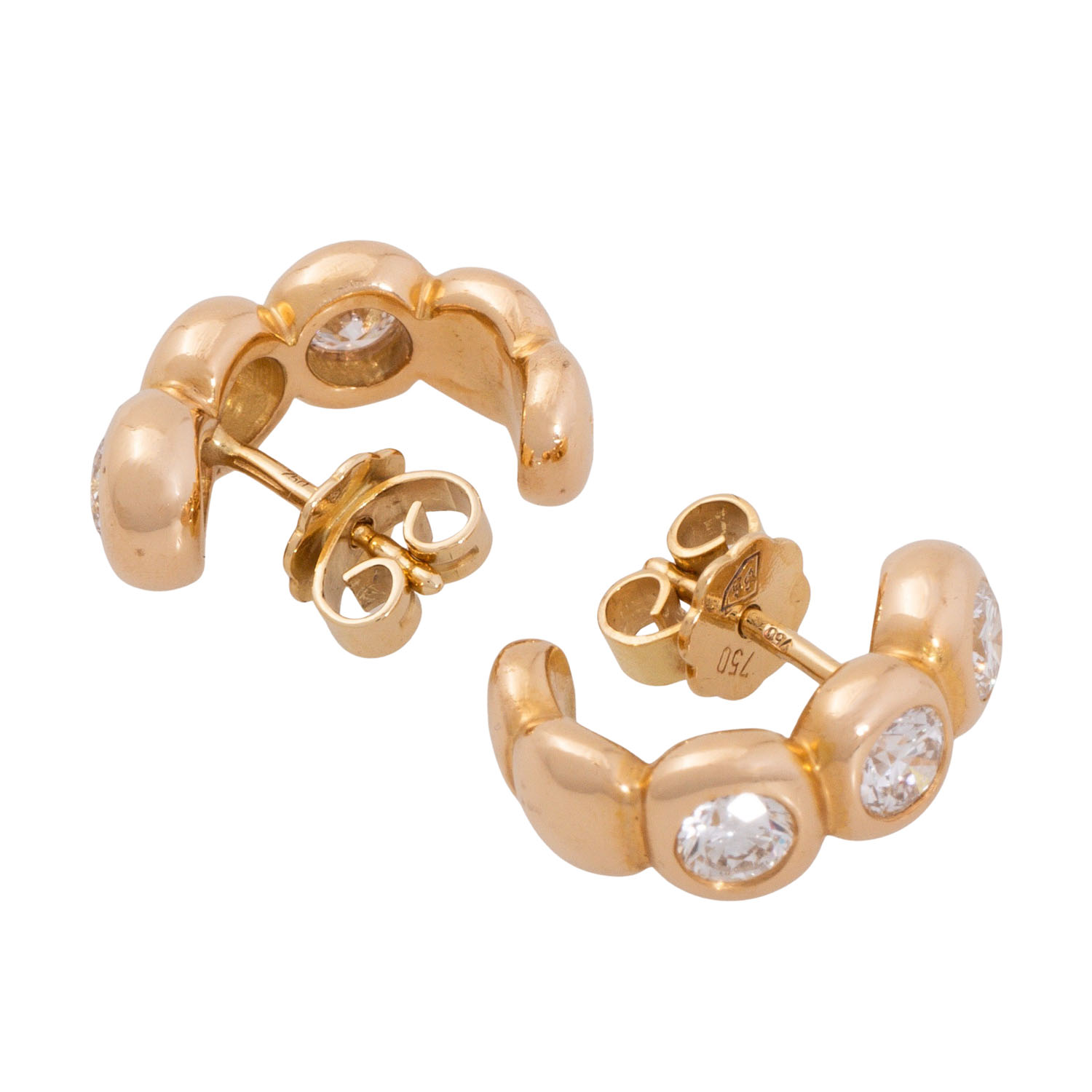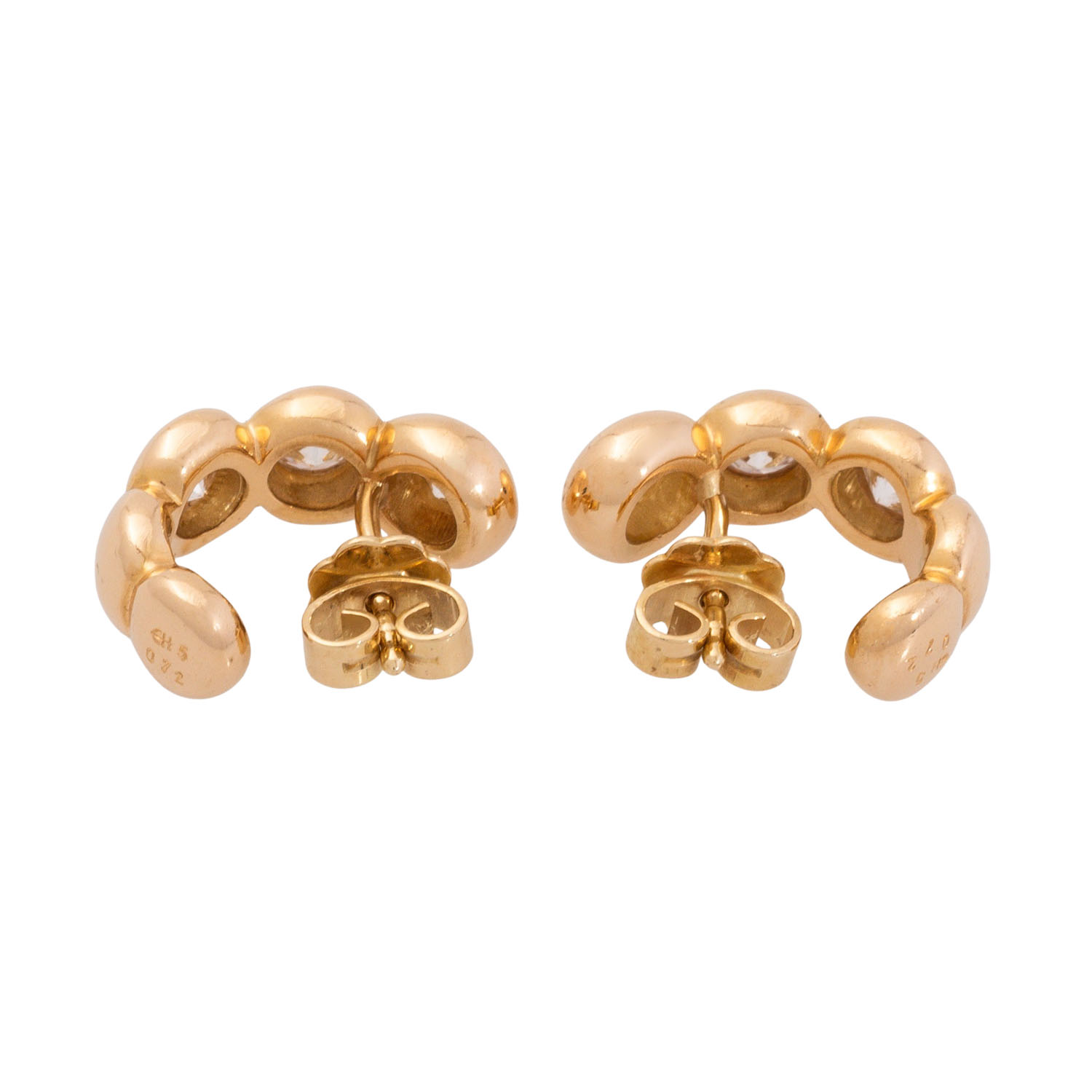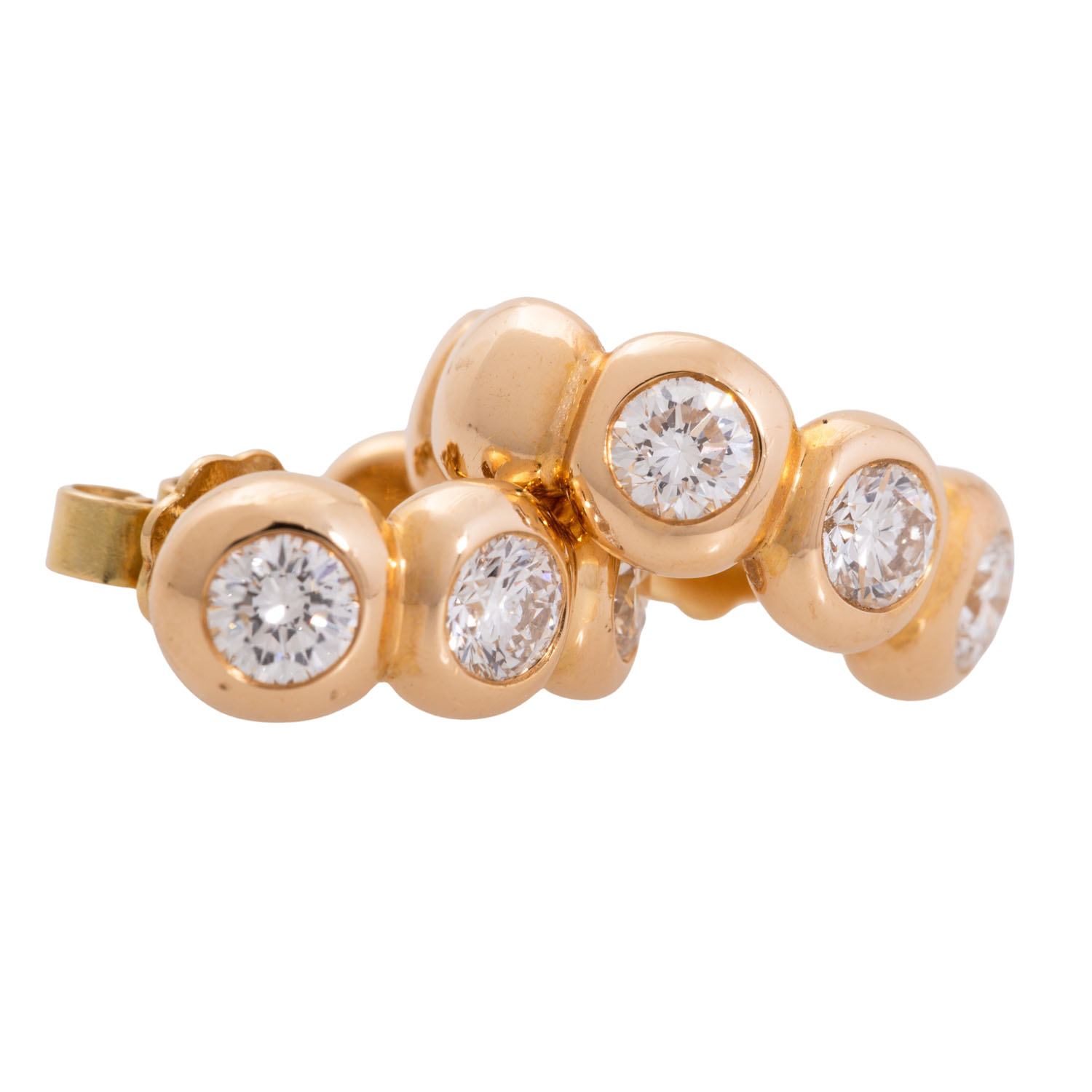 Pair of earstuds with 6 brilliant cut diamonds, totalling 1.44 ct, RW (F-G)/SI (cert.), 18K yellow gold, 9.1 g, L x W: 17 x 6 mm, 1996, minor signs of wear, accessory: original receipt.