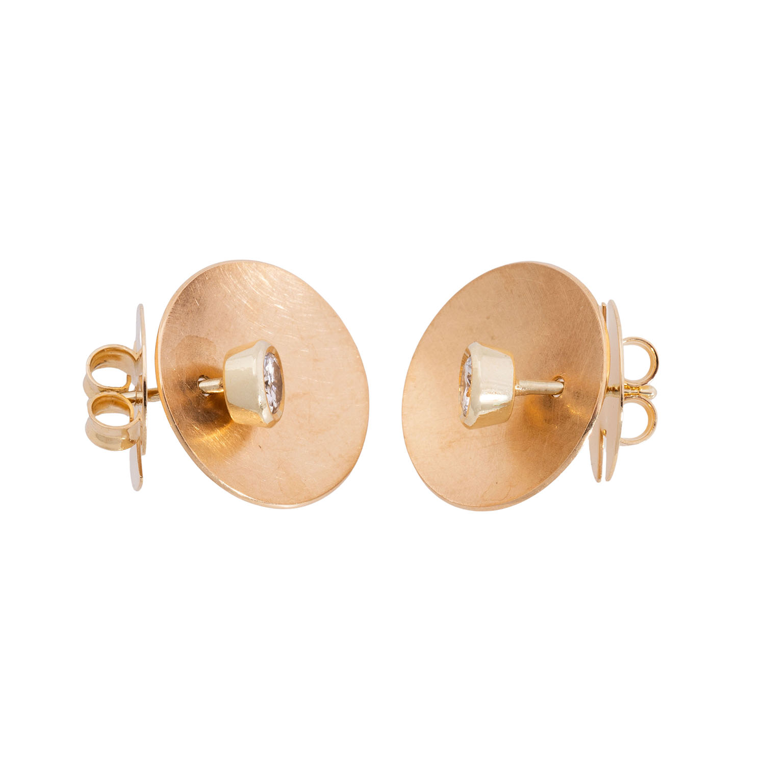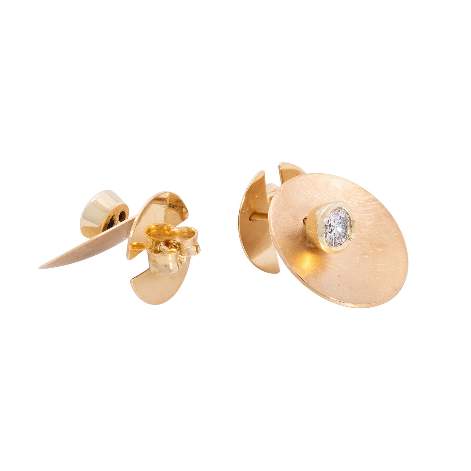 Pair of solitaire earstuds with brilliant-cut diamonds totall. ca. 0.70 ct, ca. WHITE (H)/SI,18K yellow gold, 5.5 g, 21st century, minor signs of wear