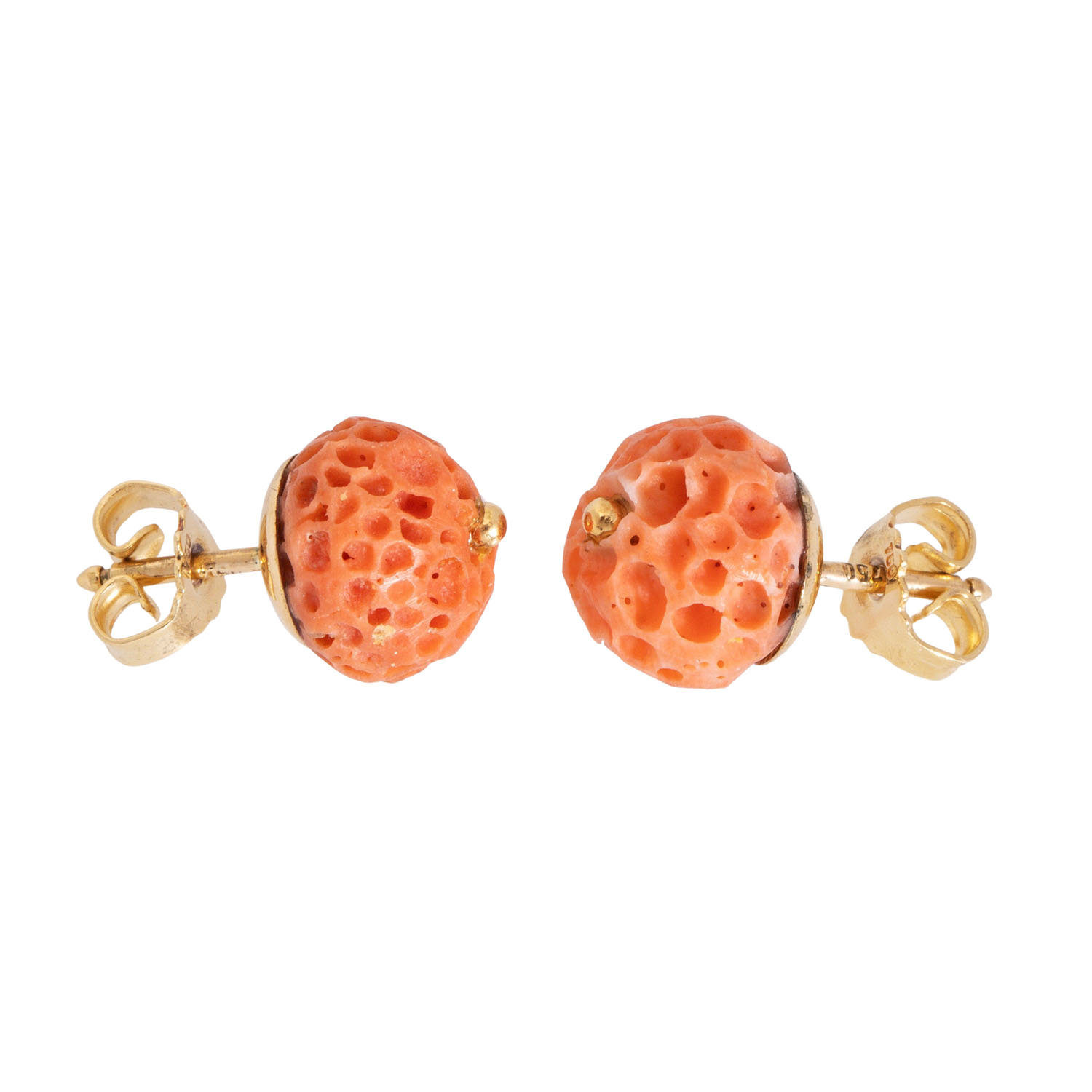 Pair of stud earrings (clip earrings) with 2 coral spheres,