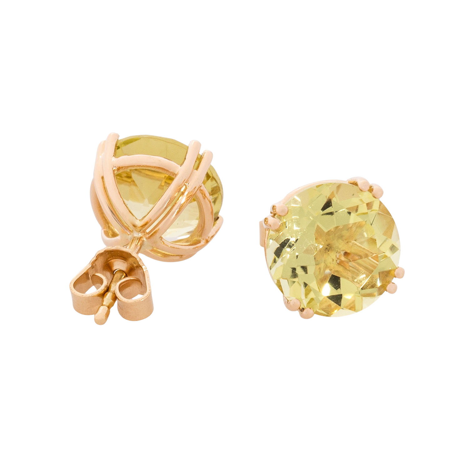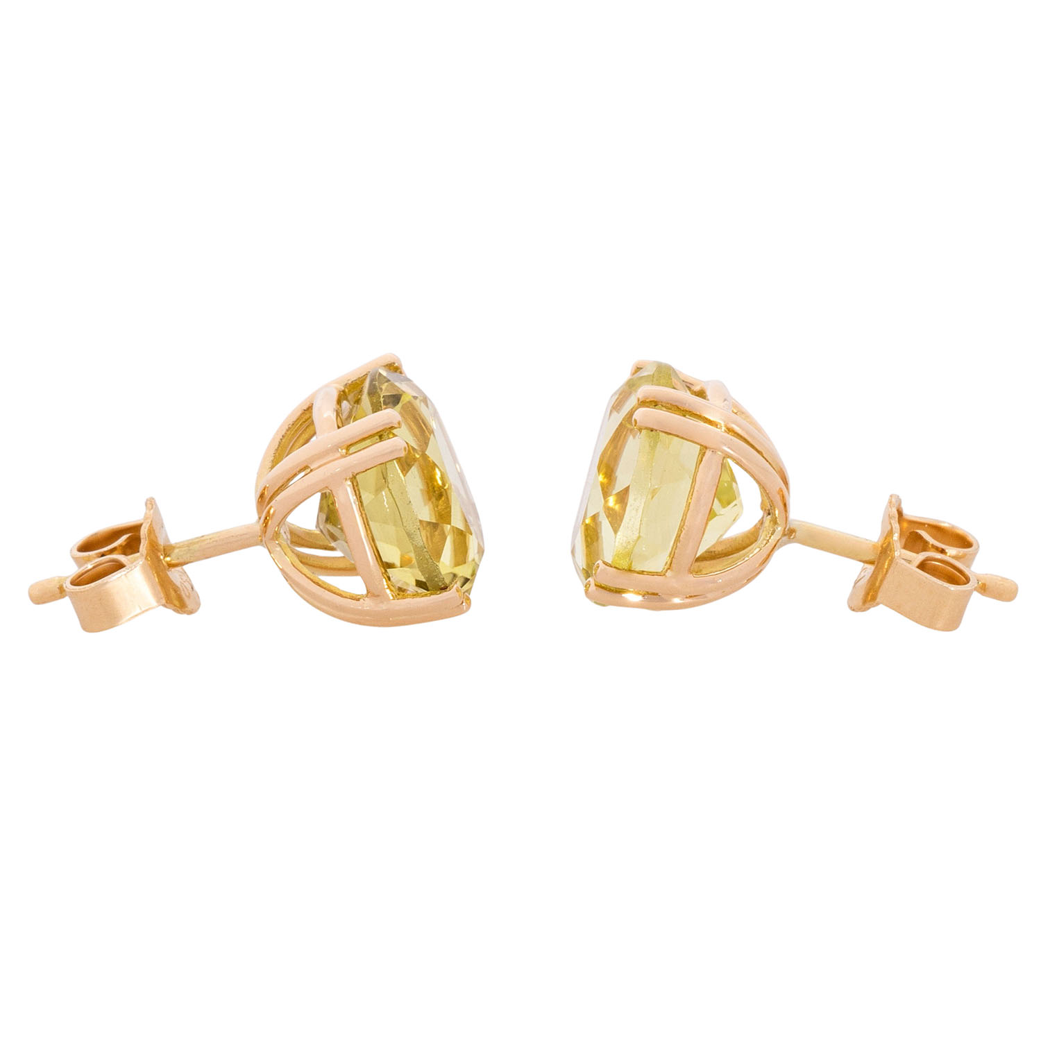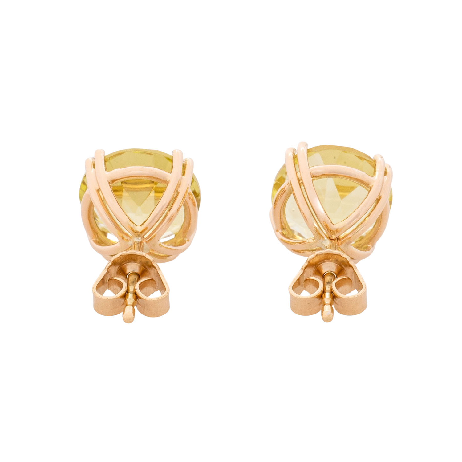 Pair of stud earrings with lemon citrine totalling ca. 7.20 ct, YG 18K, 4.1g, D: 10.7 mm, 21st century, mint condition.