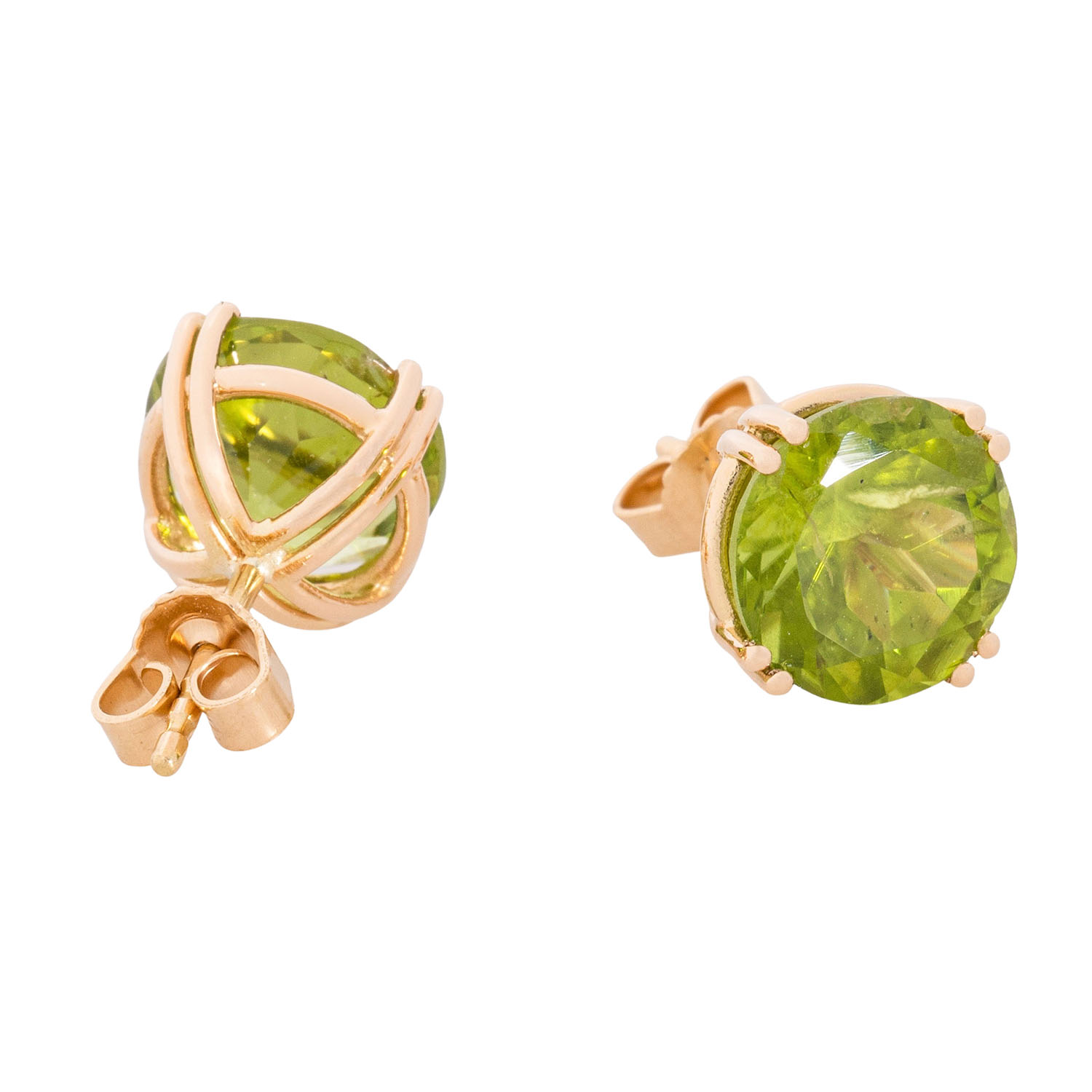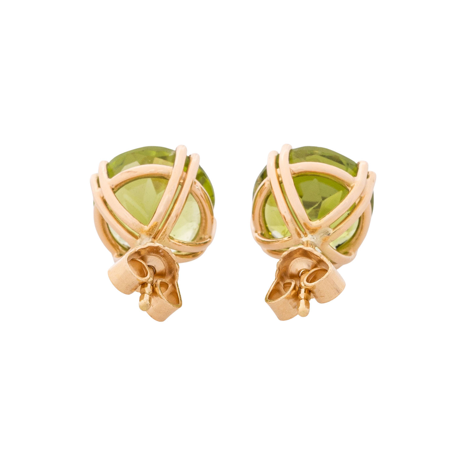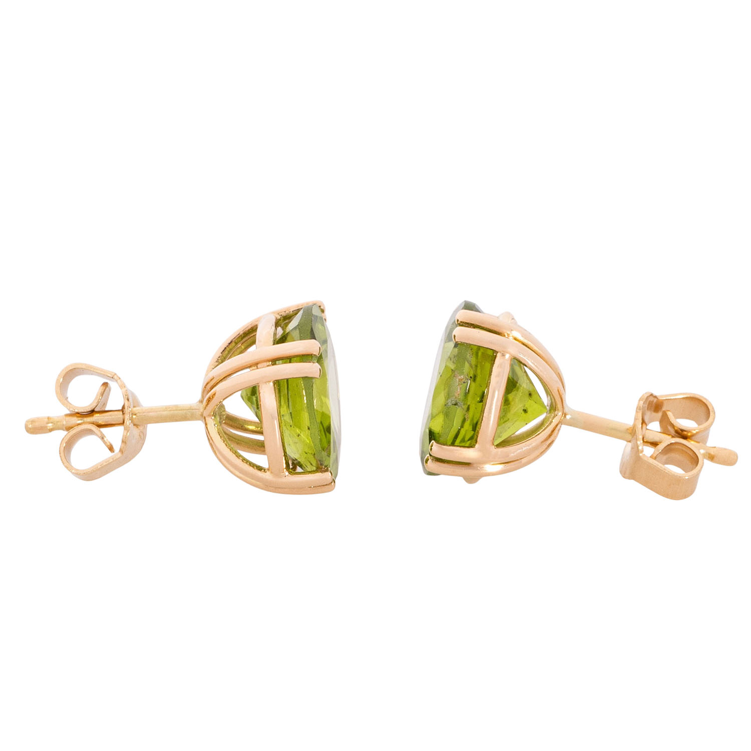 Pair of stud earrings with peridot totalling ca. 6.70 ct, YG 18K, 4.1g, D: 10.7 mm, 21st century, mint condition.