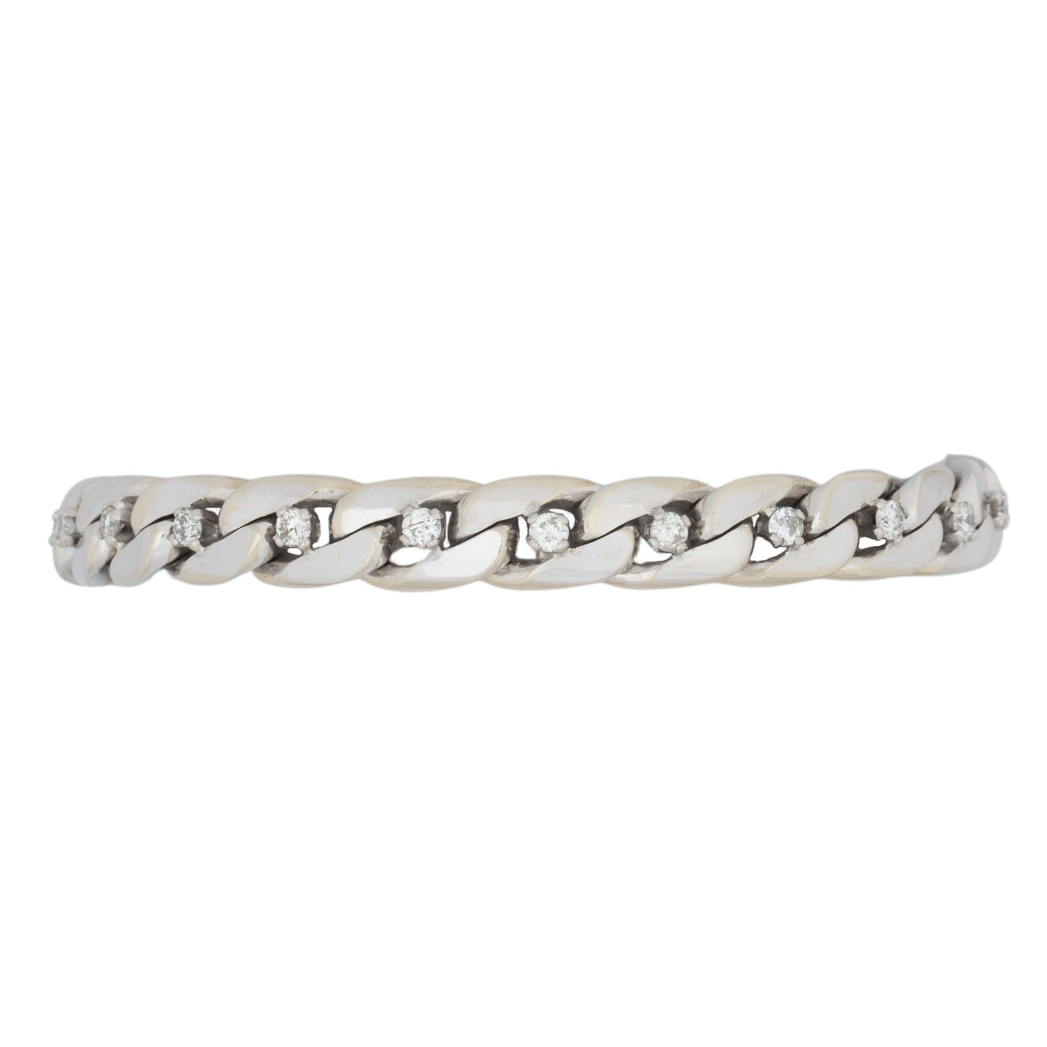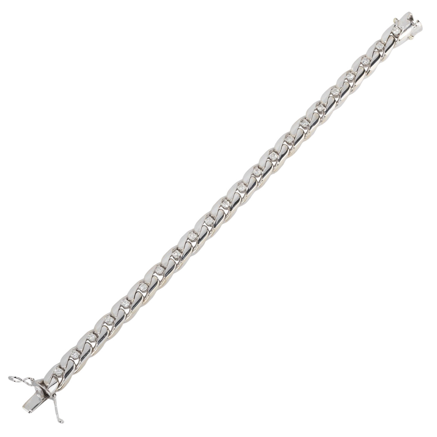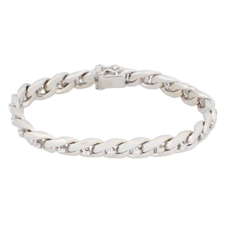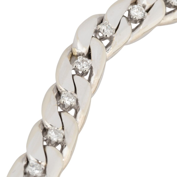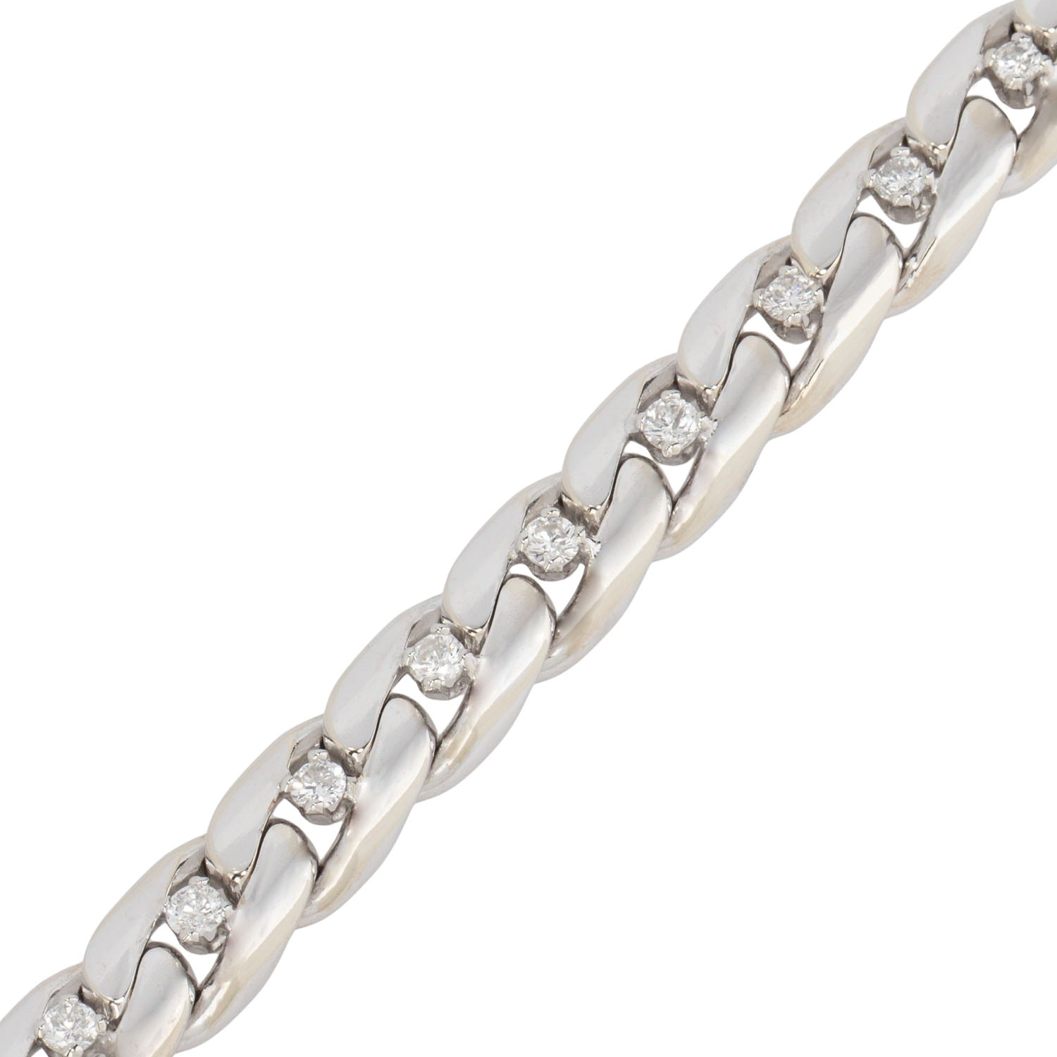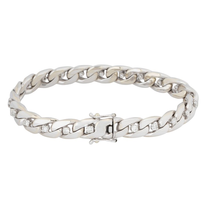 Curb link bracelet with 22 brilliant-cut diamonds totall. ca. 1.5 ct, good to medium colour and clarity, 14K white gold, 43.2 g, L: ca. 19 cm, late 20th century, minor signs of wear, box clasp with 2x saftey catches.