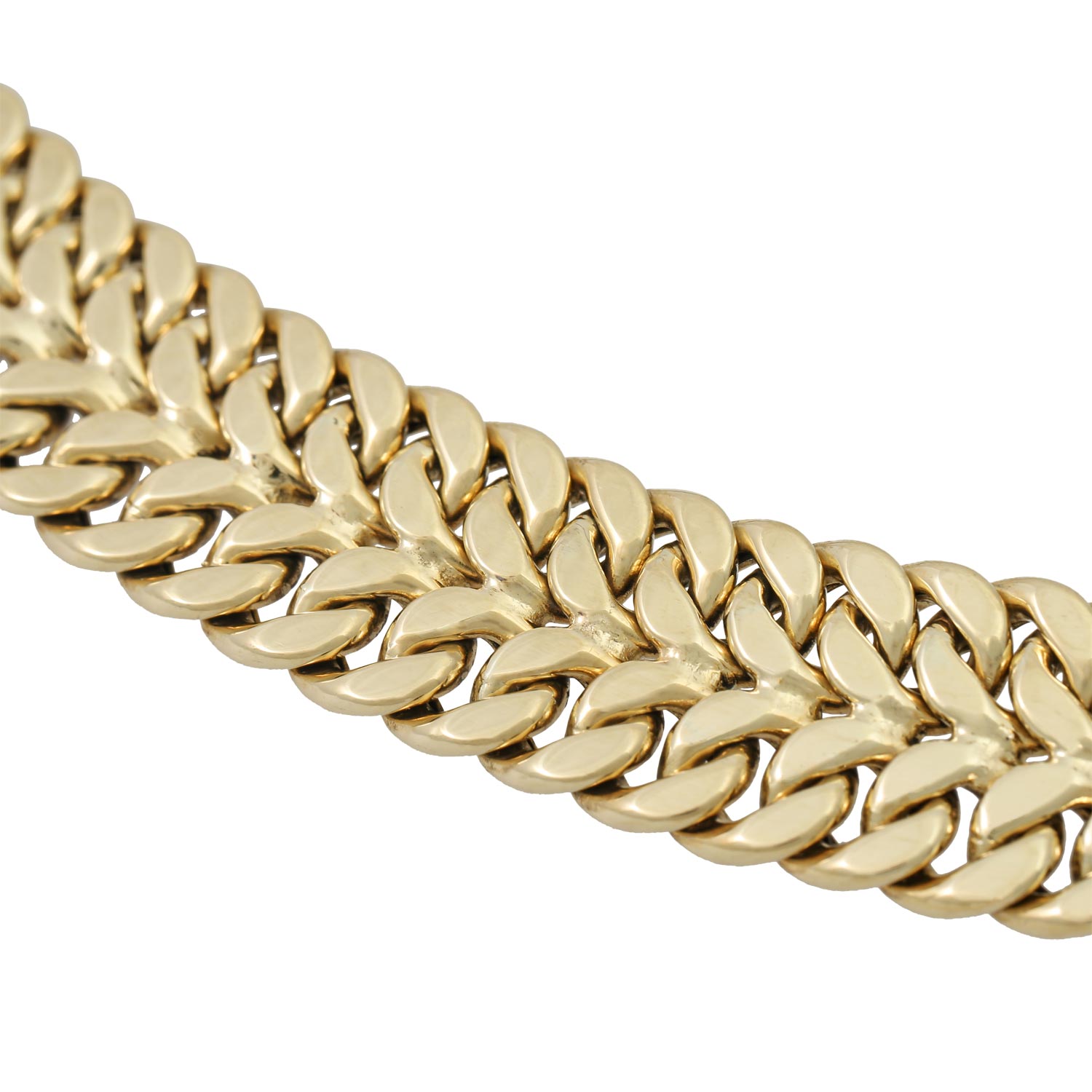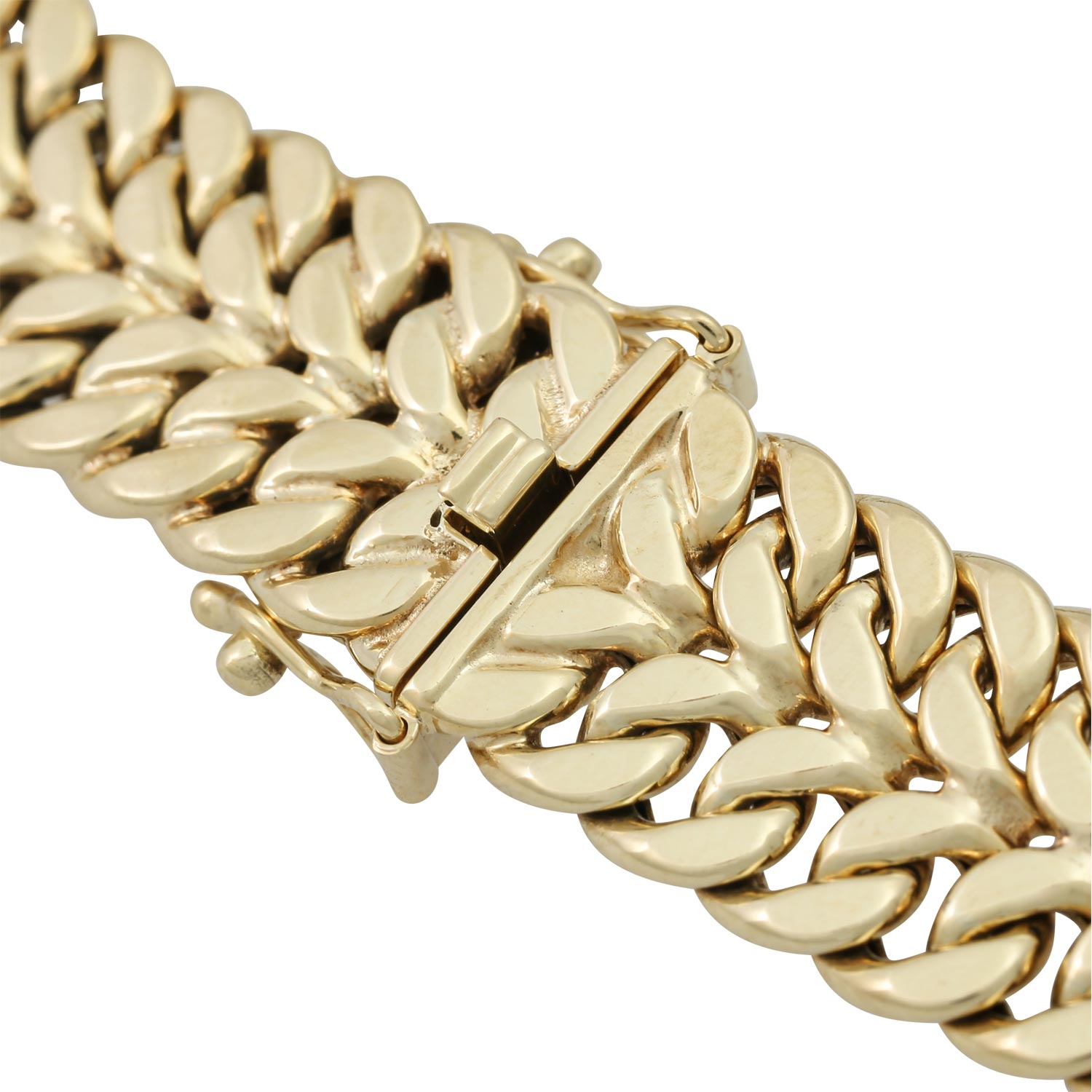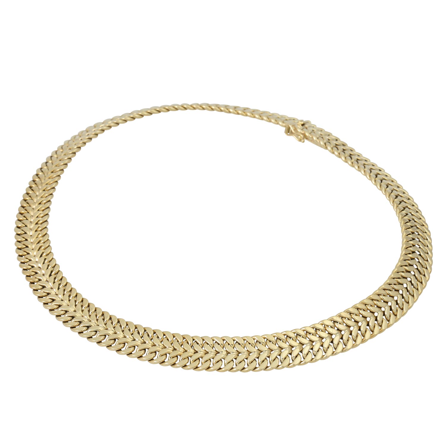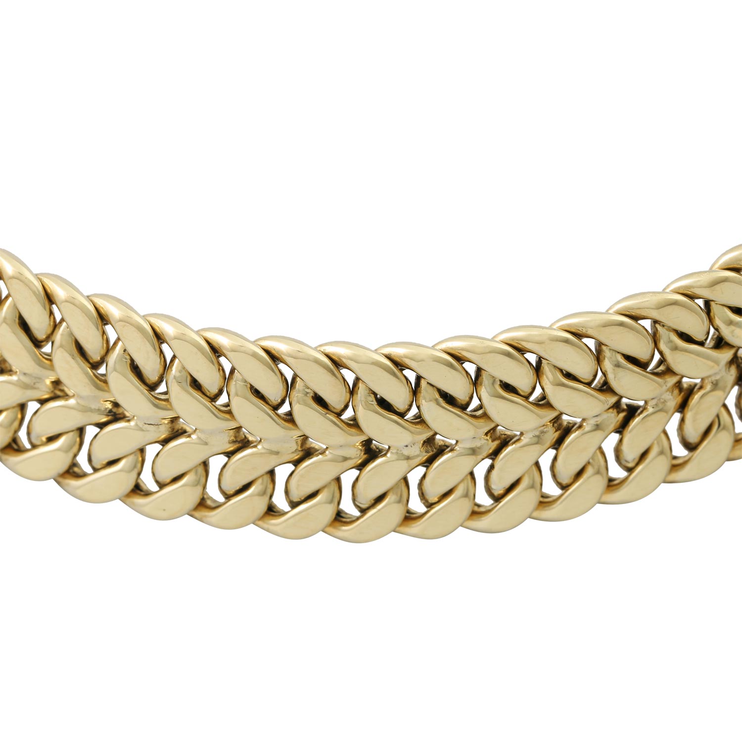 Phantasy necklace, polished, 14K yellow gold, 60.6 g, L: ca. 42 cm, W: ca. 1.3 cm, mid 20th century, minor signs of wear, box clasp with 2x safety catch.