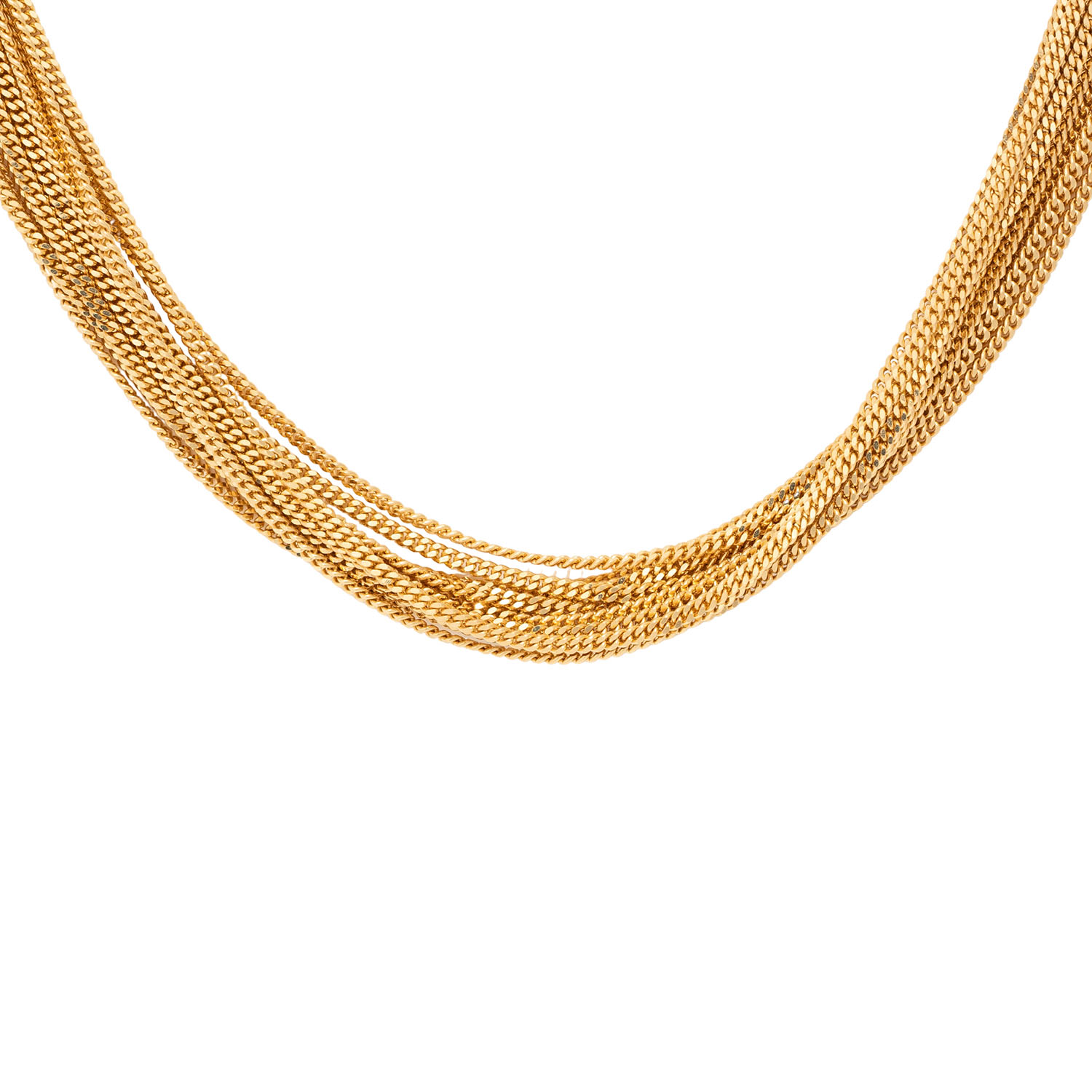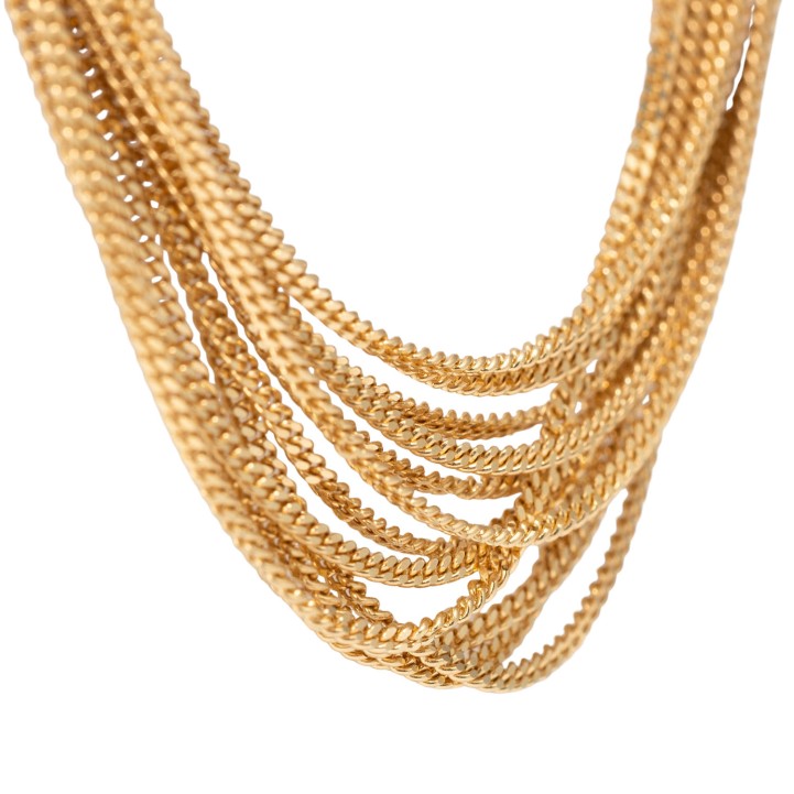 Curb link chain with 12 rows, 18K yellow gold, 42,1 g, L: 71 cm, W (each row): 1 mm, box clasp W: 15 mm, 2 safety catches, 20./21. century, minimal signs of wear.