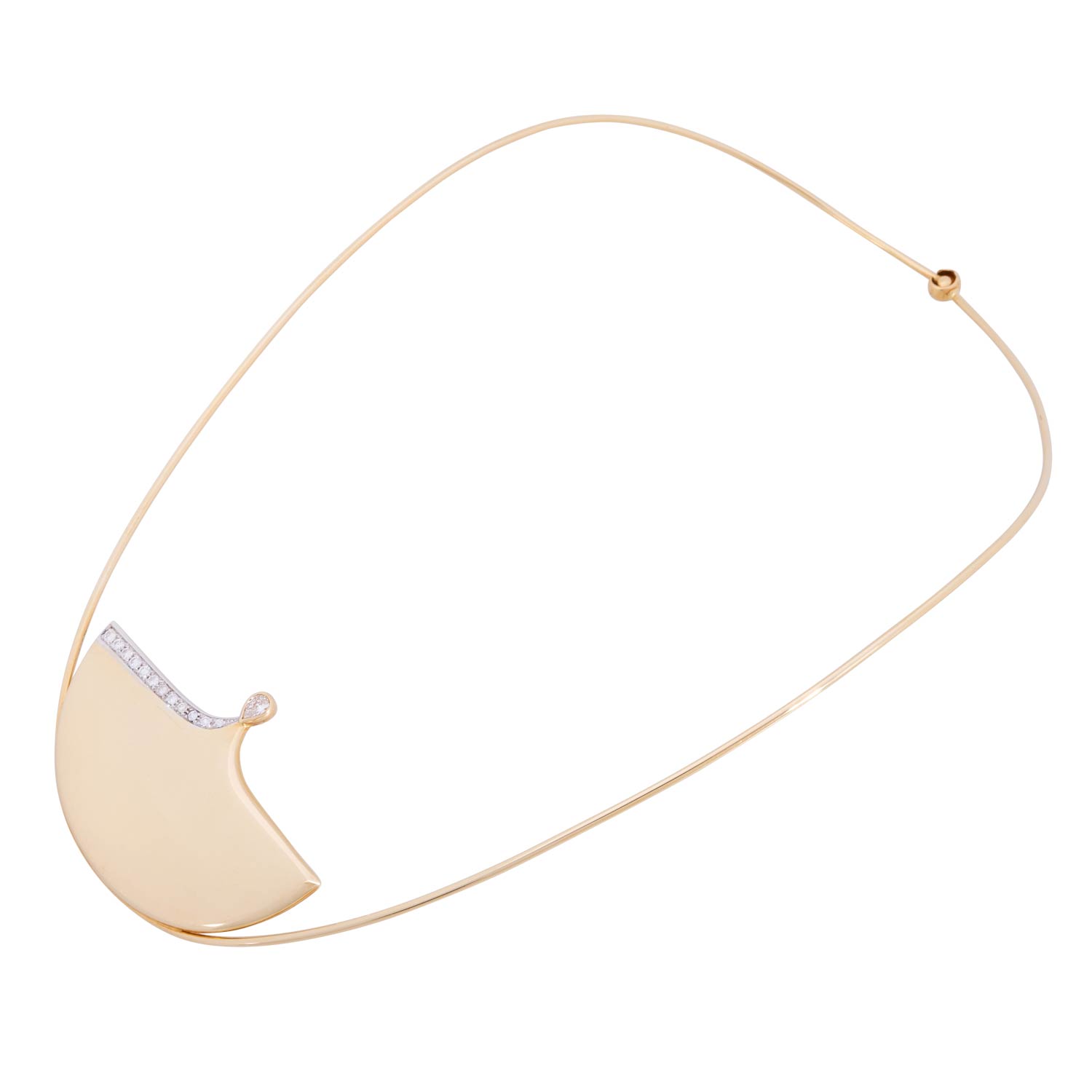 PAOLO SPALLA necklace, brilliant-cut and pear shaped diamonds totall. ca. 0.60 ct, good colour and clarity,18K white and yellow gold, 31 g, L: ca. 50 cm, 20th/21st century, minor signs of wear.