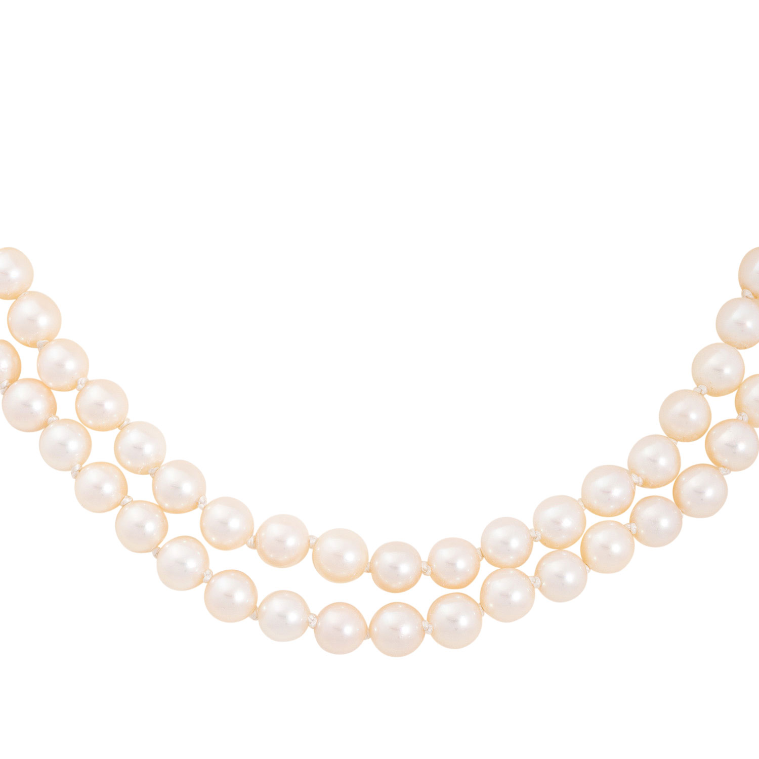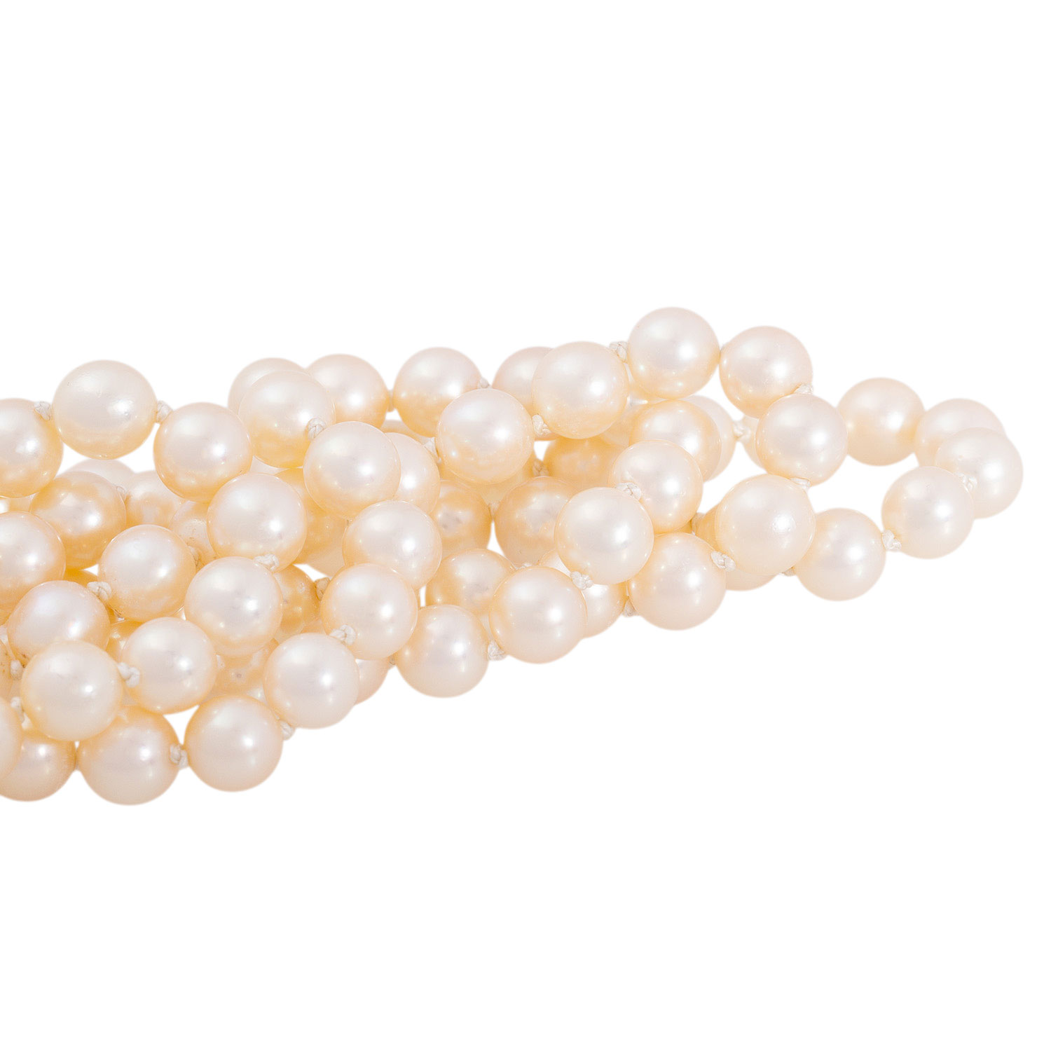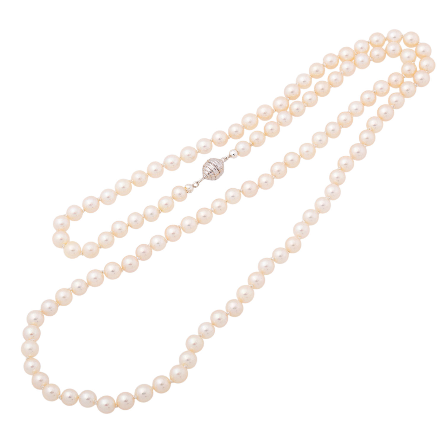 Cultured akoya pearl necklace, ca. 6.8 -7 mm, clasp sterling silver 925, 56.9 g, L: ca. 88 cm, mid 20th century, minor signs of wear.