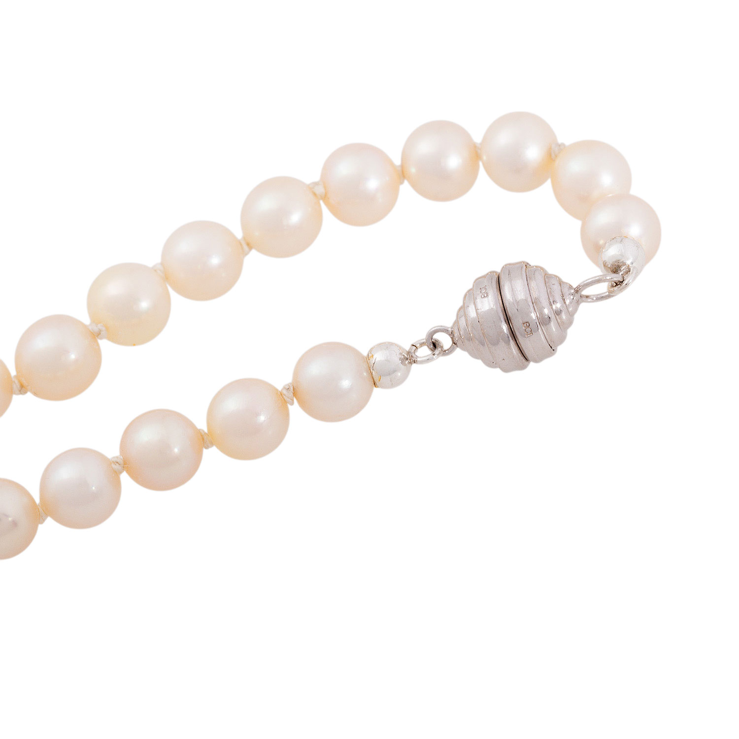 Pearl necklace made from 47 white Akoya cultured pearls,