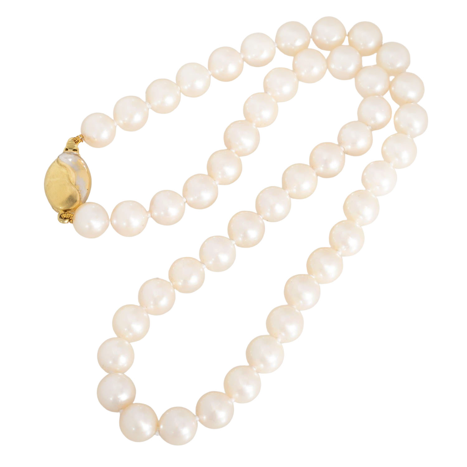 Pearl necklace made from 47 white Akoya cultured pearls,
