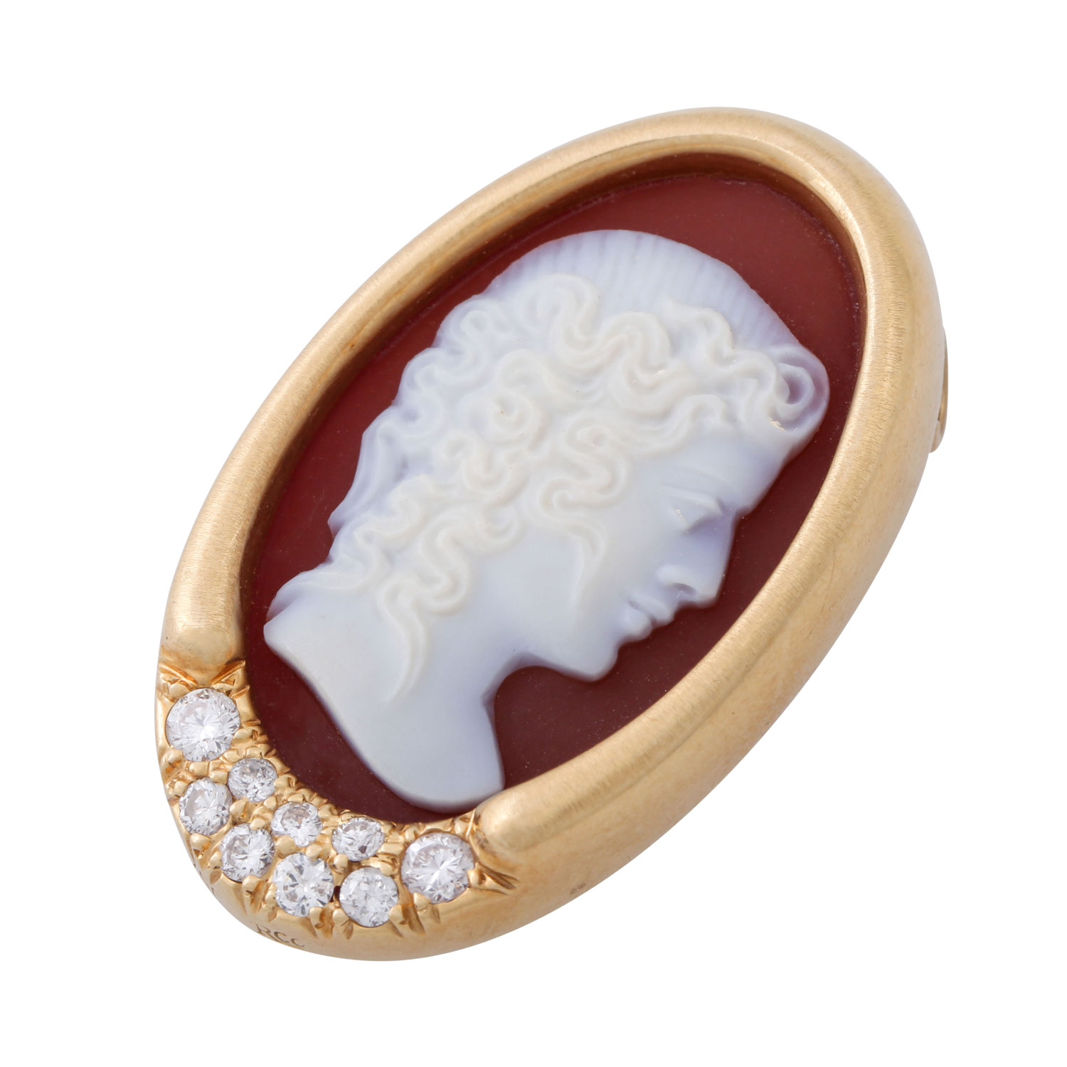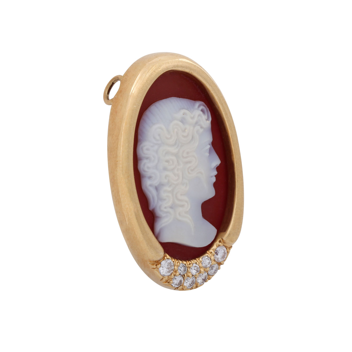 Pendant, esp. with 1 agate cameo and brilliant-cut diam. in total approx. 0.35 ct. WHITE/SI.