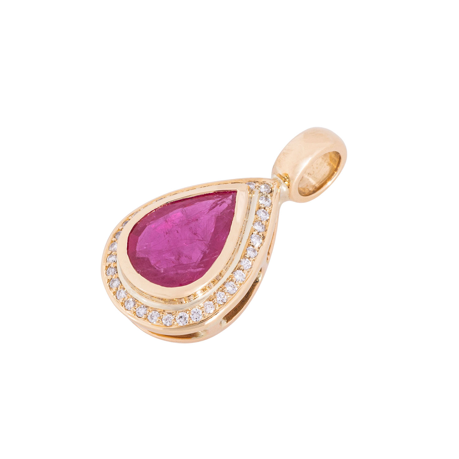 Pendant, especially with 1 ruby drop 2.4 ct. (natural, not heated)