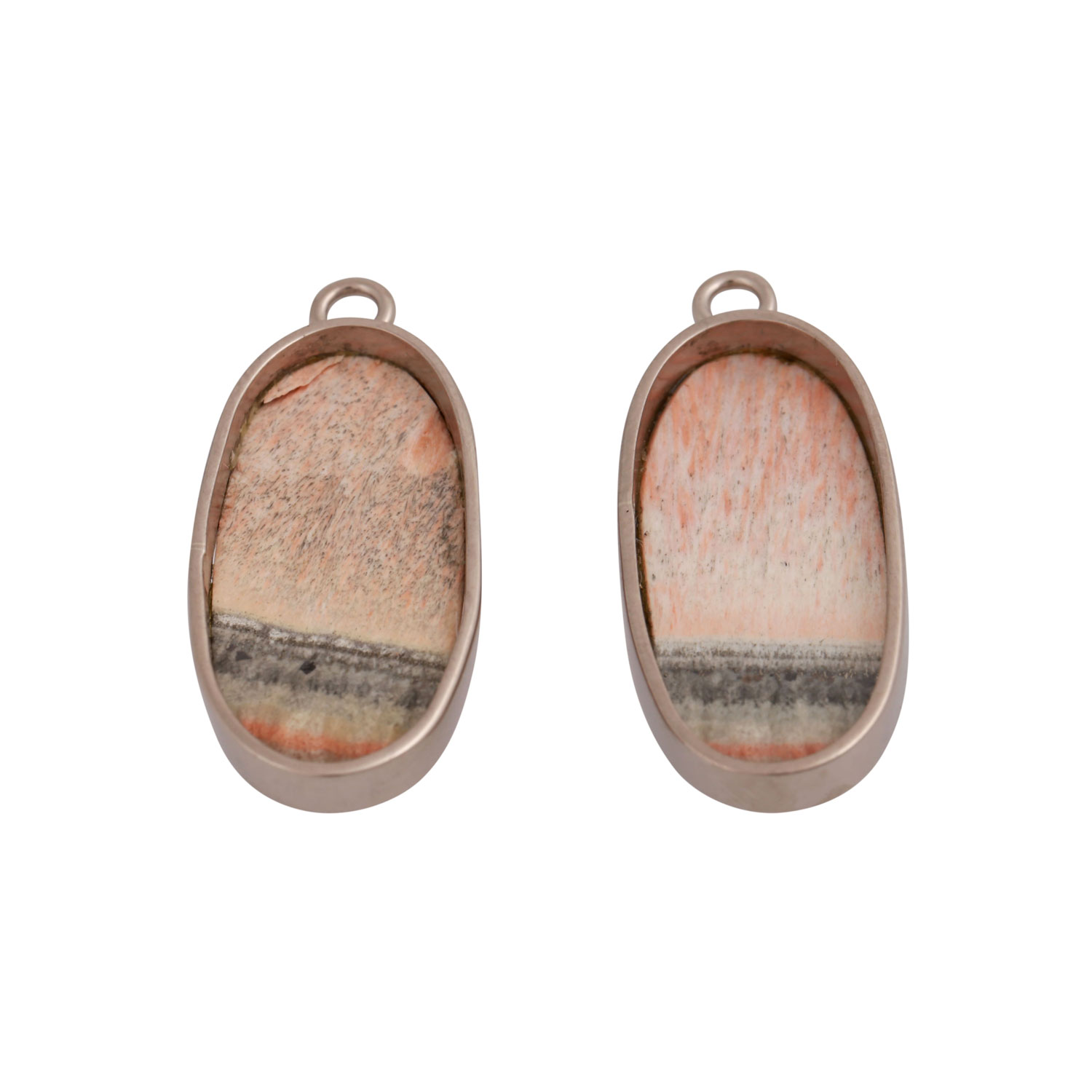 Pendant for ear studs (pair). Set with 2 oval diorite cabochons 31 ct.