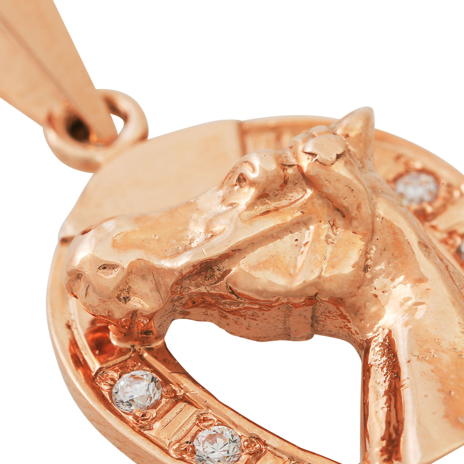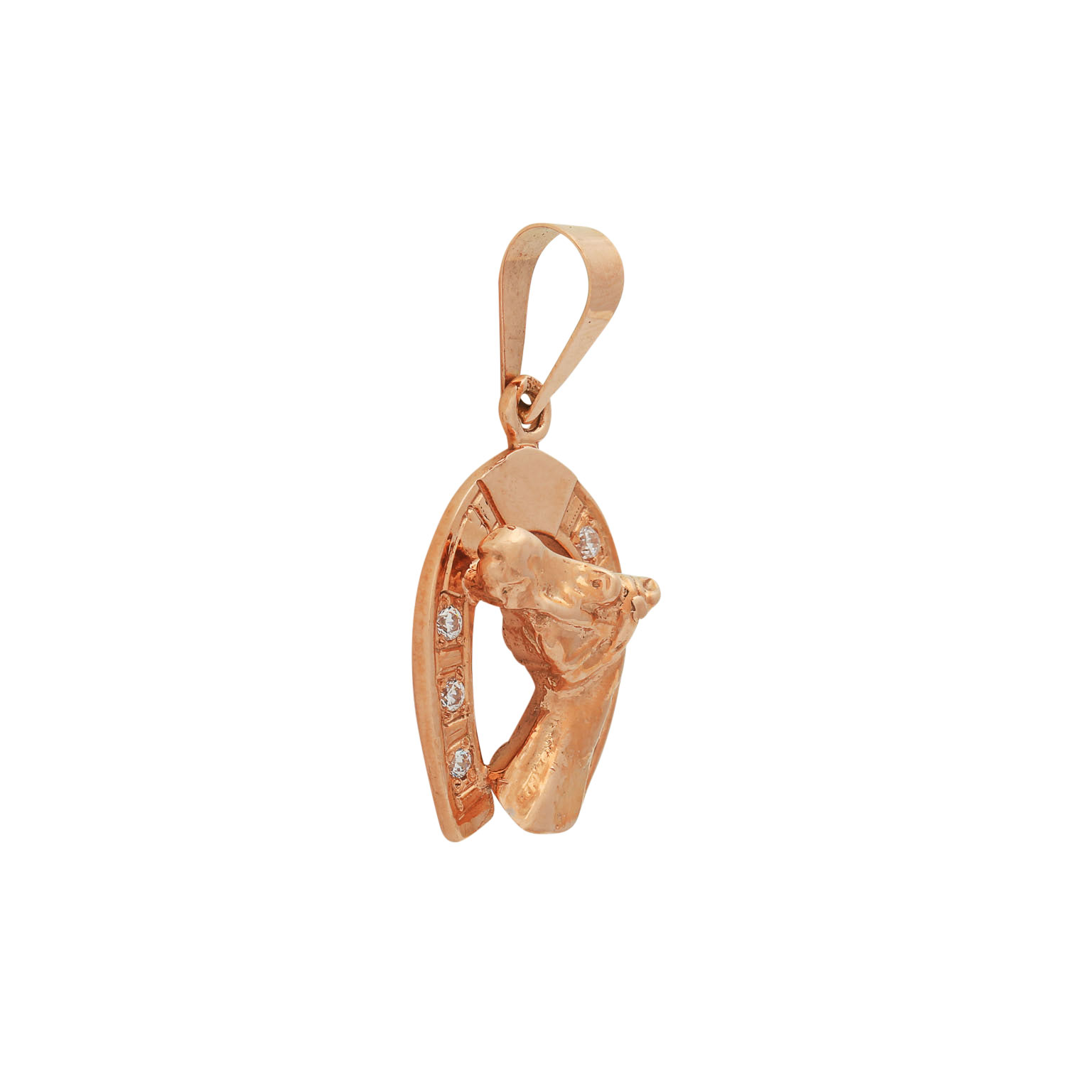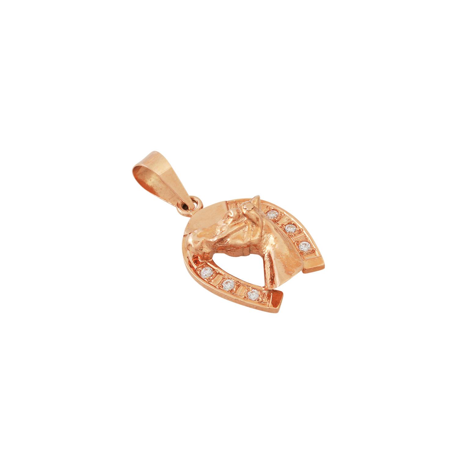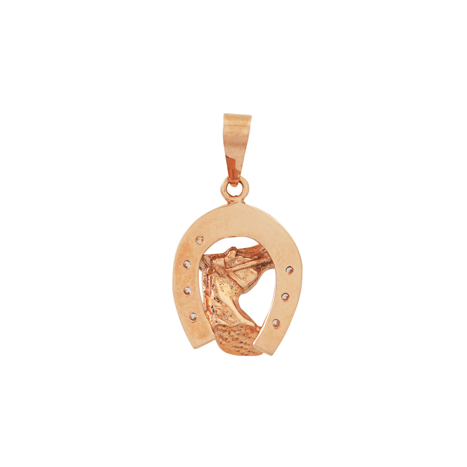 Pendant 'horseshoe and head of a horse' set with cubic zirkonia, 14K RG, 9,0 g, l.: approx. 2,2 cm, 20th/21st c., minor signs of wear.