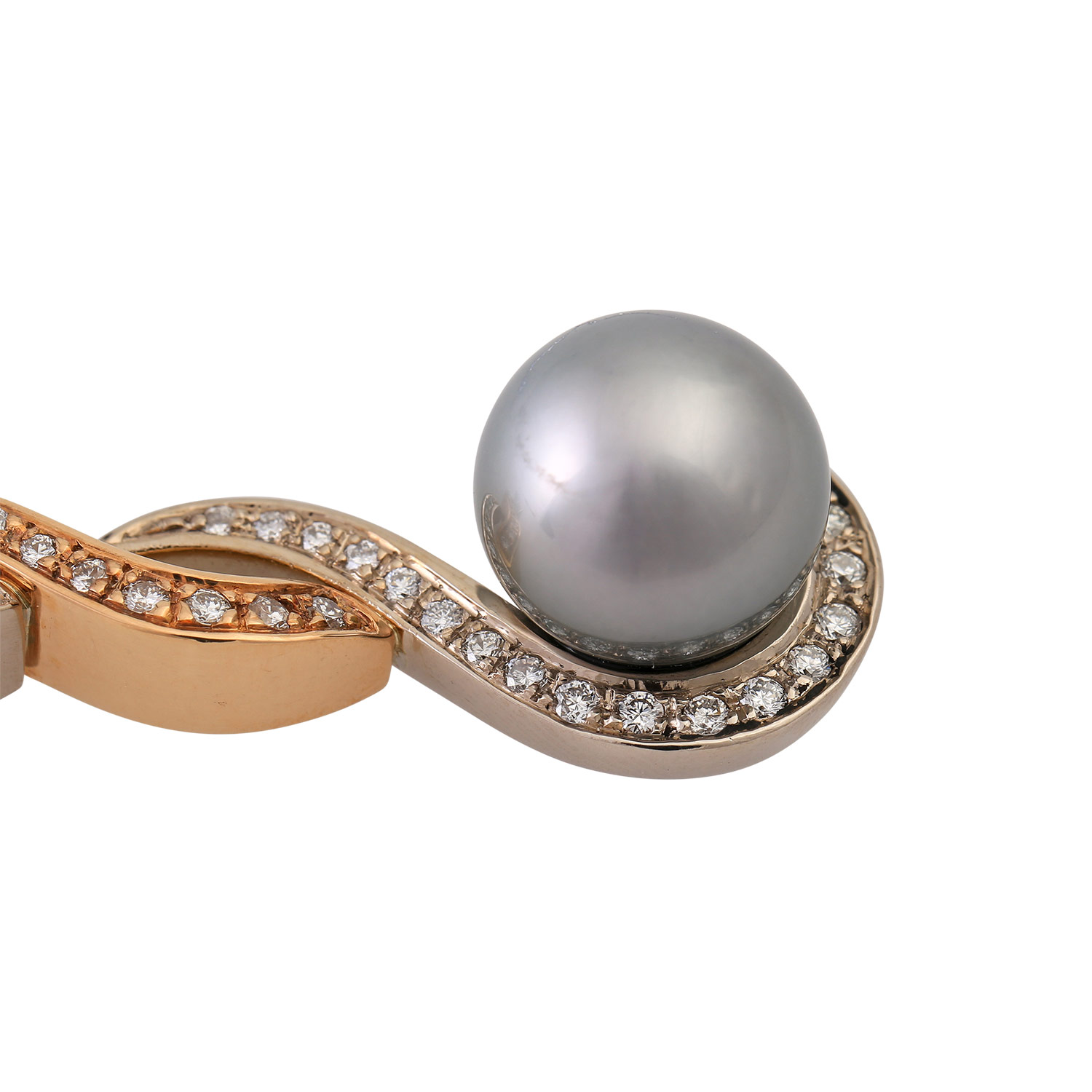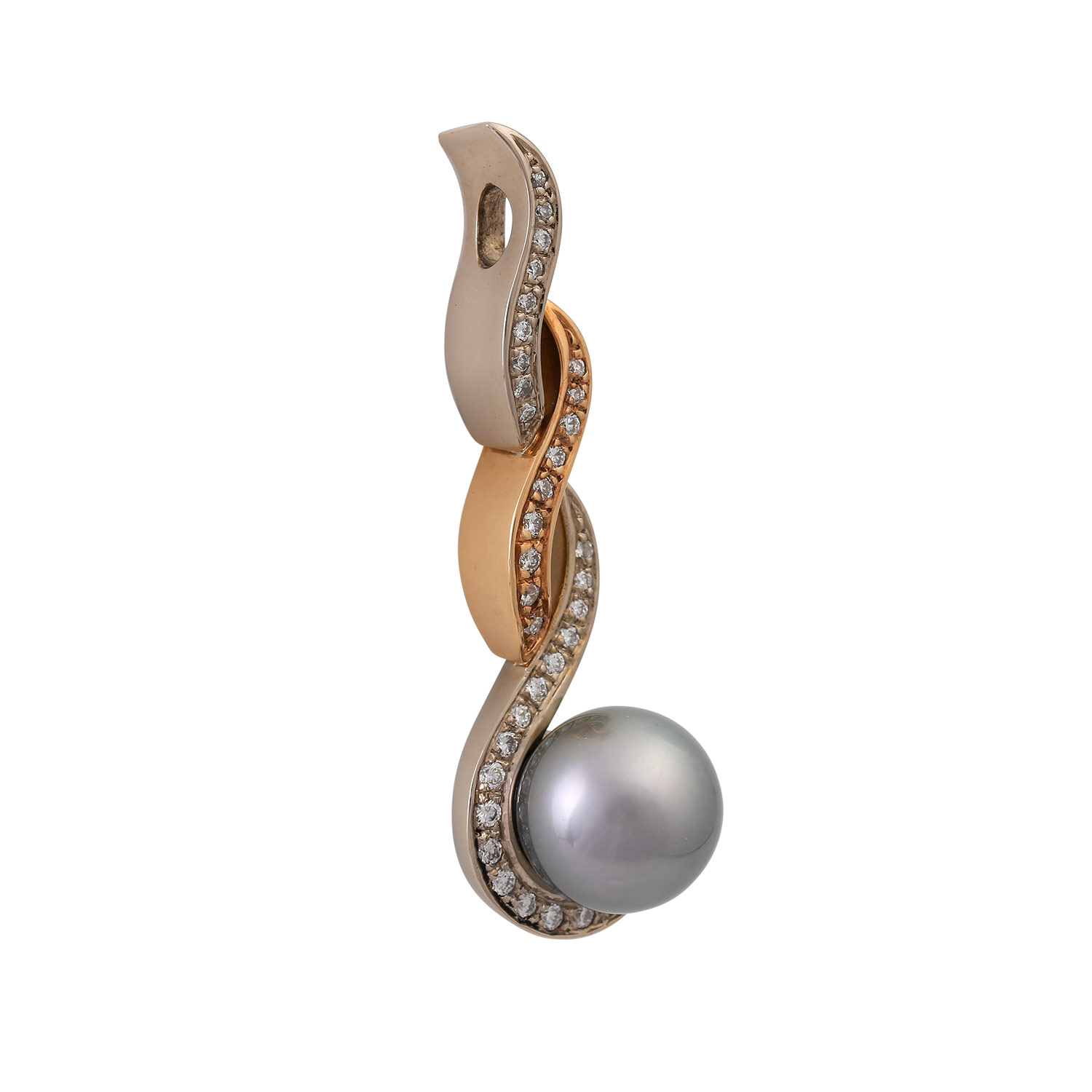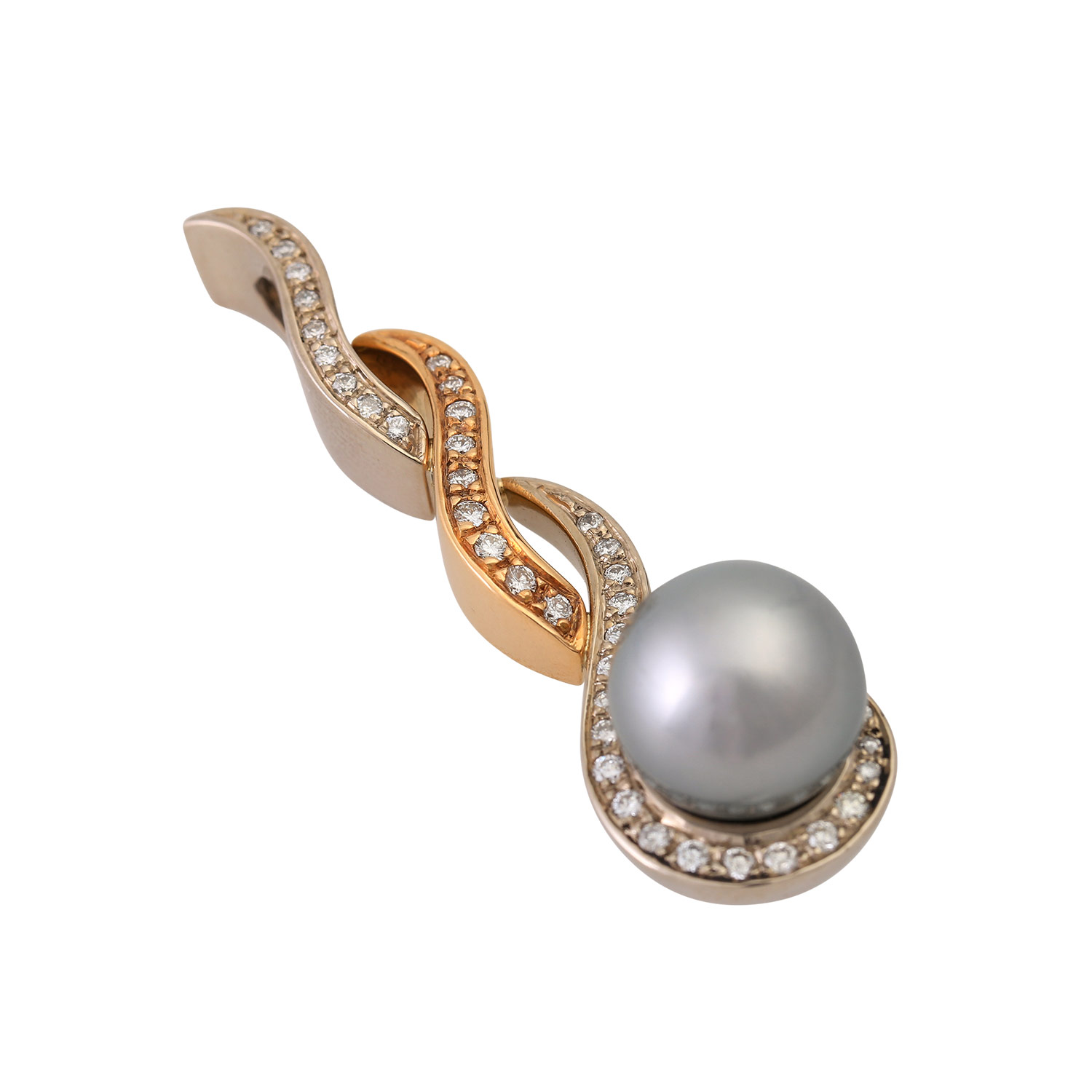 Pendant, with 1 gray Tahiti cultured pearl and diam. 0.38 ct. FW/VSI.
