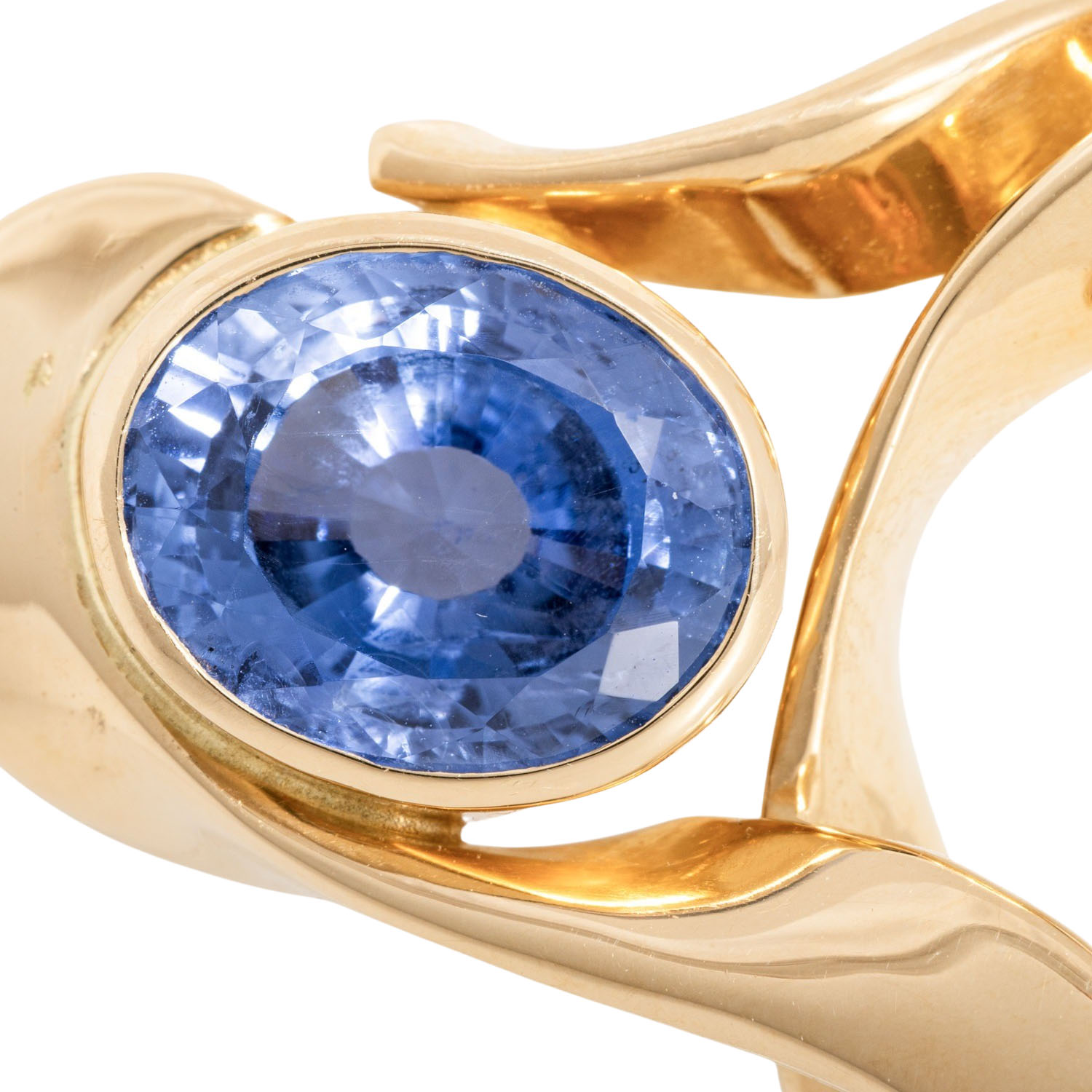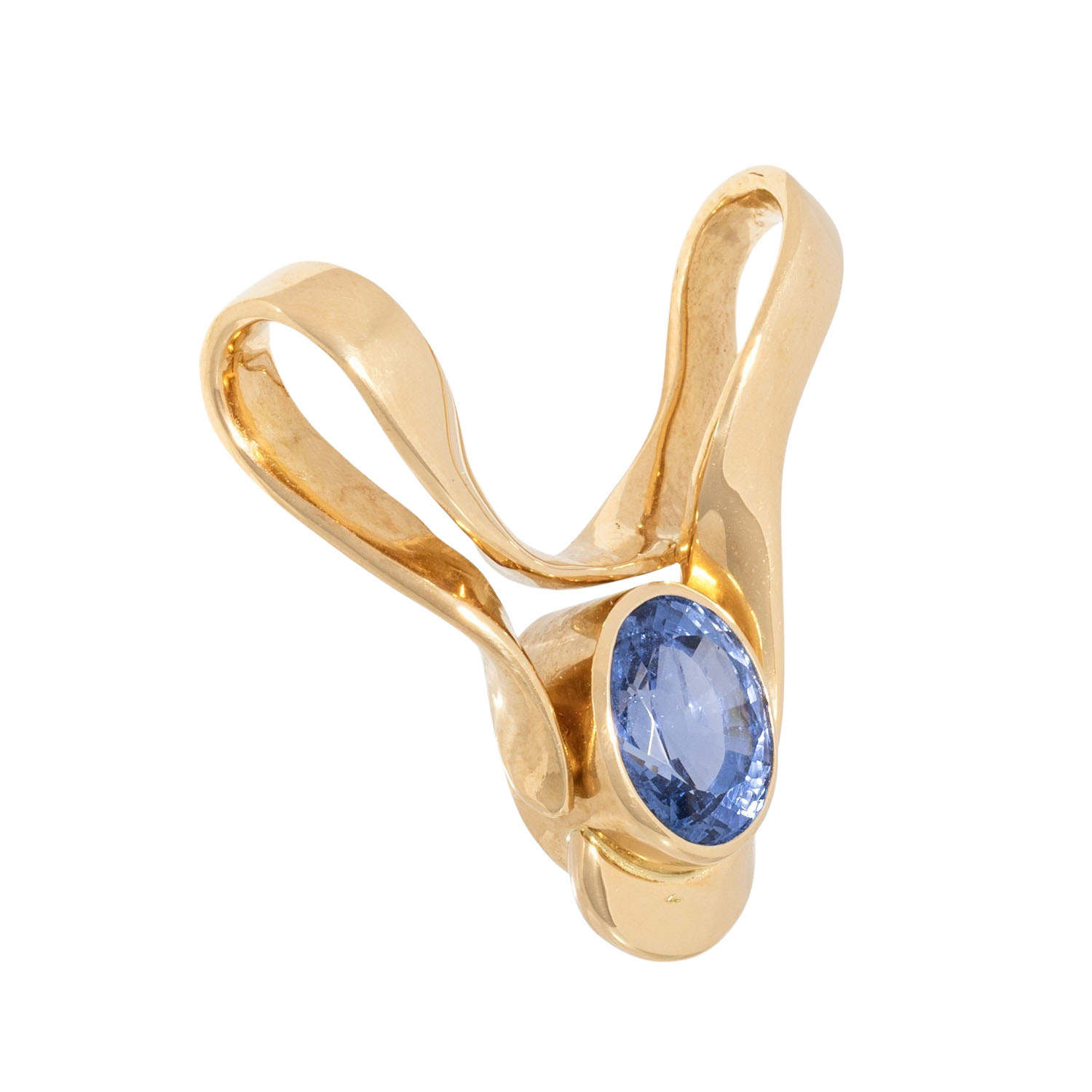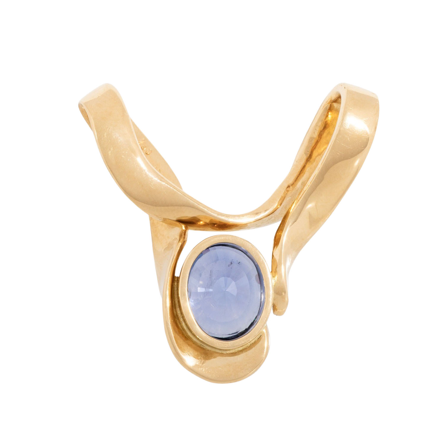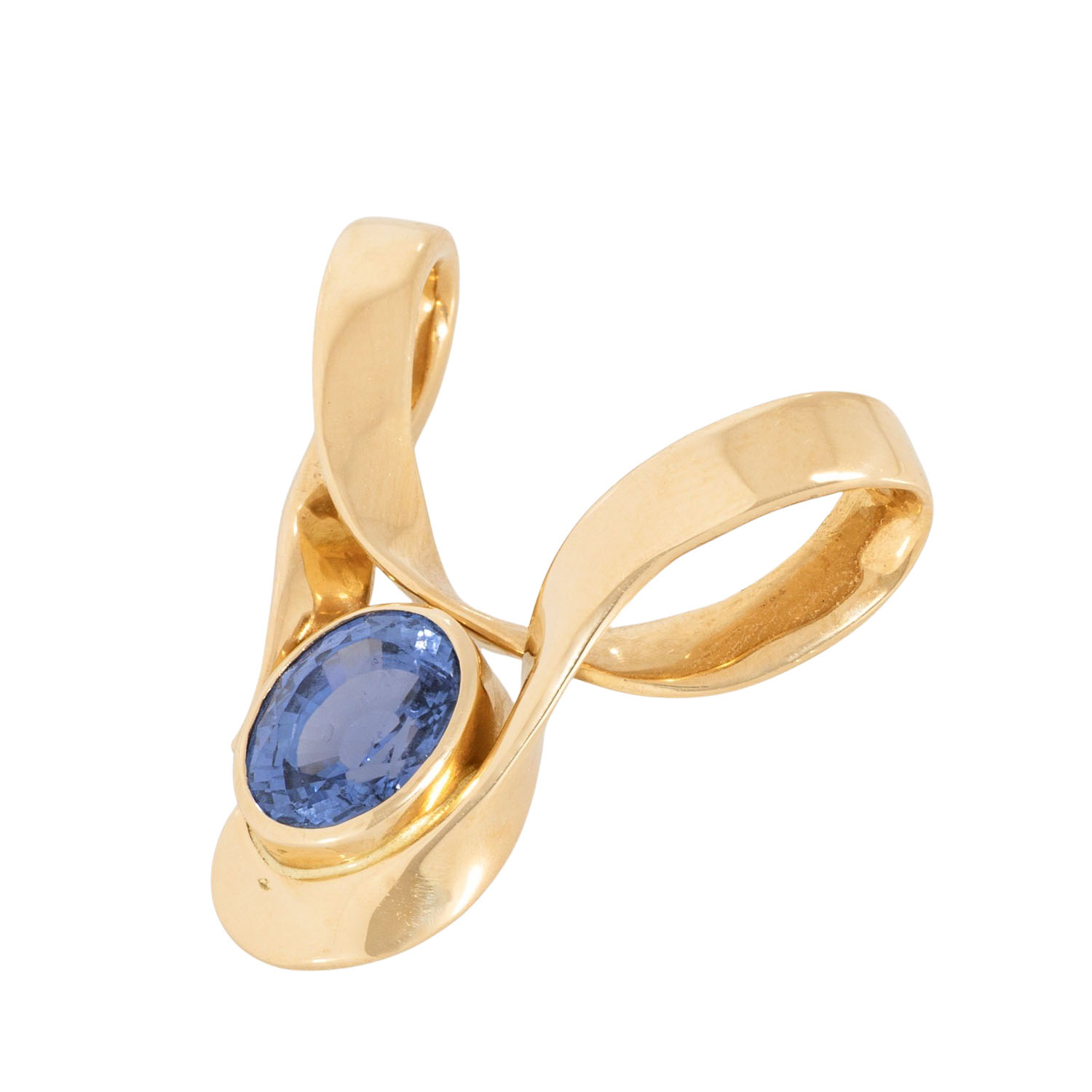Pendant with Ceylon sapphire of approx. 5 ct, oval, Ceylon cut, approx. 11.5 x 9.0 mm, no indications of heating, origin: Sri Lanka, YG 18K, 16.2 g, approx. 33 x 32 mm, 20th/21st century, minor signs of wear. Natural sapphires of this size and color are rare.
