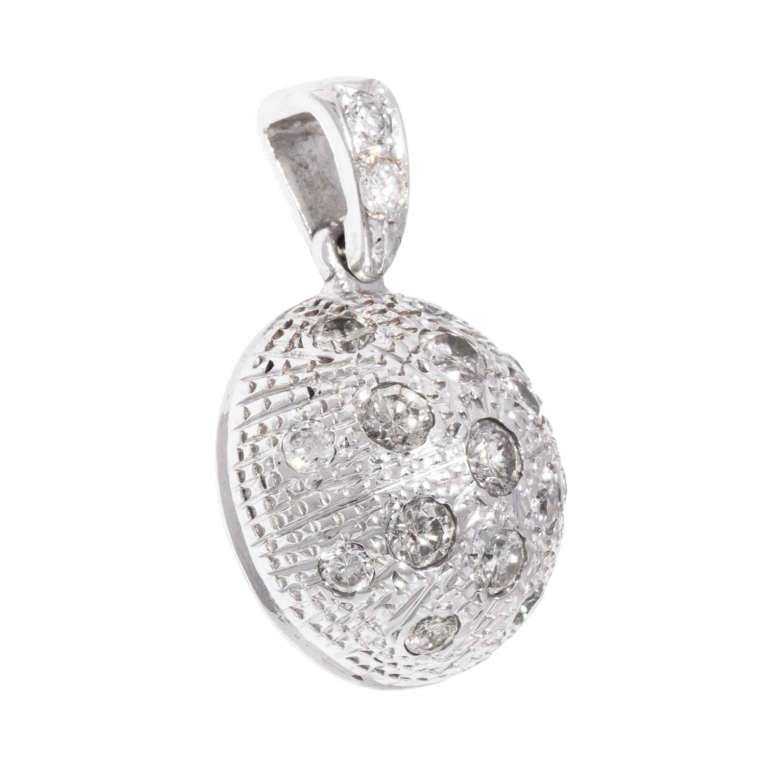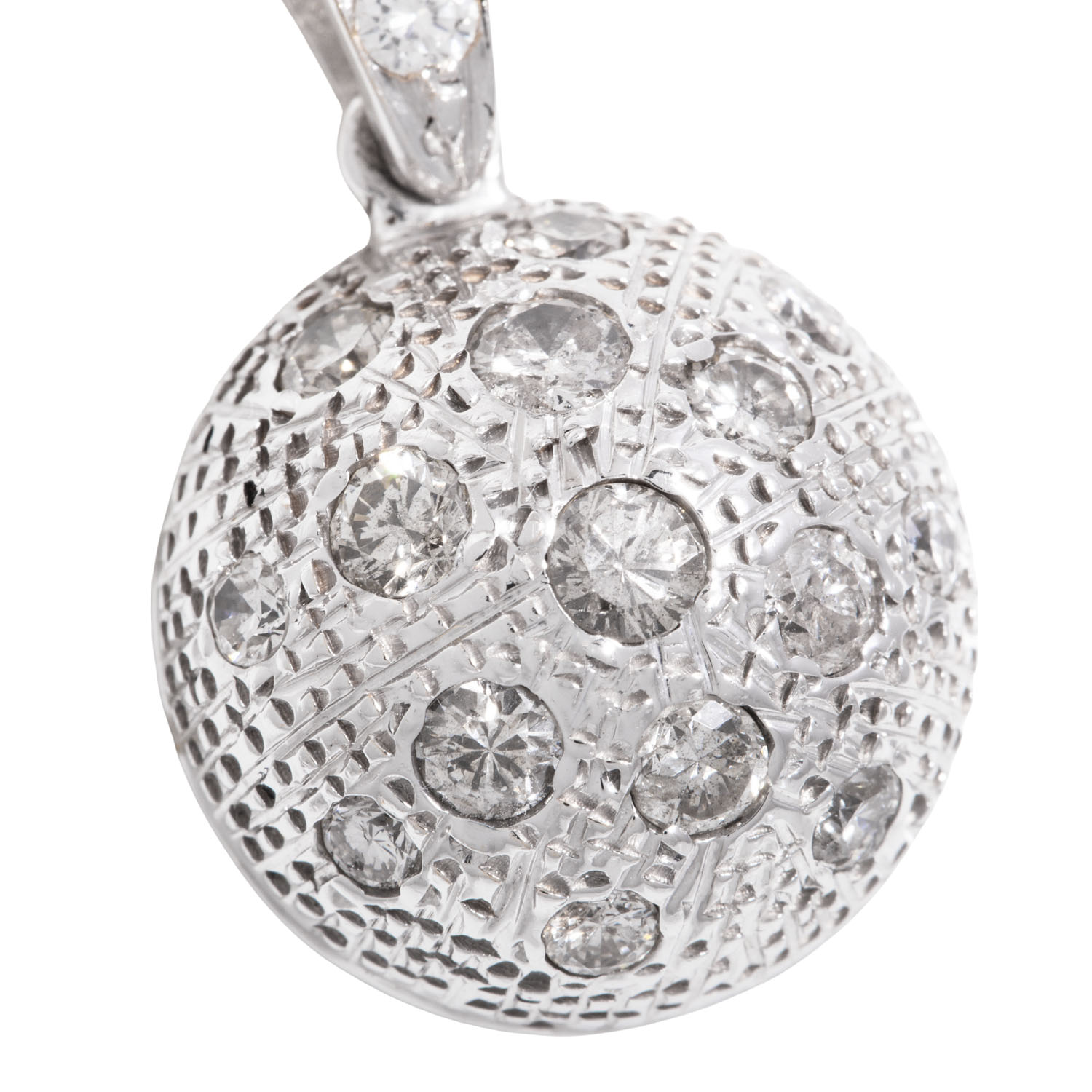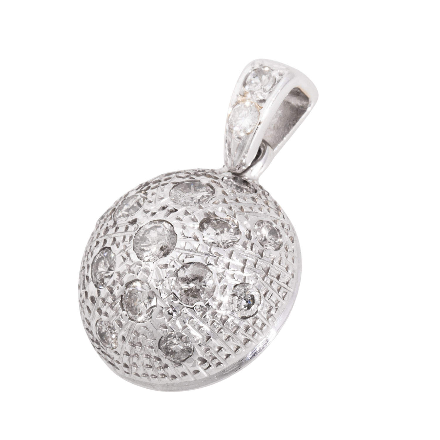 Pendant with brilliant-cut diamonds totalling ca. 1.2 ct, ca. TIW (L)/SI-I2, 18K white gold, 9.4 g, half sphere D: 1.7 cm, 2nd half of 20th century, signs of wear.