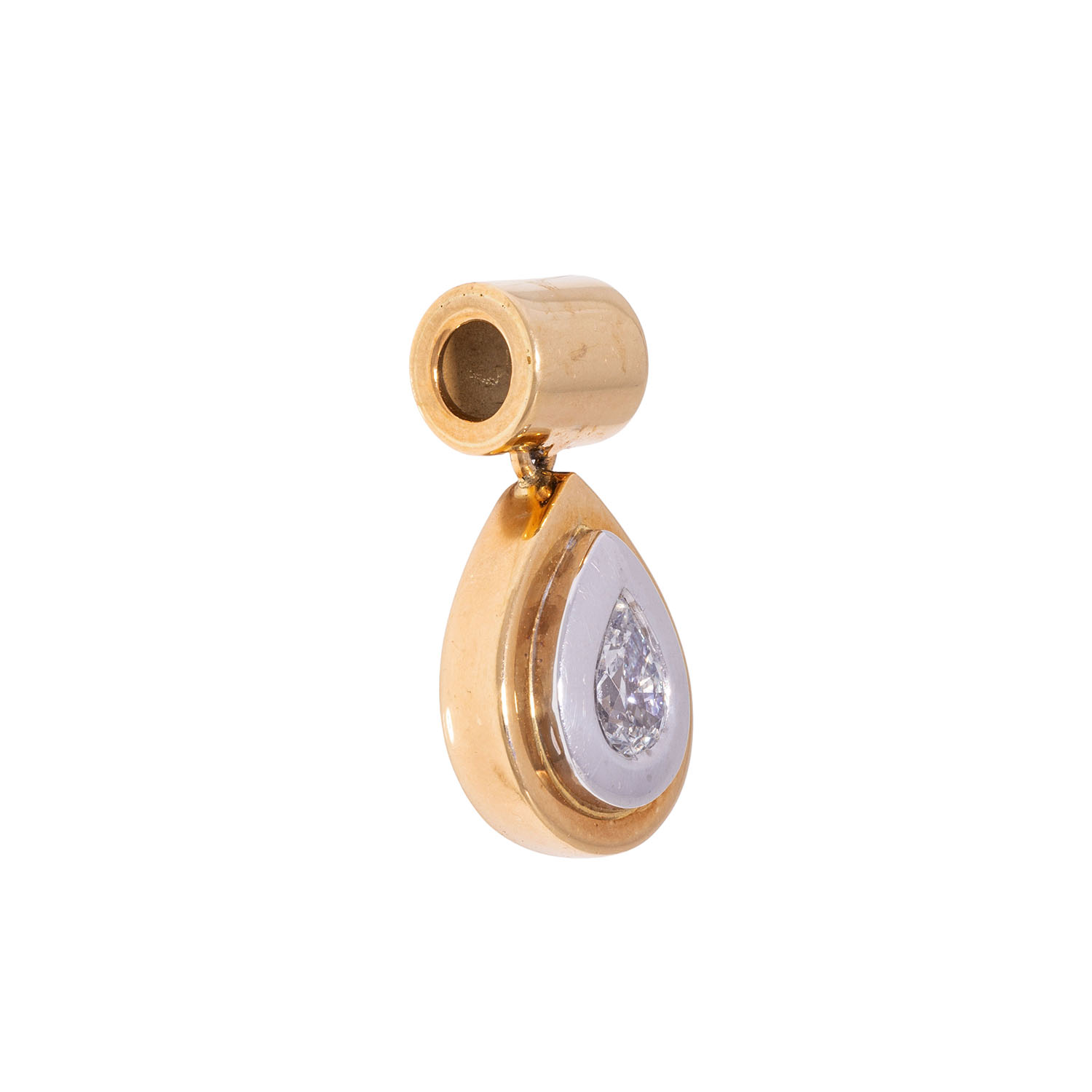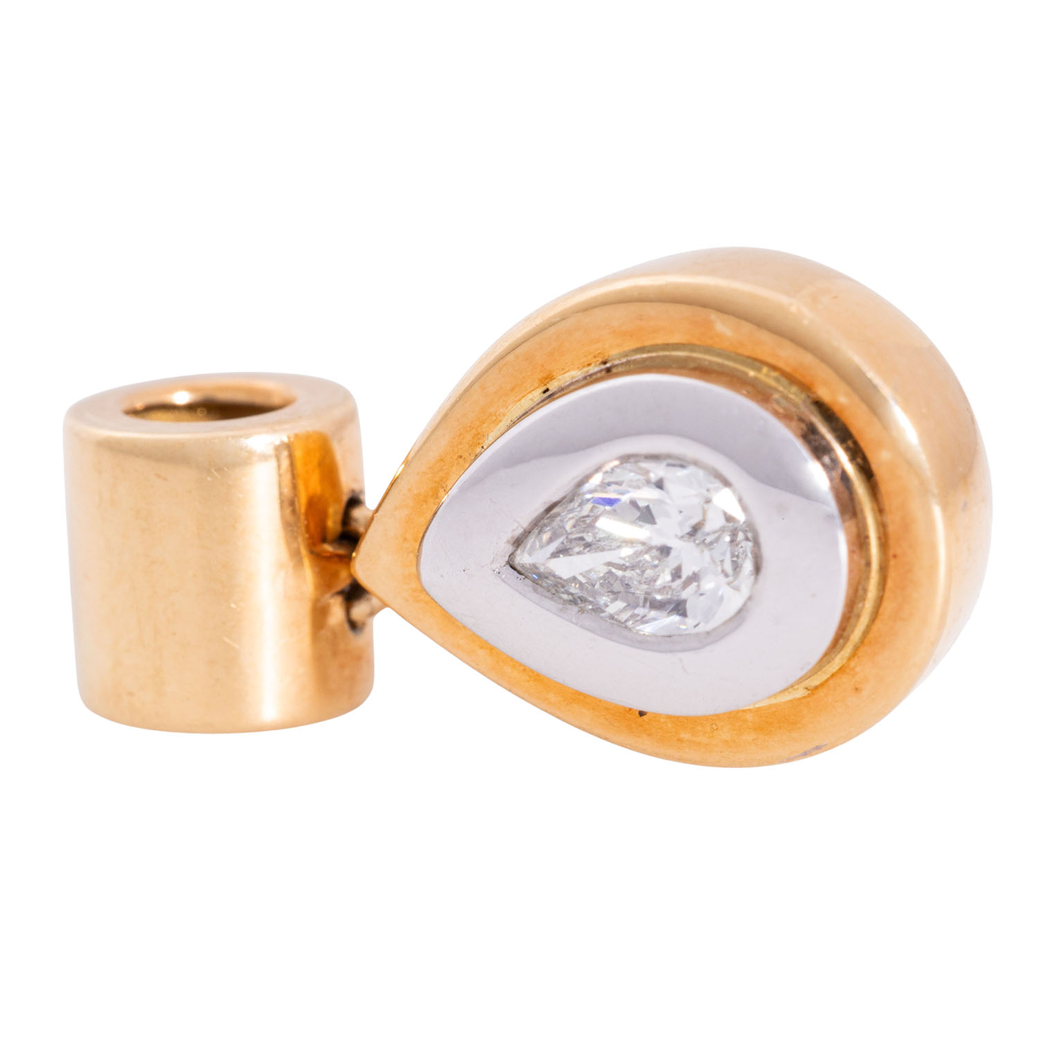 Pendant with teardrop-cut diamond approx. 0.35 ct, STW (I)/VS, 18K white gold/yellow gold, 7.3 g, approx. L x W: approx. 21.9 x 11.1 mm, eyelet D: approx. 3.5 mm, 21st century, minimal signs of wear, high-quality handcrafted work.