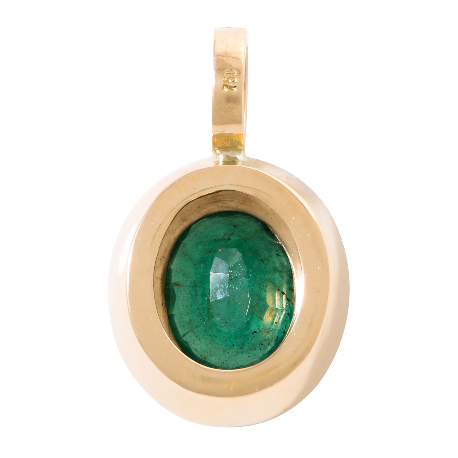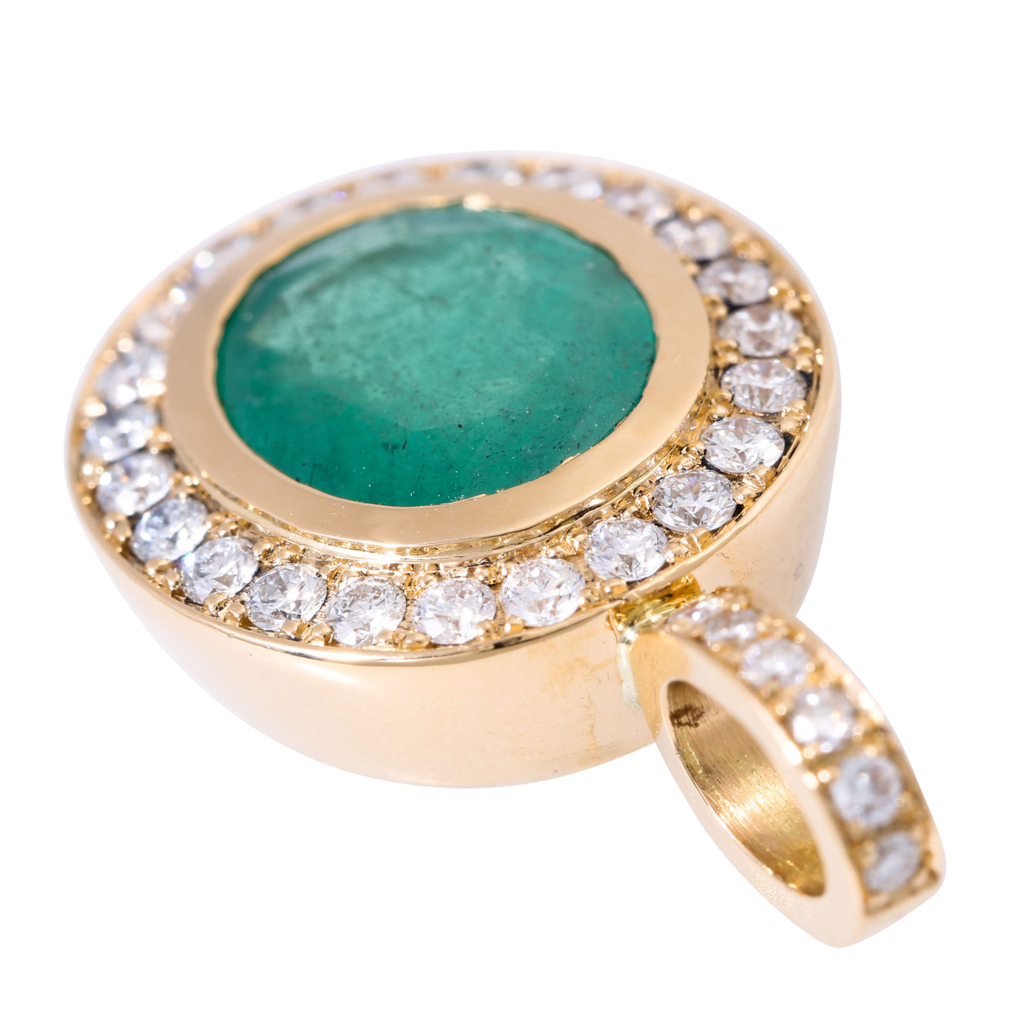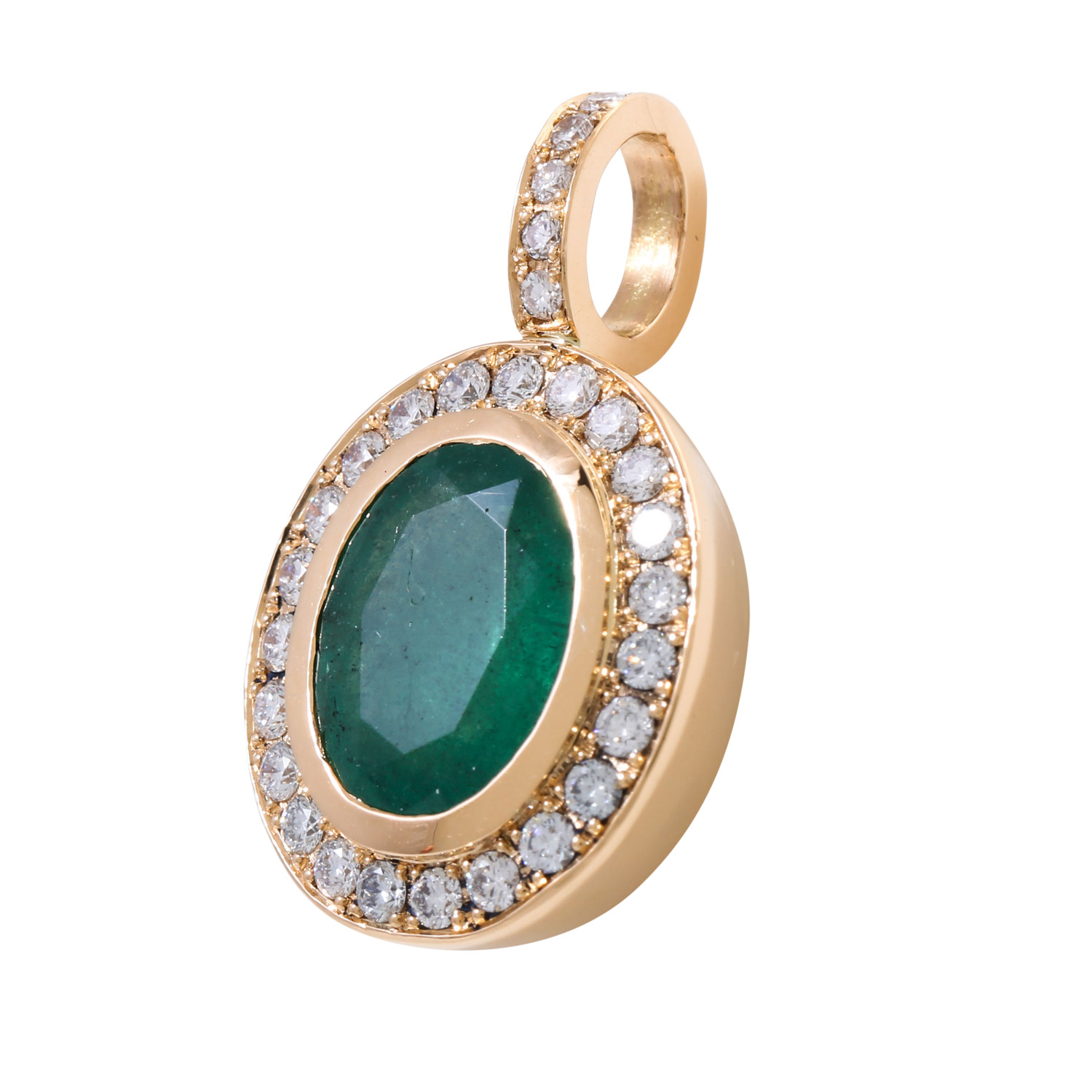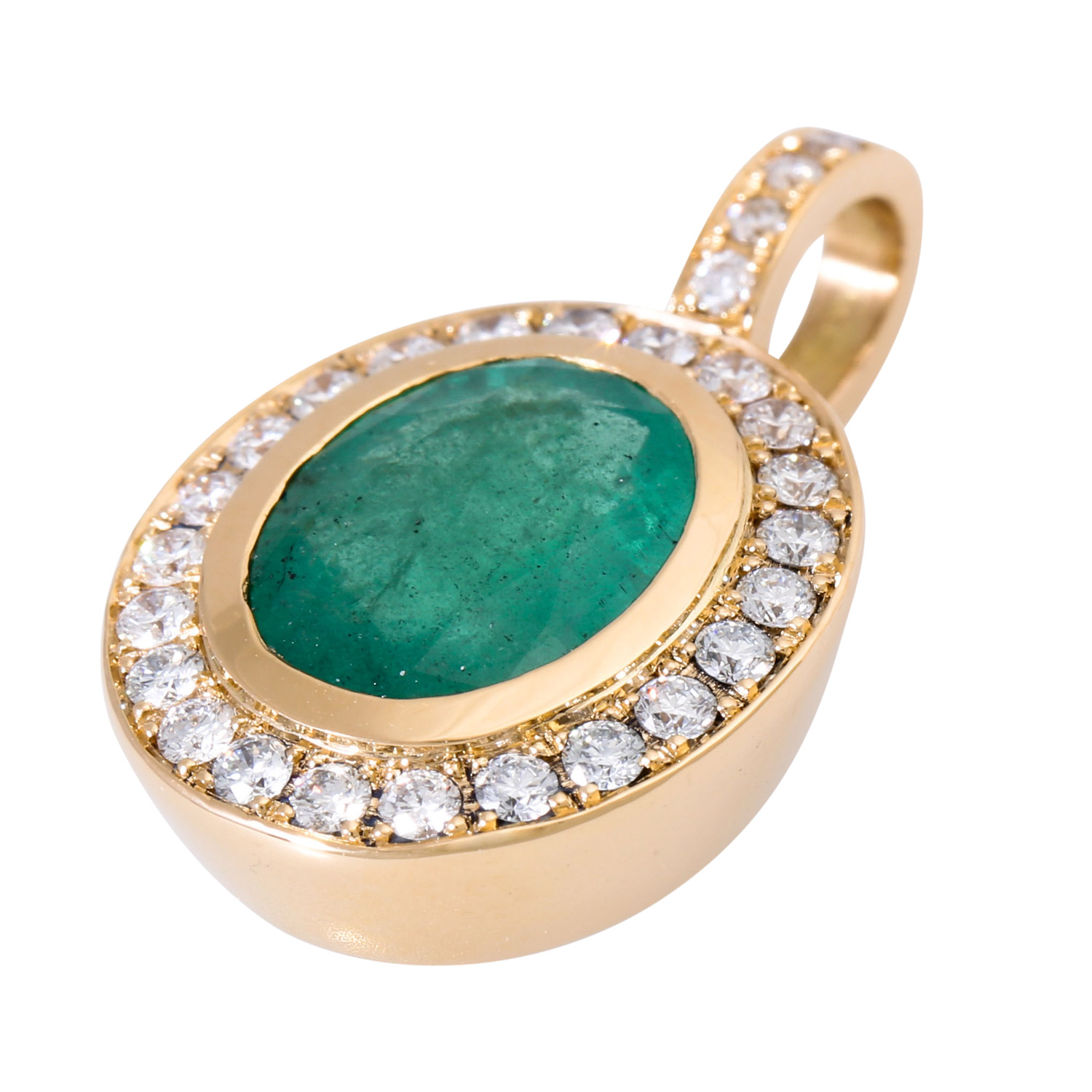 Pendant with faceted emerald ca. 2.6 ct and brilliant-cut diamonds total ca. 0.45 ct RW (G) /VS, YG 18K, 6g, L x W 24 x 14 mm, 21st century, high quality goldsmith work.