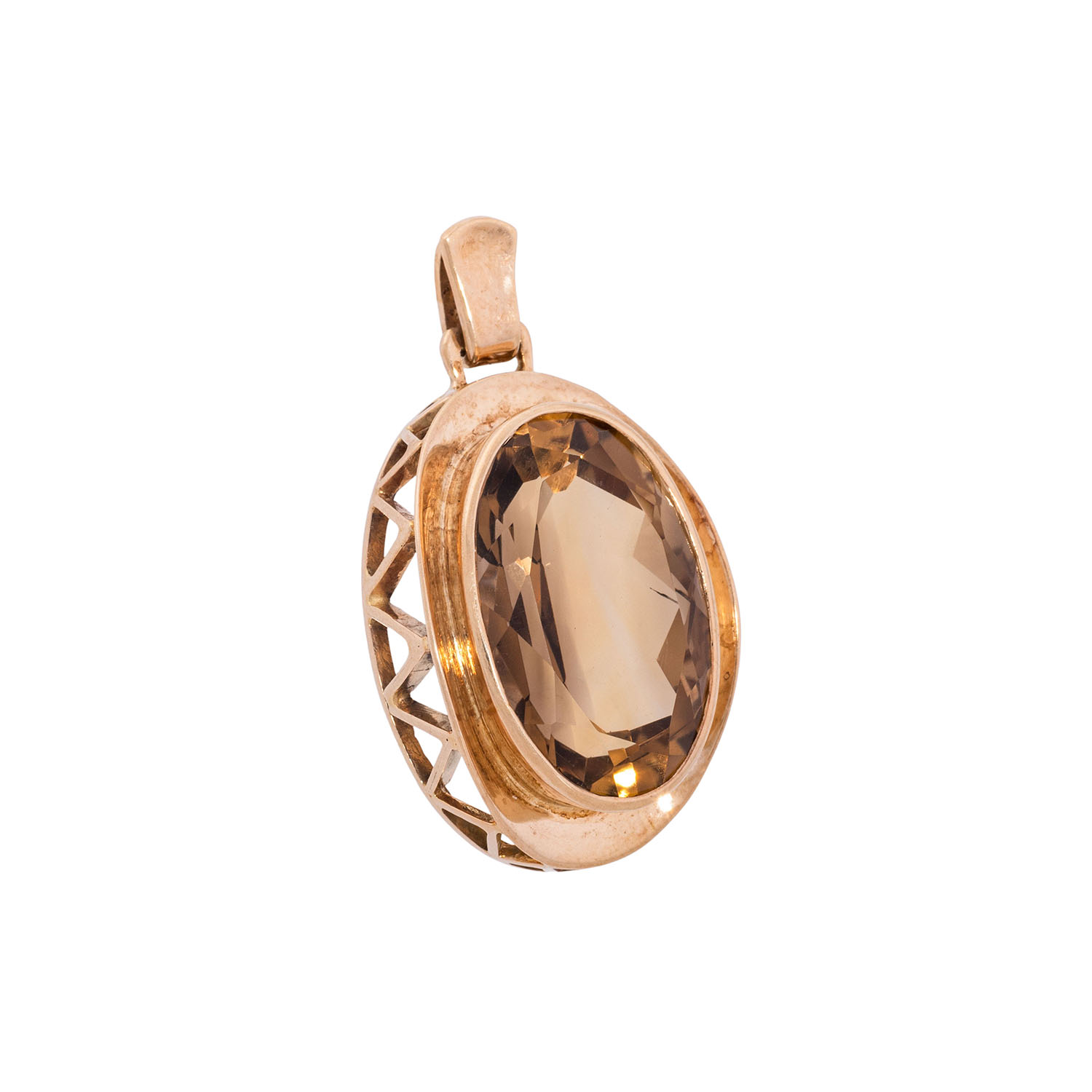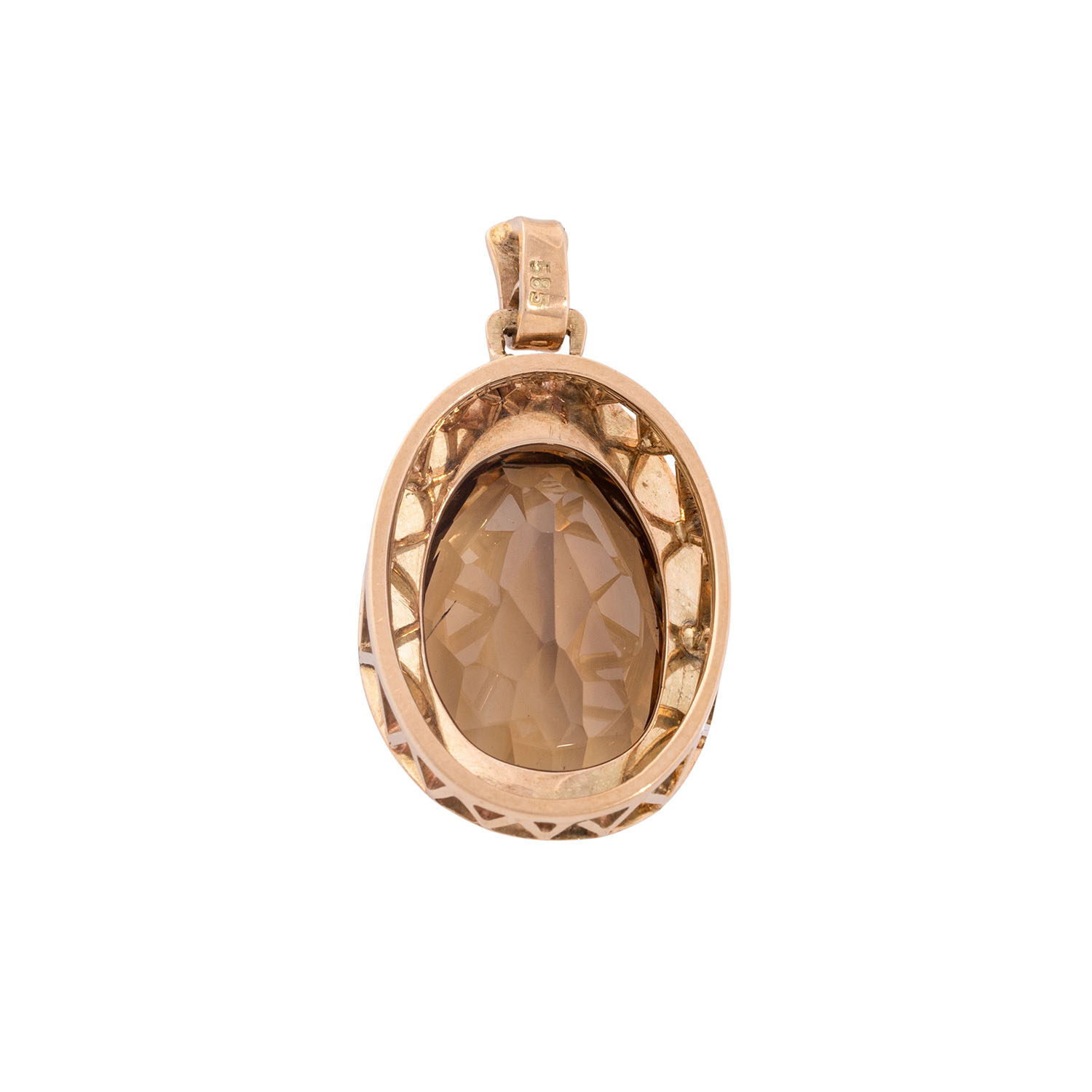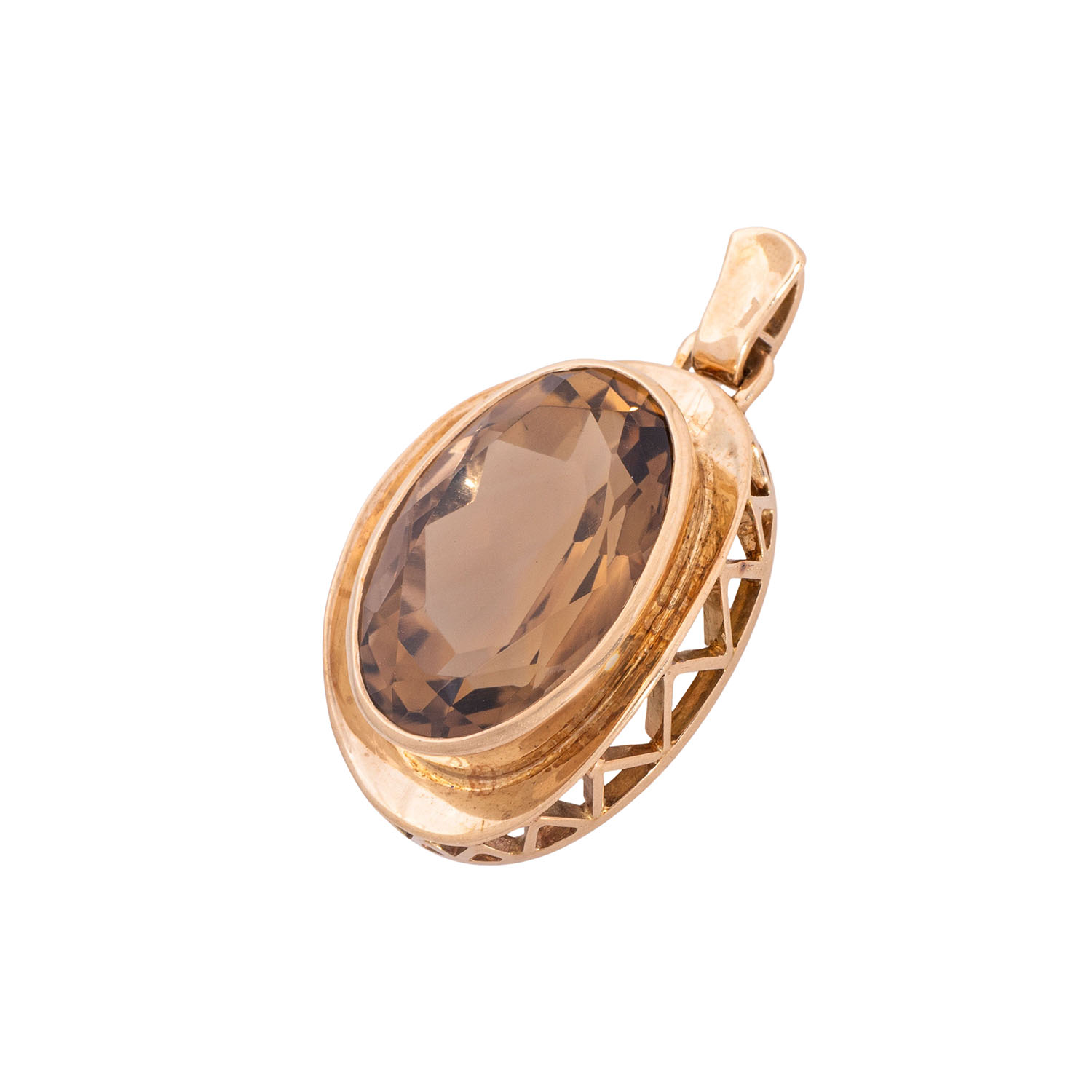 Pendant set with oval cut smoky quartz, approx. 21 x 12.5 x 10 mm, approx. 14.5 ct, 14K YG, 9.5 g, lenght: 27 mm, 1960s, signs of wear.