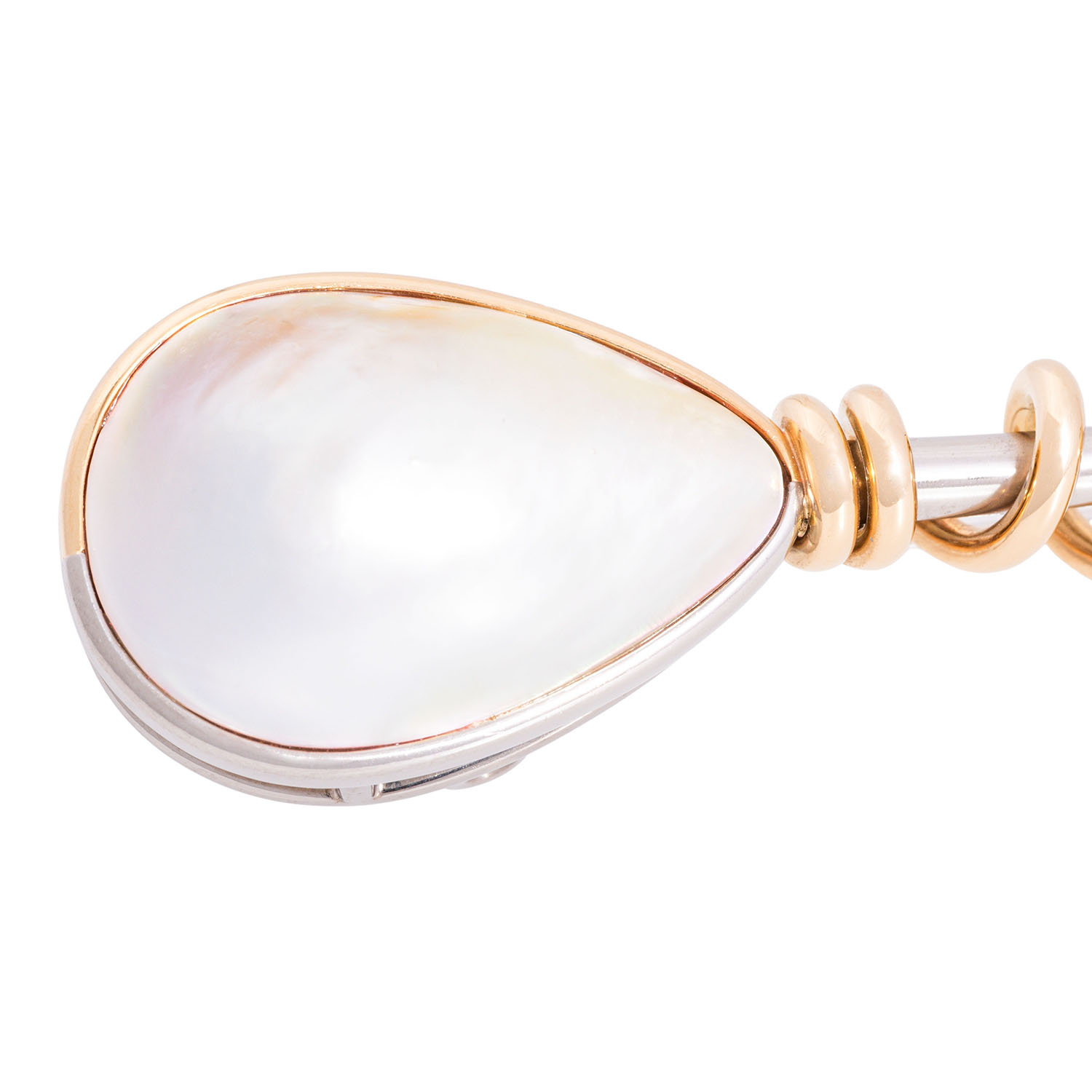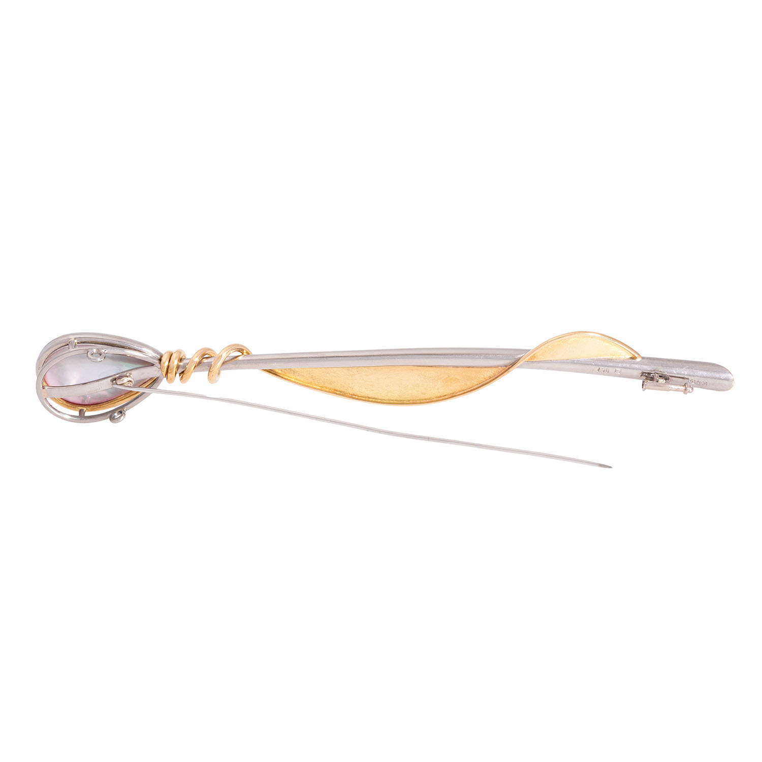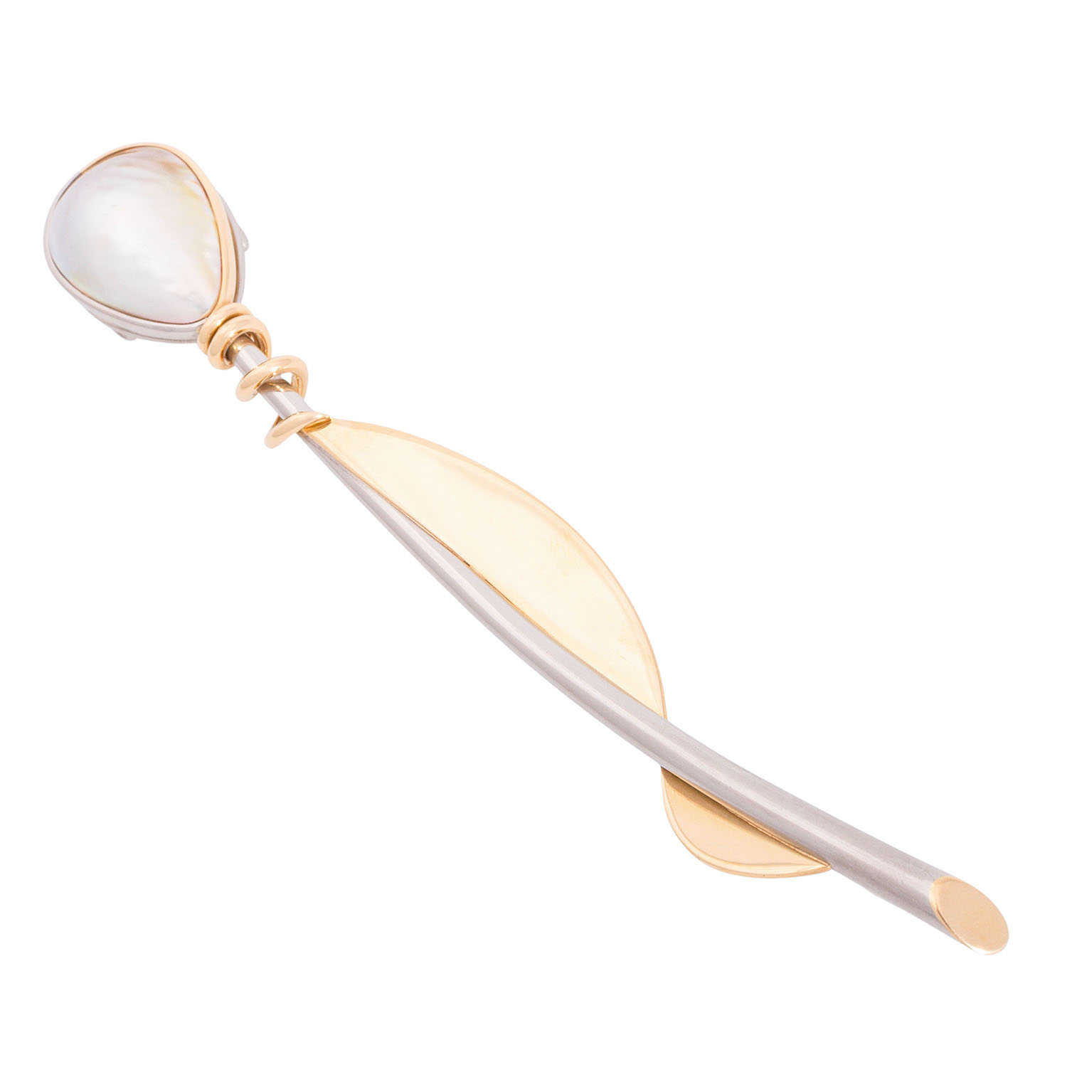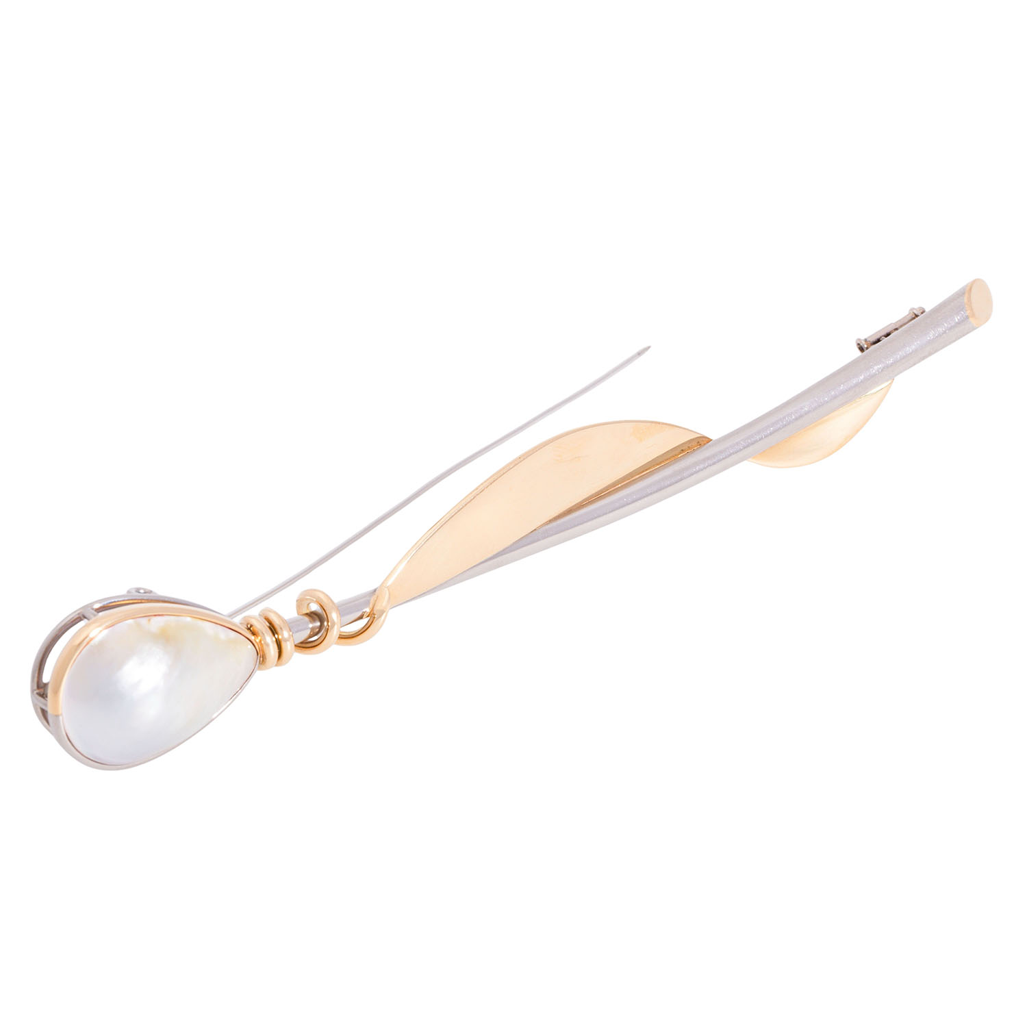 Needle/pendant with drop-shaped Mabé pearl, 18K yellow gold/palladium 950, 31.9g, L: approx. 14.9 cm, W: approx. 0.5 - 2 cm, end of the 20th century, minimal signs of wear, with hallmark ' RS'.
