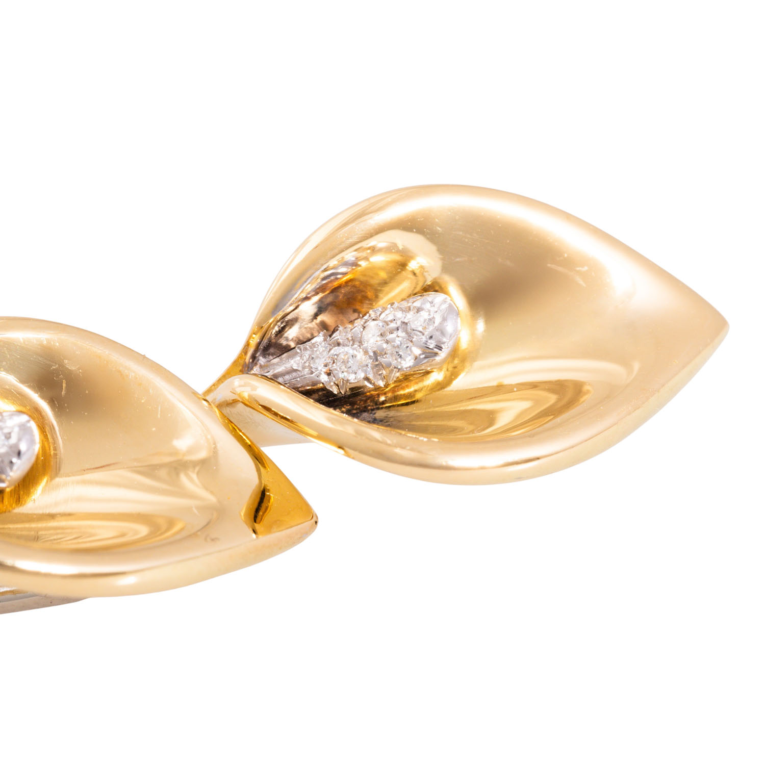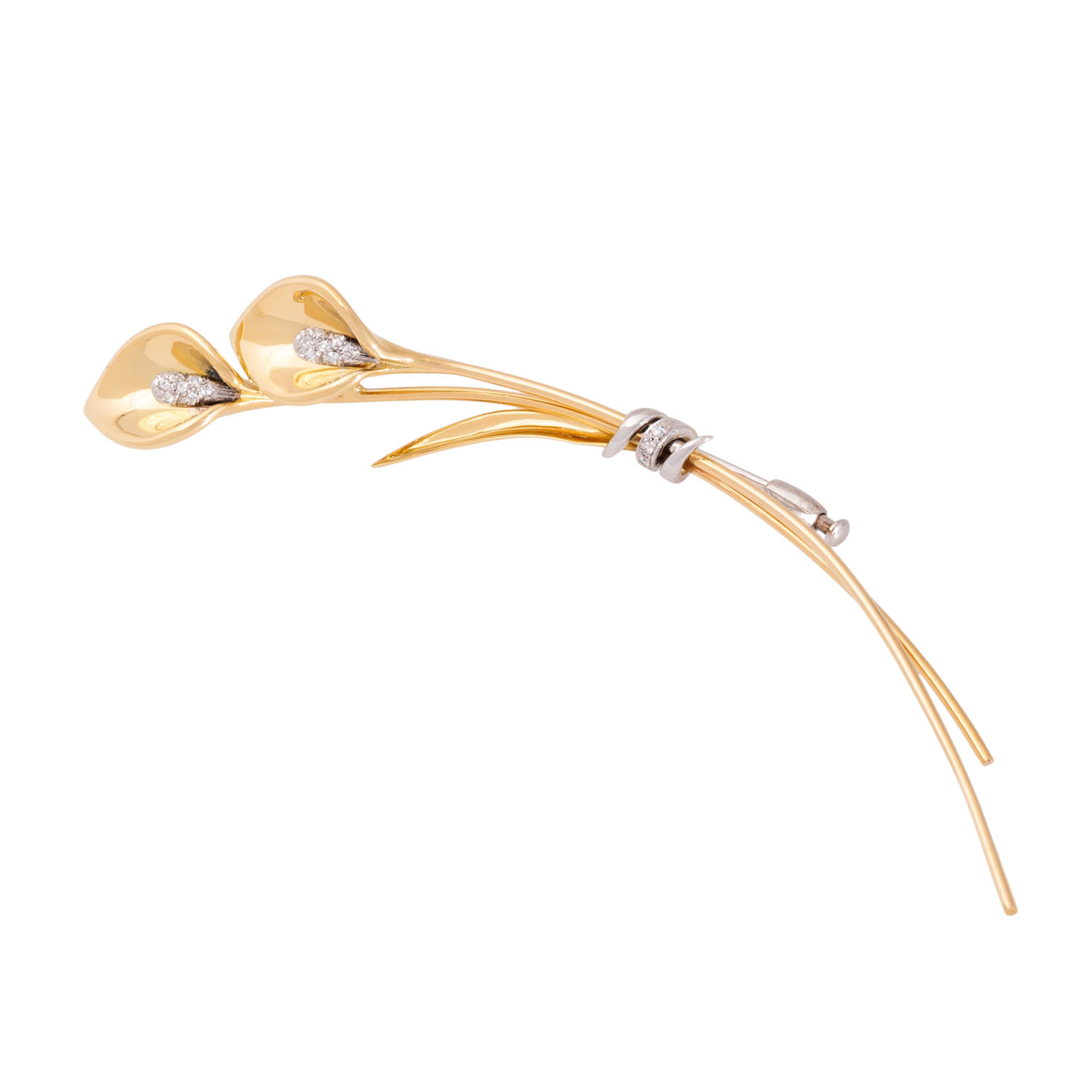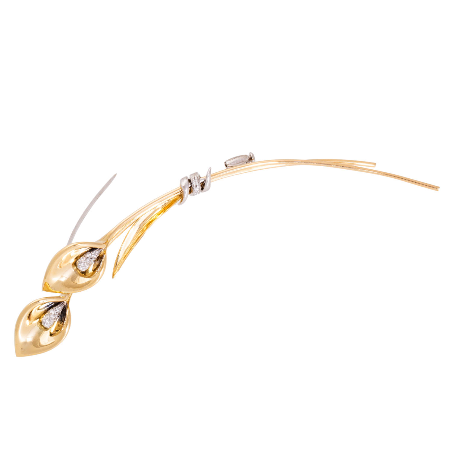 Brooch with 17 brilliant cut diamonds, totalling ca. 0.08 ct, good colour and clarity, 18K yellow and white gold, 11.0 g, L x W: 110 x 21 mm, slide catch, late 20th century, minimal signs of wear.