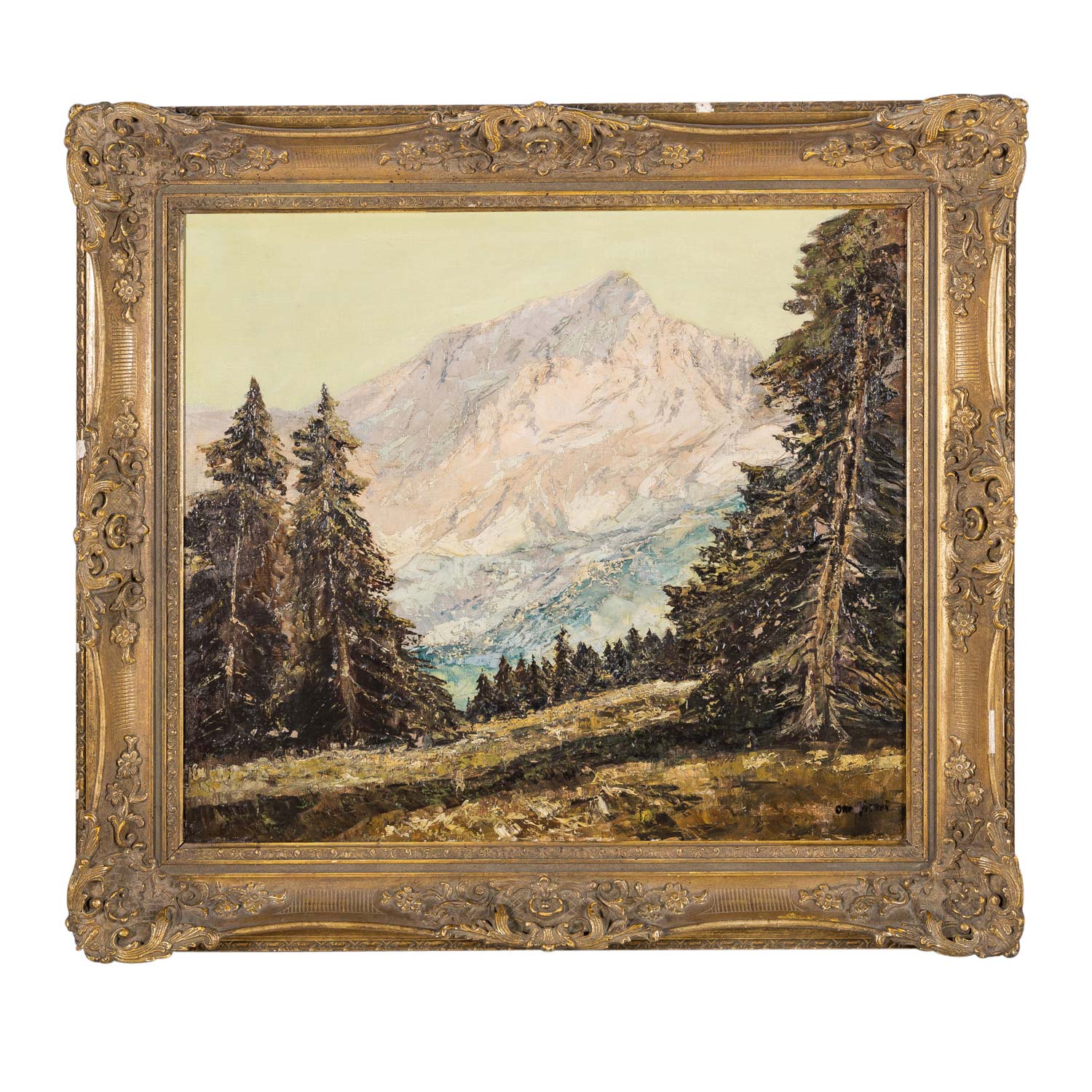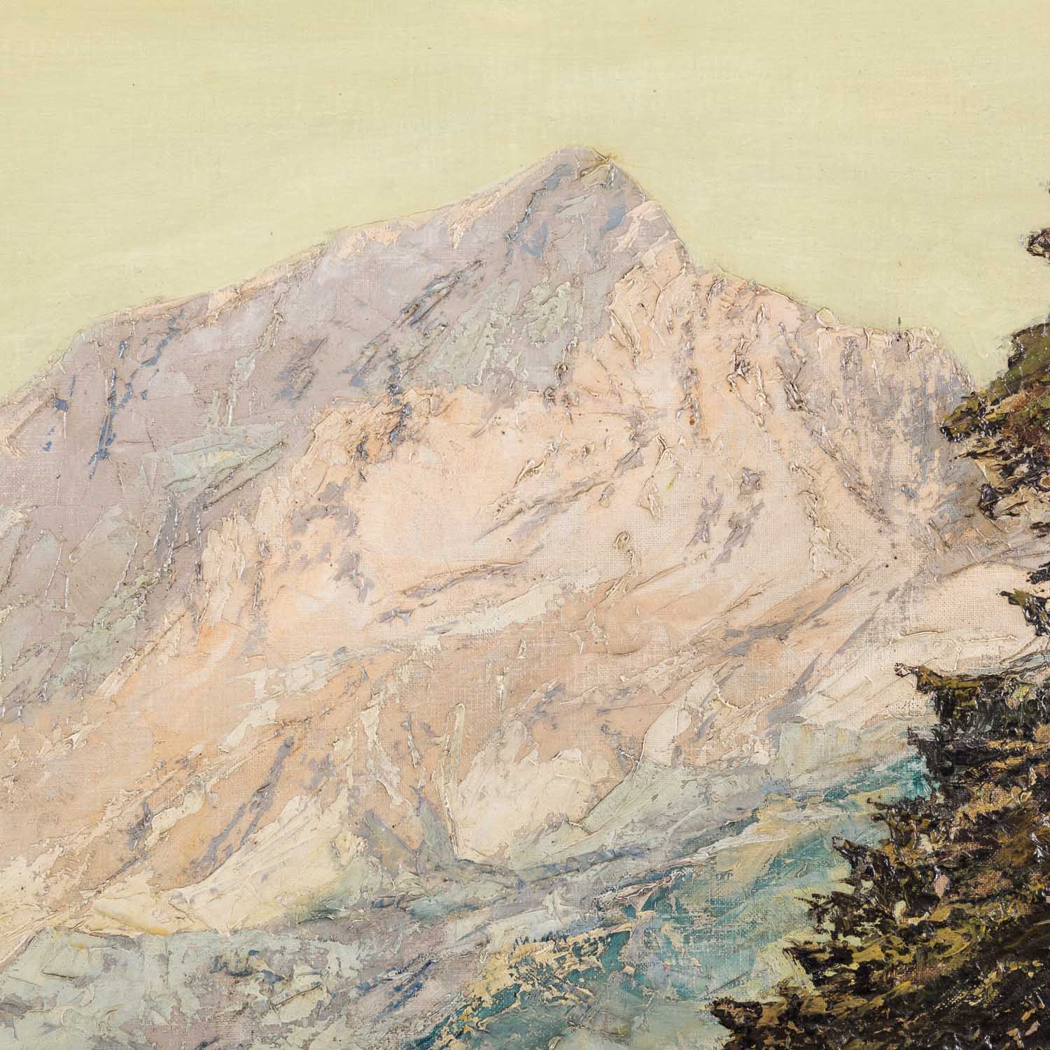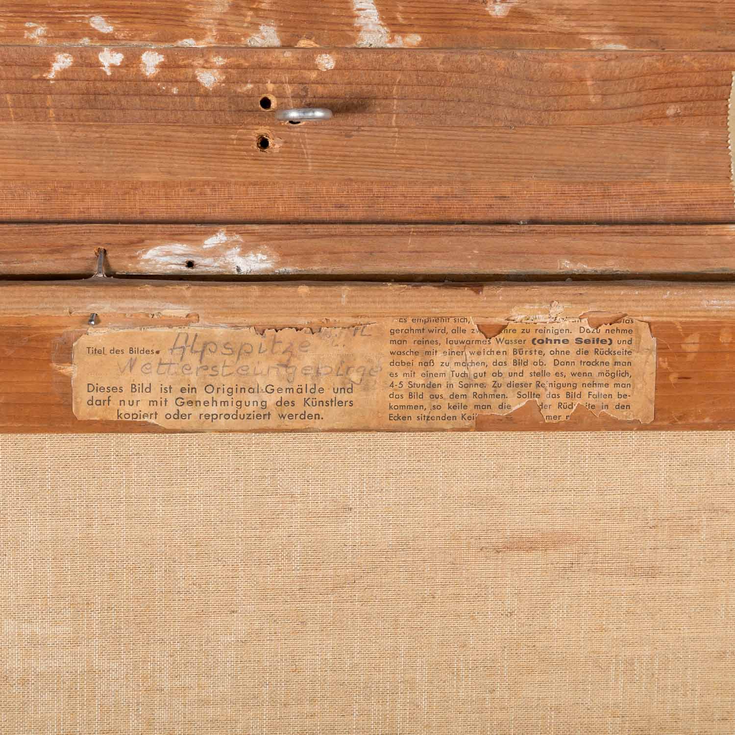 PIPPEL, OTTO (1878-1960), 'Alpspitze, Wetterstein Mountains', l.r. signed, oil/canvas, HxW: approx. 70x80 cm (93x103 cm with frame). Signs of age and wear, chipped paint. With frame (edges partially damaged). VERSO inscribed 'Otto Pippel' and remains of an exhibition label.