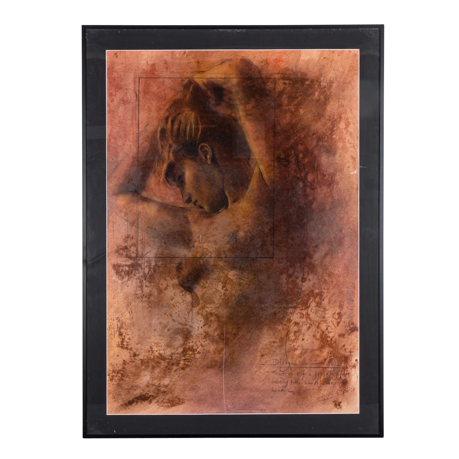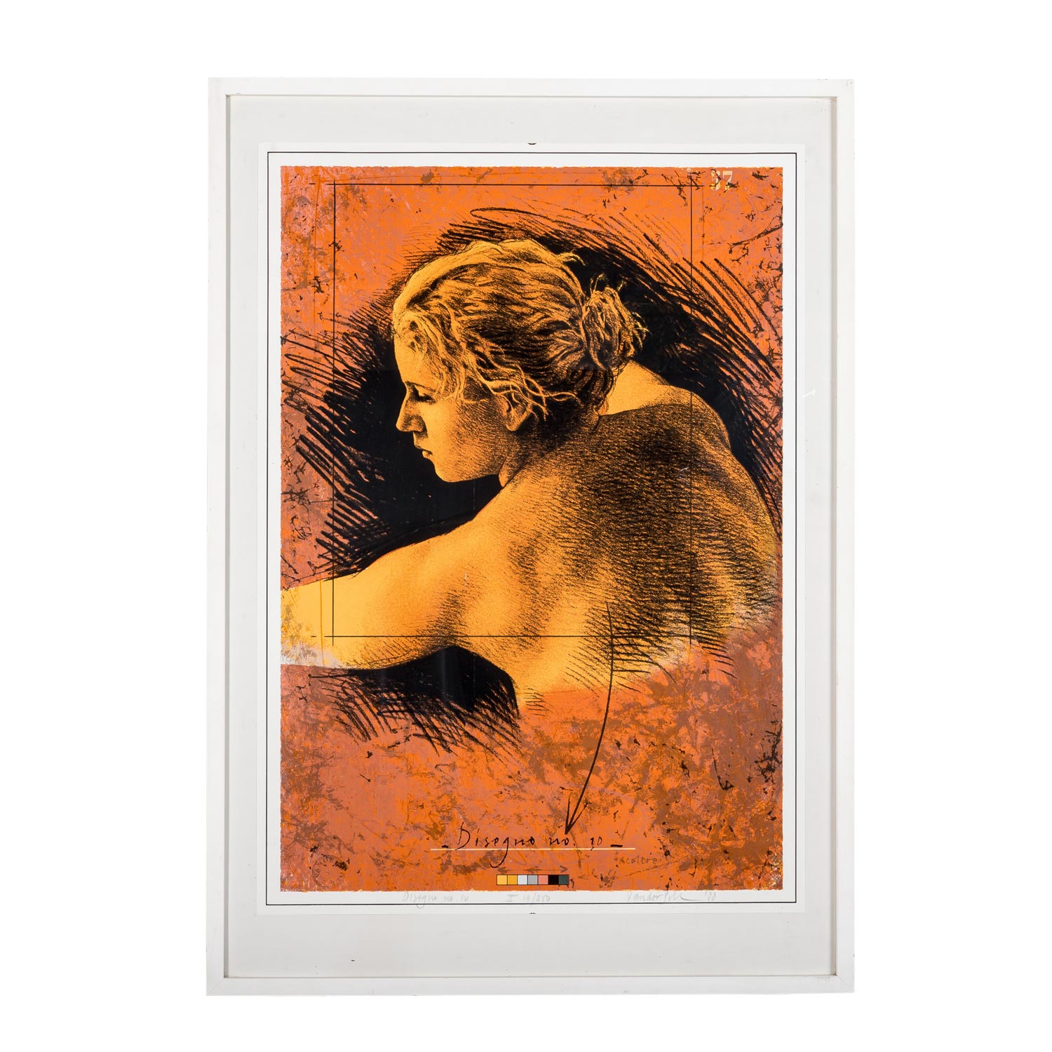 POLL, BAS VAN DER (born in 1947), 2 motifs 'female half-nude', 1x 'Disegno numero 16', chalk drawing, u.r. inscribed and signed and dated 1987 on the right-hand side, HxW: passe-partout cut-out approx. 97x68 cm (111x81 cm with frame) AND 1x 'Disegno no. 10', color serigraph, titled by hand in pencil underneath, num. II 14/250, signed and dated (19)88, HxW: sheet approx. 86x62 cm (103x73 cm with frame). Each with signs of age, the serigraph with a tear at the edge. Each framed behind glass in a passe-partout.