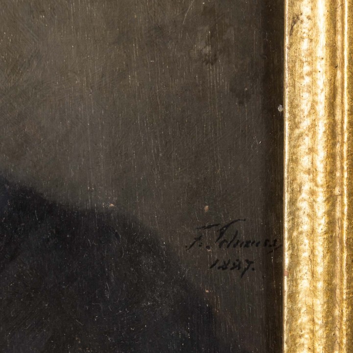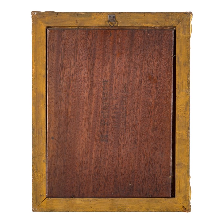 Oil on wood, illegible signature and date, HxW: 32/24 cm. Frame, HxW: 40/32 cm.