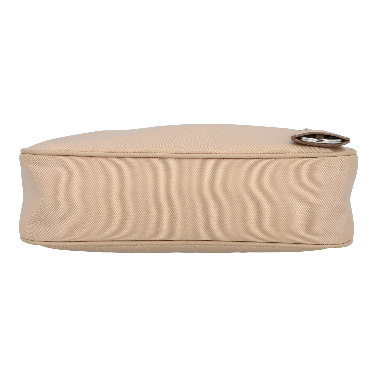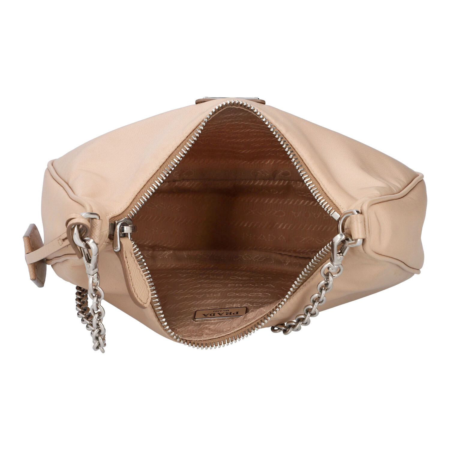PRADA shoulder bag ‘RE-EDITION 2005’, current retail price: €1,650. Re-nylon in beige with silver-coloured hardware, saffiano leather details, detachable chain and shoulder strap with pochette, zip fastening, clochette with ring and Triangolo logo in enamelled metal on the front. Interior in logo textile. Box, dust bag and invoice enclosed. Very good condition. 22 x 6 x 18 cm.