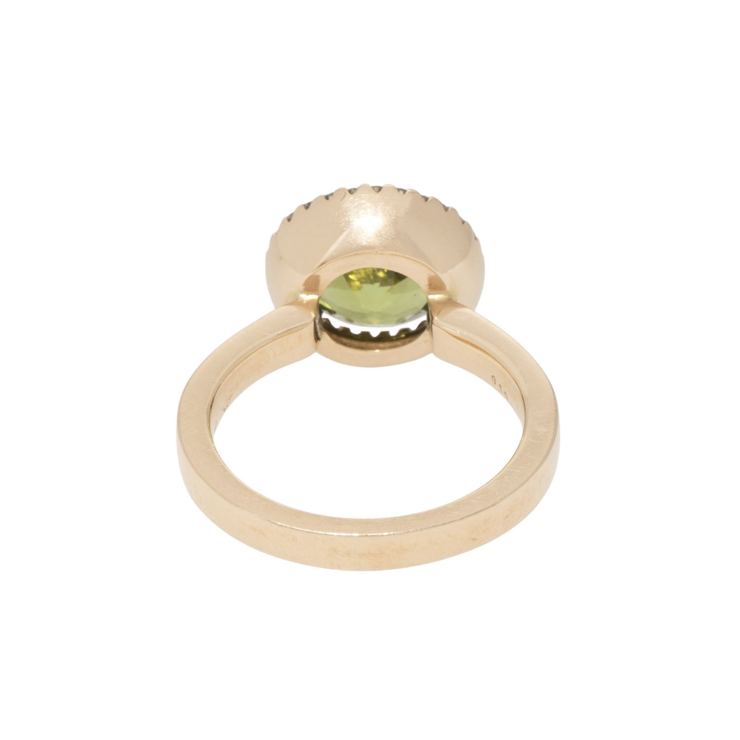 PRE-LOVED ITEM BY @JENNIFERKATHE - CAPOLAVORO “ESPRESSIVO” ring, size 51.5. Current retail price: €3,695. 750 GG band with 9mm peridot and 28 diamonds totaling approx. 0.10ct TW/SI. Case included. Very good condition.