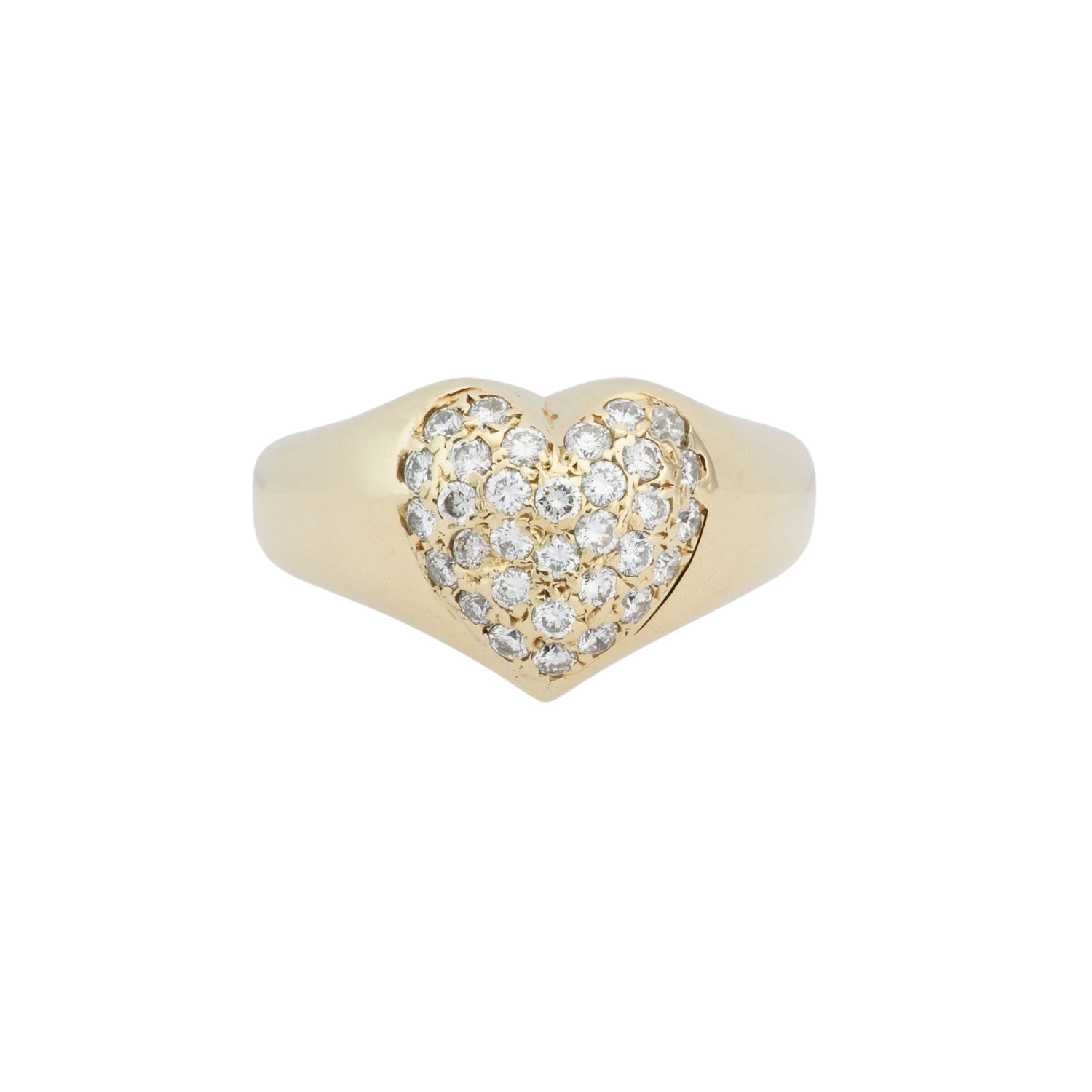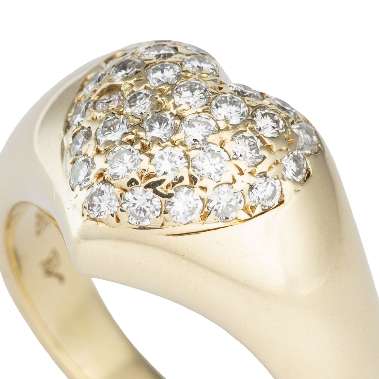 Ring 'Heart' with 32 brillant-cut diamonds totalling approx. 0.48 ct, WHITE (H)/SI, pavé-set, 14K yellow gold, 11.2 g, ring size: 53, W: 3.5 - 11.7 mm, 20th/21st century, minimal signs of wear, with hallmark.