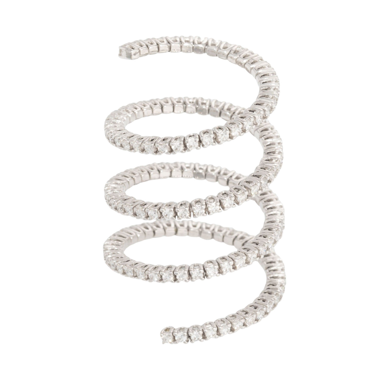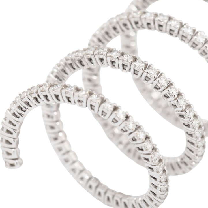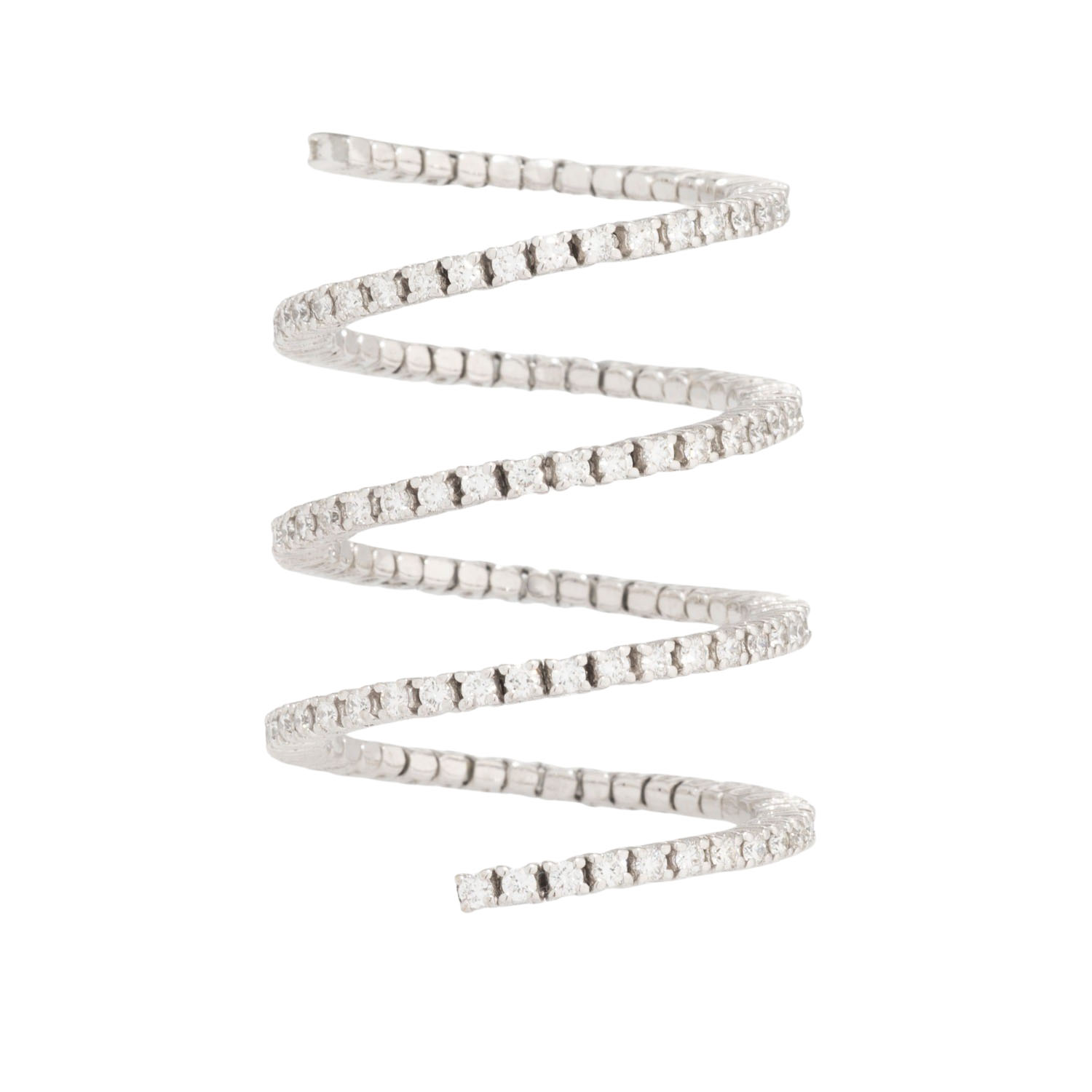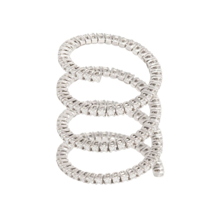 Ring with 137 brilliant-cut diamonds, totalling approx. 1.3 ct, good color and clarity, 18K WG, 6.9 g, ring size: 57, original price: approx. € 7.000 (2017), 20th/21st century, minor signs of wear, spiral shape.
