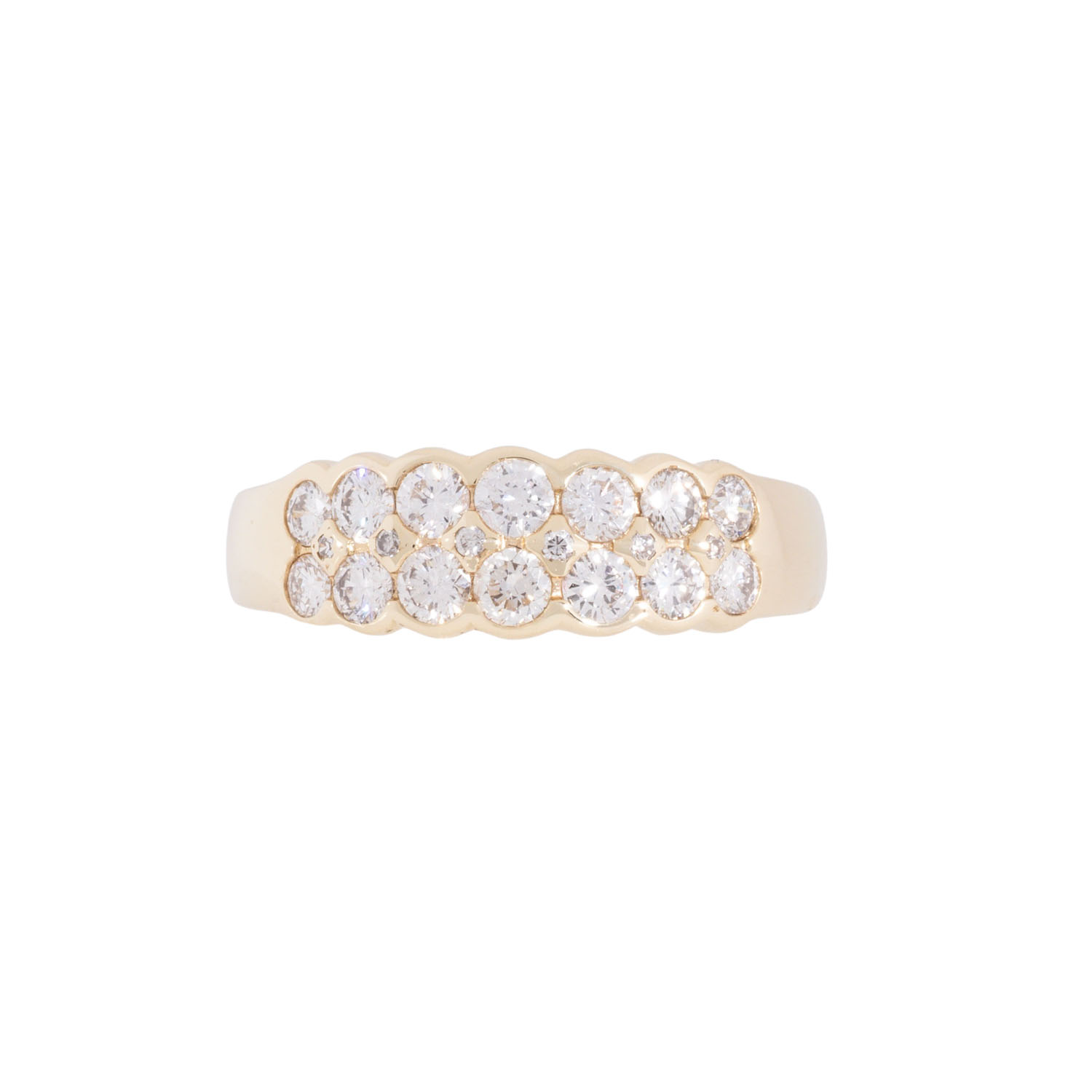 Ring with 20 brilliant-cut diamonds totalling 1.00 ct (grav.), RW (F-G)/VS, 14K yellow gold, 4.4 g, ring size: 57, W: approx. 3.2 - 7 mm, 21st century, minimal signs of wear.