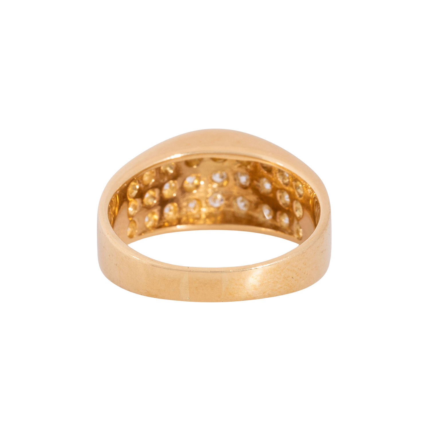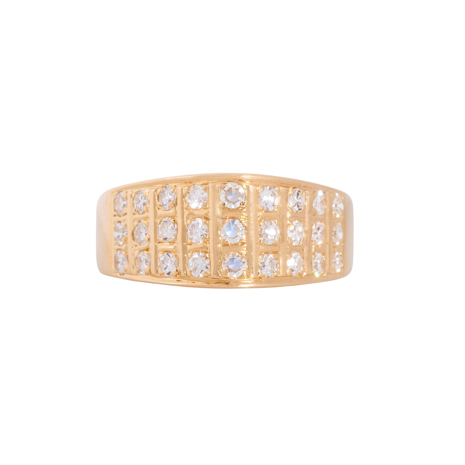 Ring with 27 single-cut diamonds totalling approx. 0.57 ct, WHITE (H)/VS-SI, 18K yellow gold, 6.7 g, ring size: 56, W: approx. 3.2 - 8.9 mm, end of 20. century, minor signs of wear.