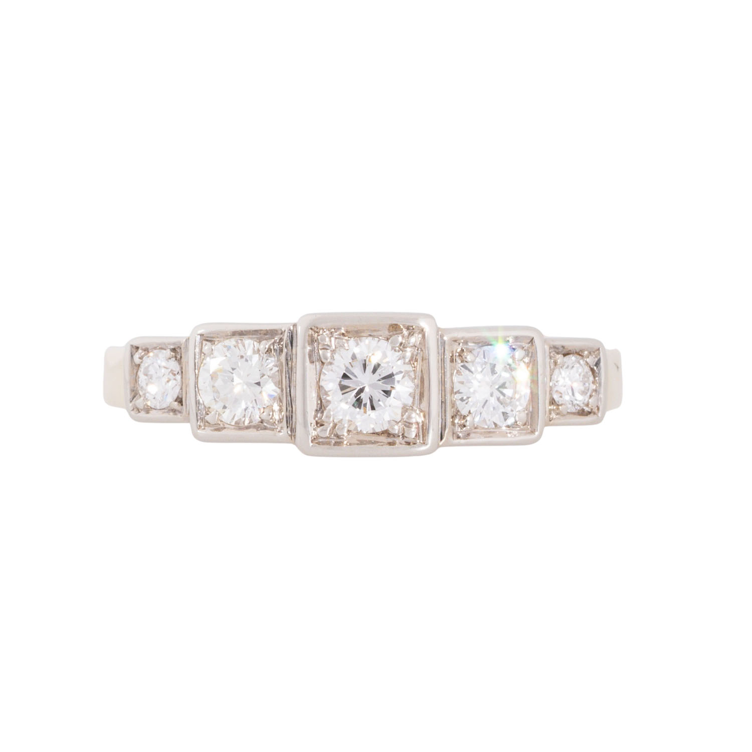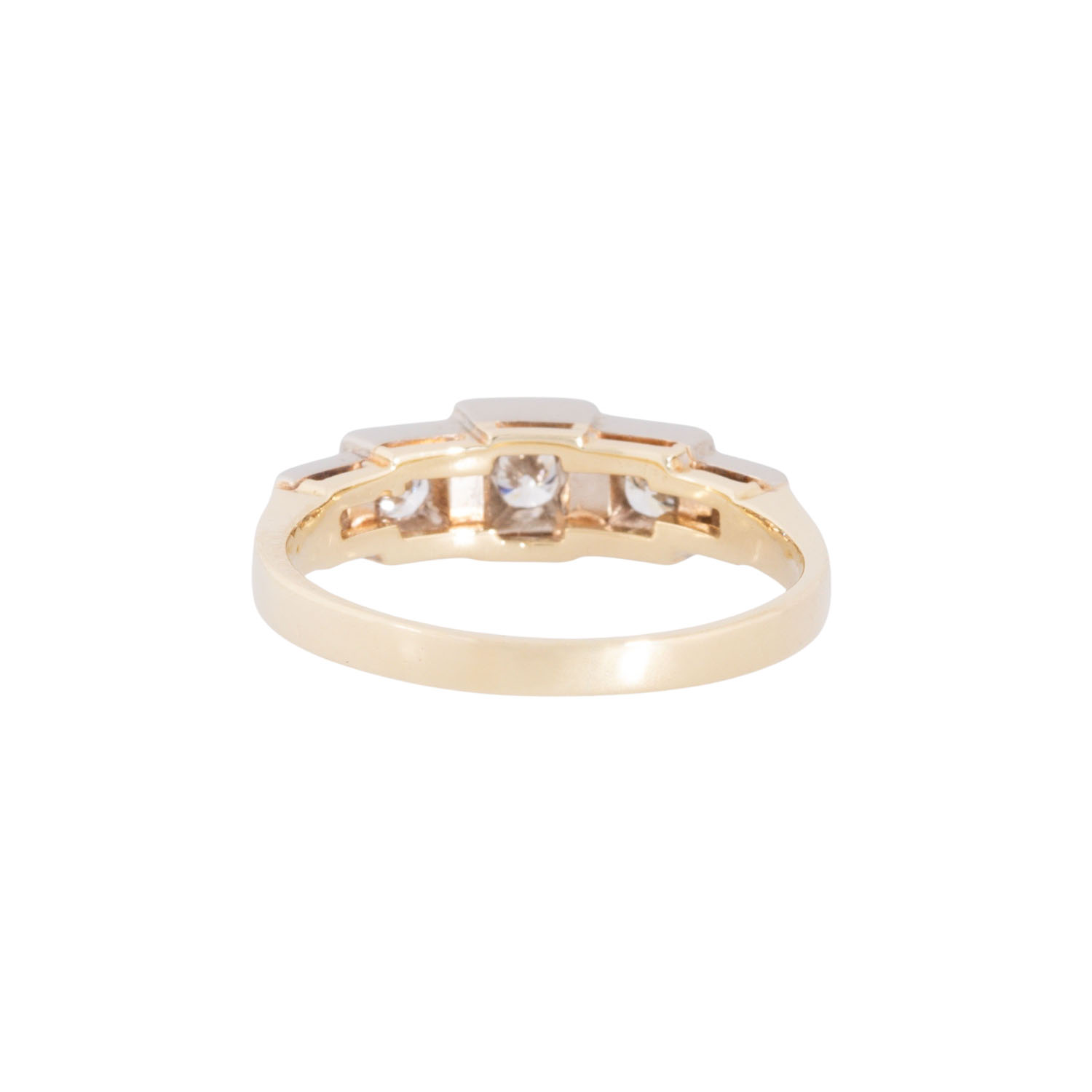 Ring with 5 brilliant-cut diamonds totalling approx. 0.37 ct, of which the central brilliant approx. 0.15 ct, WHITE (H)/VS, 14K yellow gold/white gold, 3.6 g, ring size: 55, W: approx. 2 - 5.5 mm, 2nd half of the 20th century, minimal signs of wear.