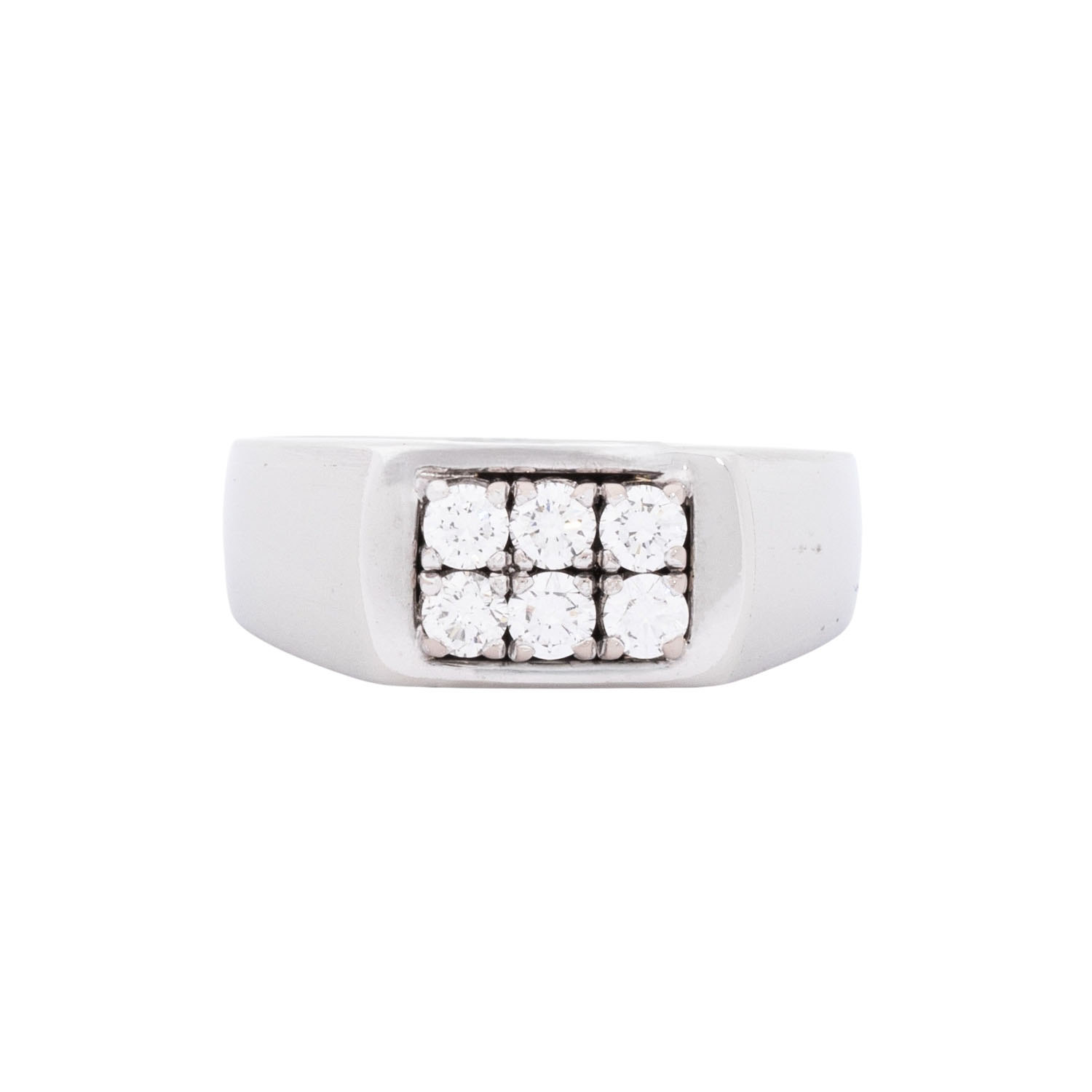 Ring with 6 brilliant-cut diamond ca. 0,30 ct, ca. WHITE (H)/VS, 18K white gold, 7.4 g, ring size: 56, late 20th century, minor signs of wear, handcrafted work.