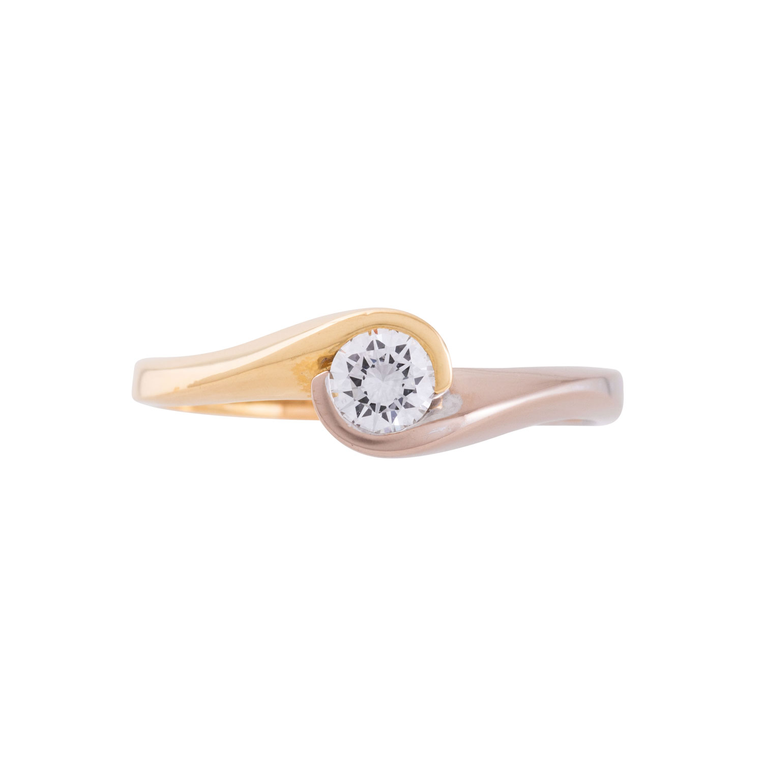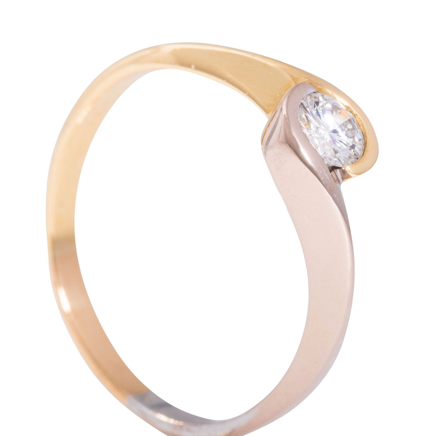 Ring with brilliant-cut diamond ca. 0.33 ct, ca. STW (I)/VS, replacement value ca. 2,400 €, 18K YG/WG, 4 gr, late 20th century, minor signs of wear, maker's mark Gebrüder Schaffrath.