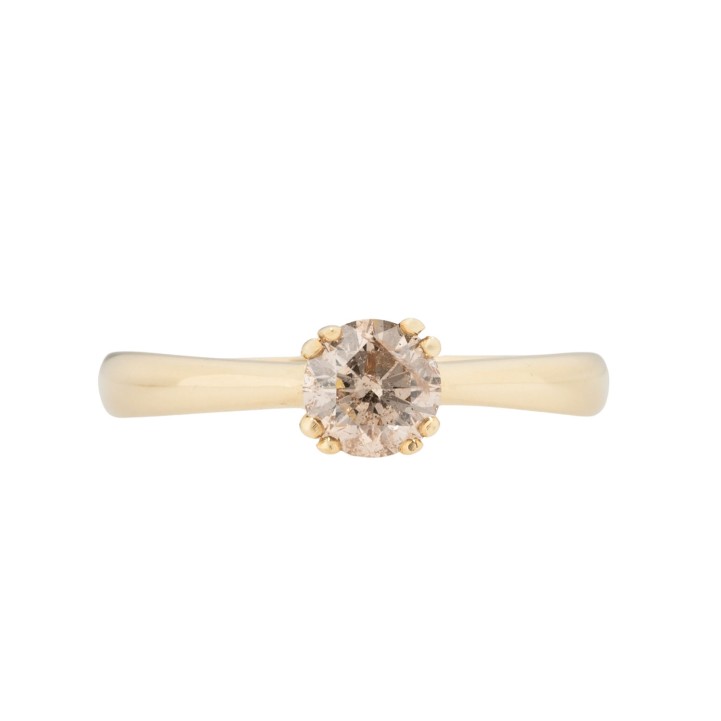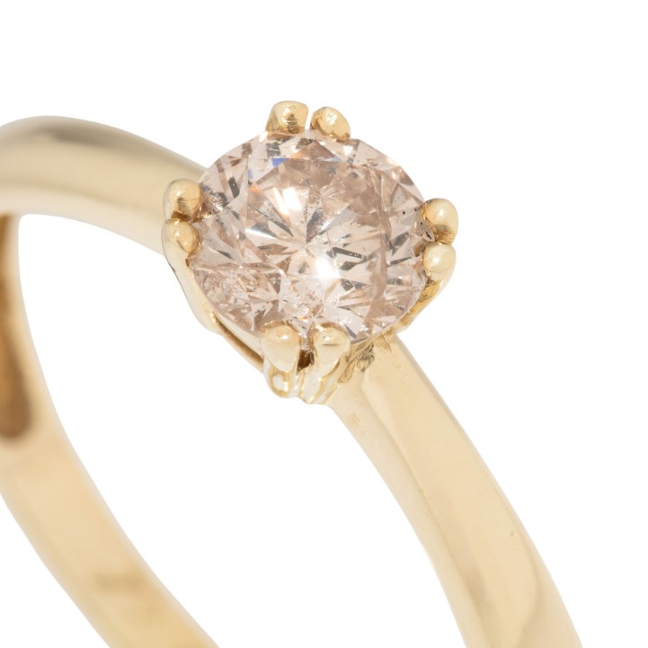 Ring with brilliant-cut diamond ca. 1 ct, ca. champagne/I2, 14K YG, 2.9 g, ring size 66, minor signs of wear. Inside with carat weight and number engraving.