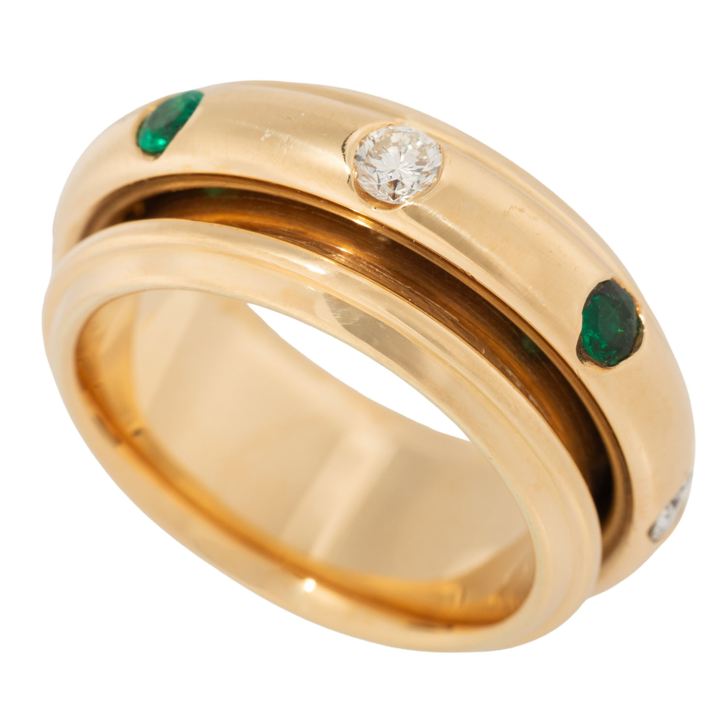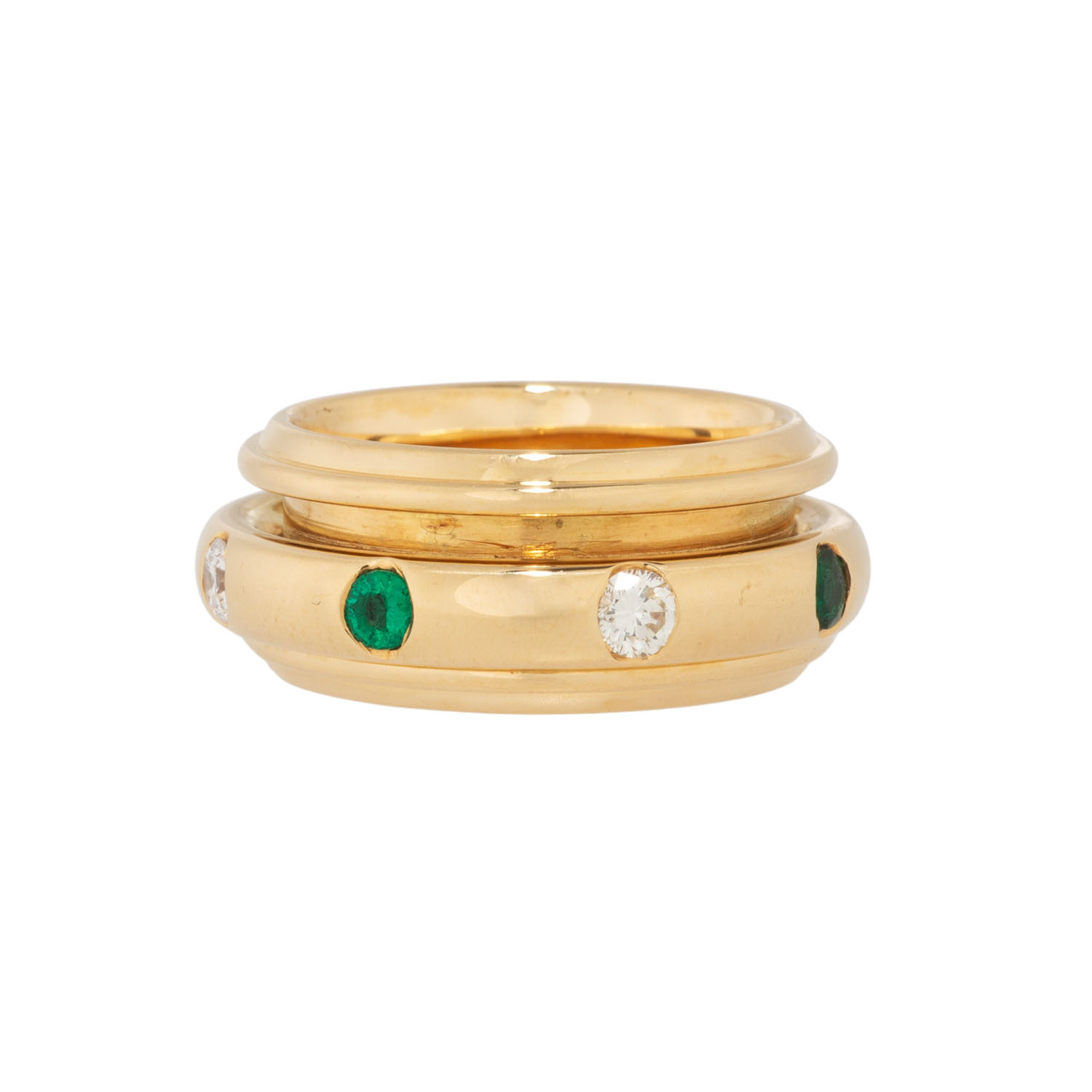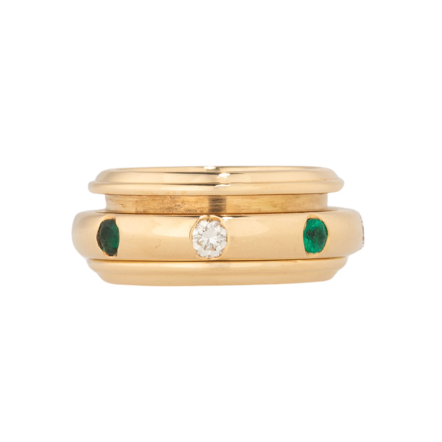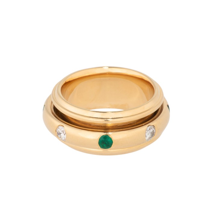 Hoop earrings with 4 brilliant-cut diamonds totall., WHITE (H)/VS-P, 18K yellow gold, 19 g, ring size 54, late 20th century, minor signs of wear, centre ring movable.