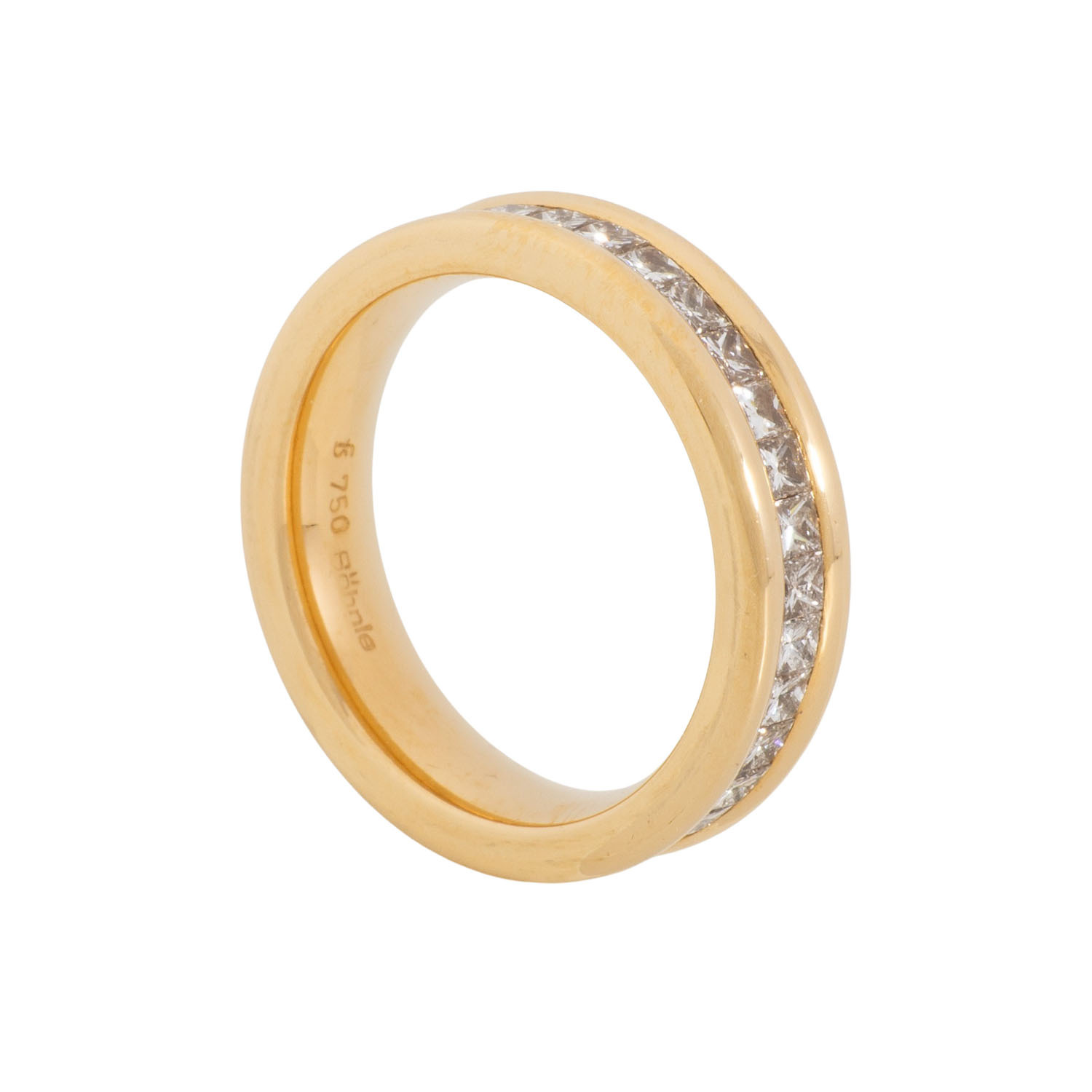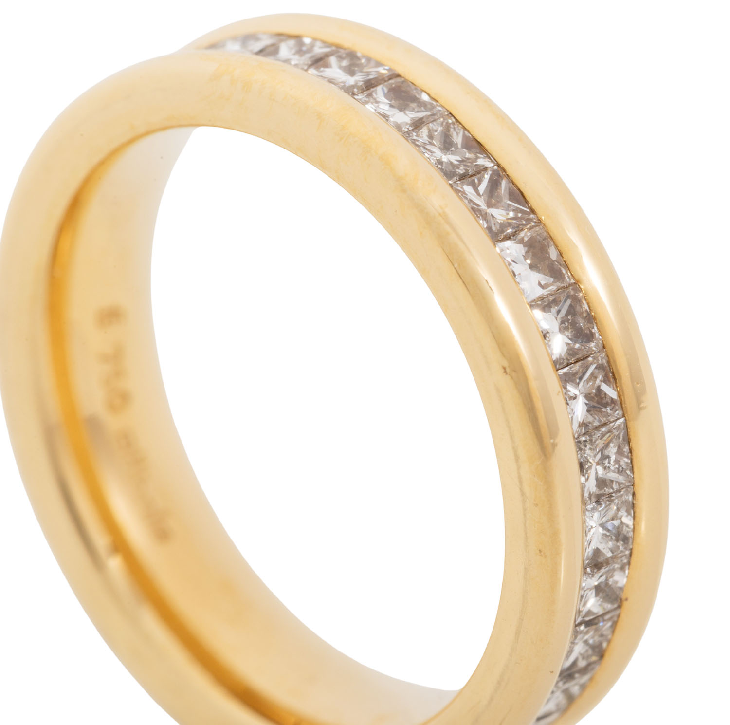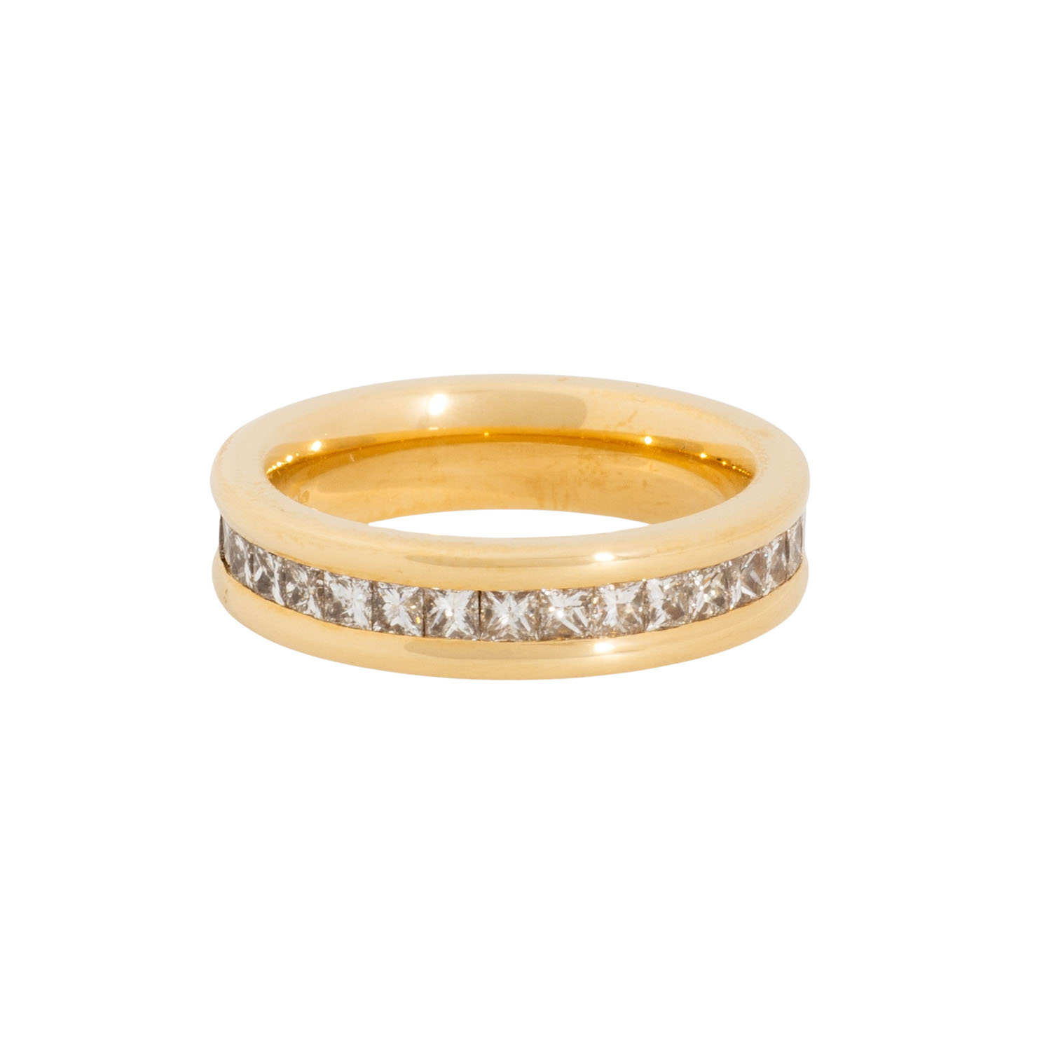 Ring with princess-cut diamonds all around totalling ca. 1.8 ct, good colour and clarity, 18K yellow gold, 9.5 g, ring size 57, late 20th century, good condition, marked 'söhnle', solid workmanship.
