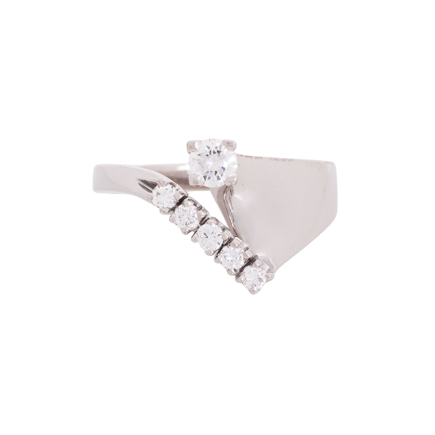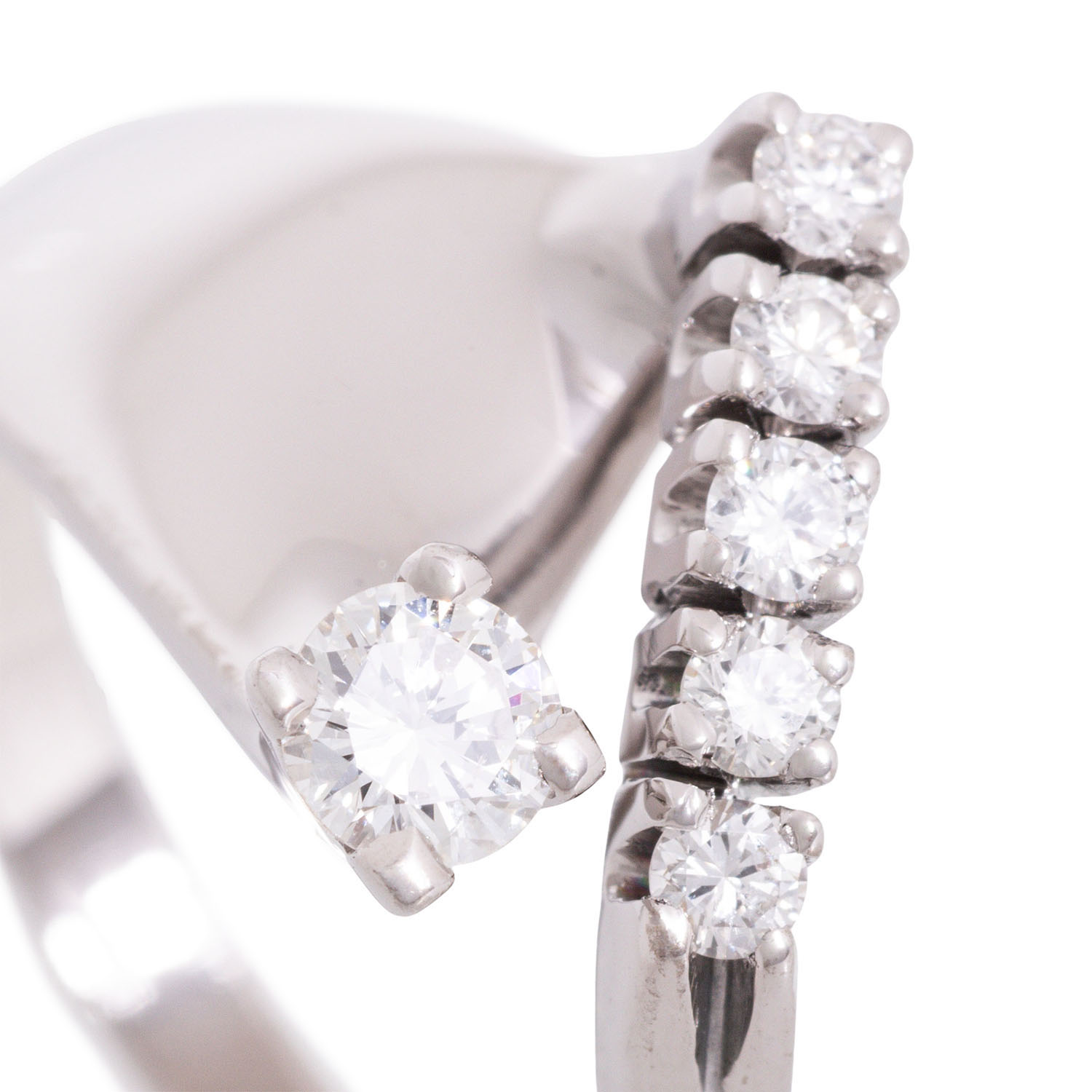 Ring with 1 brilliant-cut diamond 0.21 ct and 5 brilliant-cut diamonds totalling 0.41 ct (gest.), WHITE-STW (H-J)/SI, white gold 18K, 6.8g, ring size: 55, 21st century, minimal signs of wear, with manufacturer's mark.