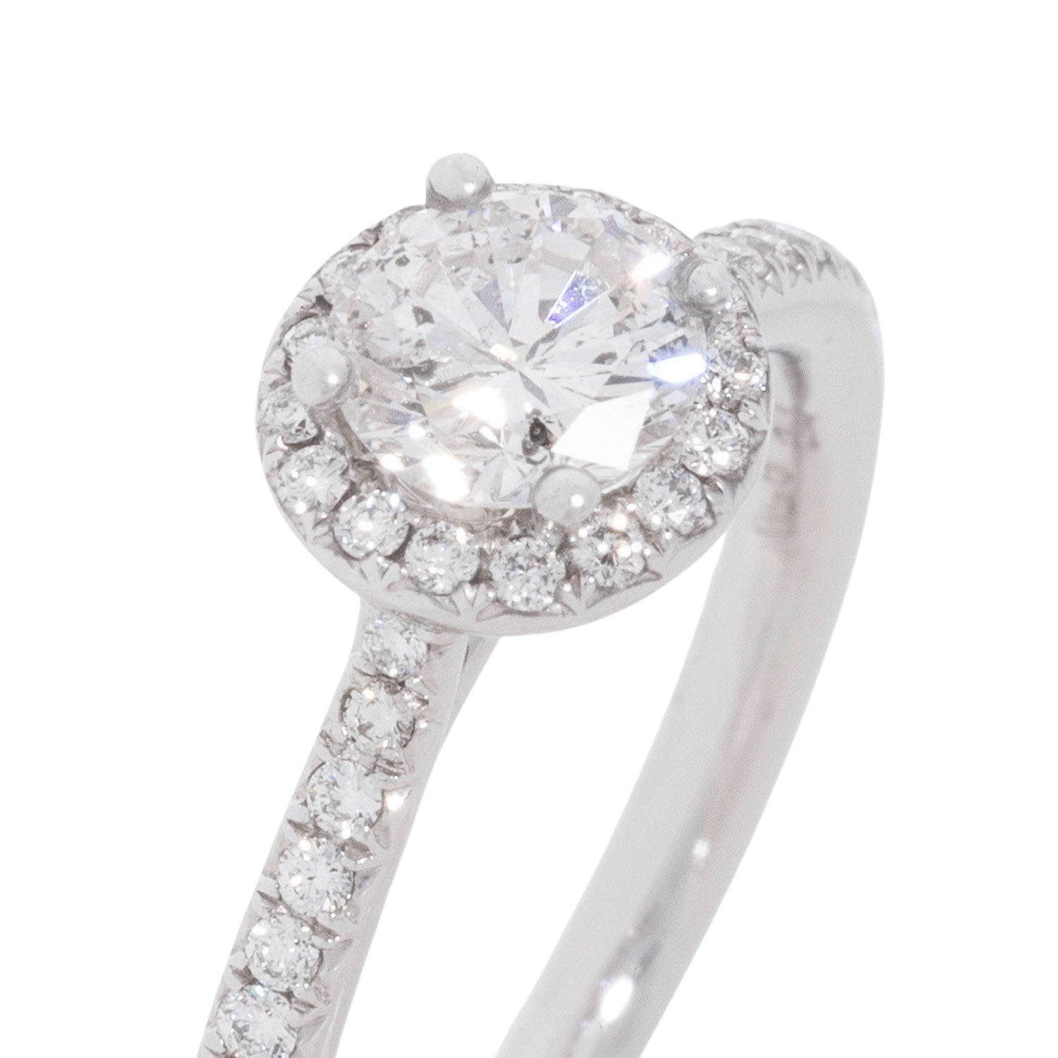 Ring, central with 1 brilliant-cut diamond ca. 0.66ct. RW(G)/Pi2. and 34 small diamonds totalling ca. 0.28ct., RW (G)/ SI-PI, 950 platinum, ring size 48,5, 21st century, good condition.
