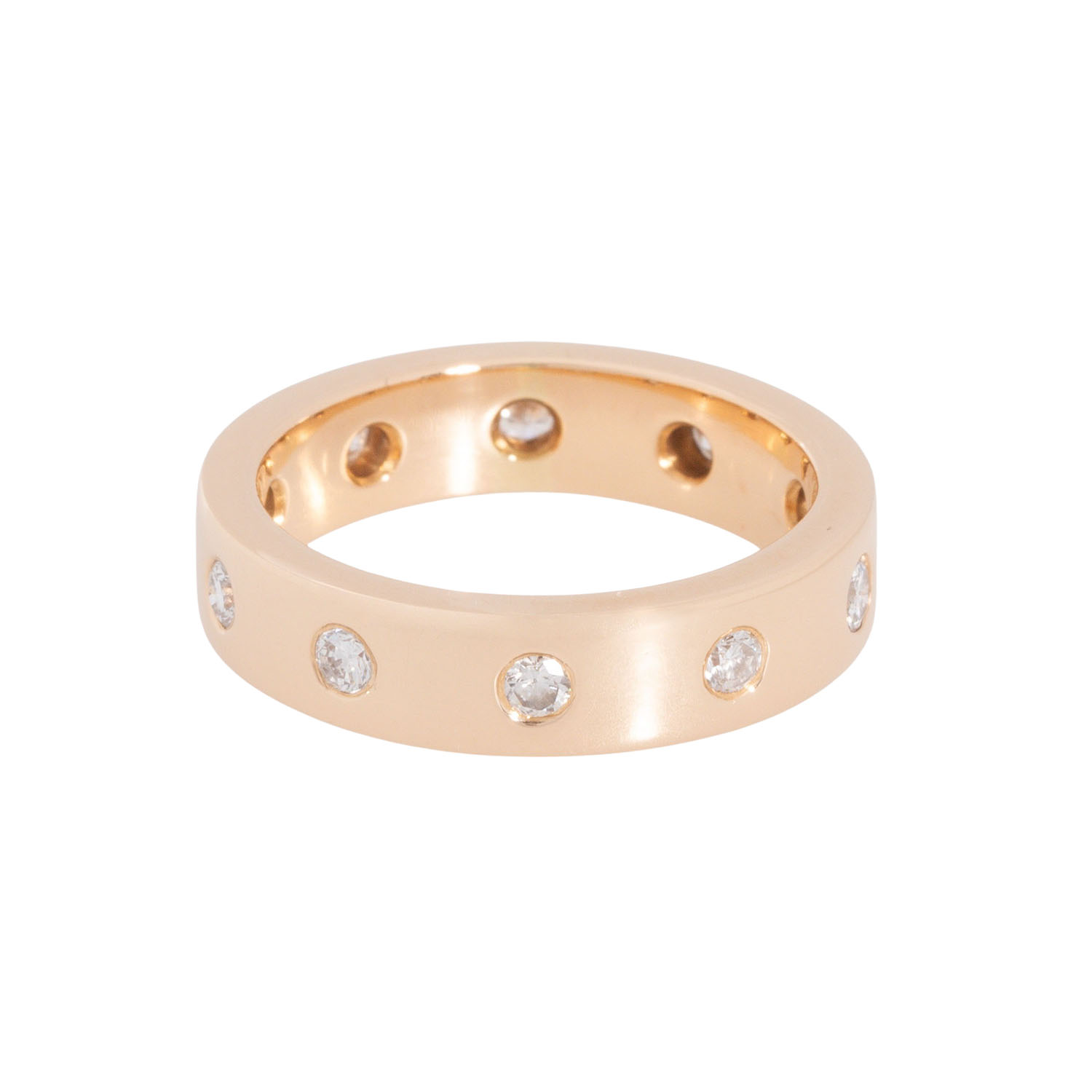 Eternity ring with 10 brilliant-cut diamonds totall. ca. 0.6 ct, ca. WHITE (H)/SI-P, 18K rosé gold, 9 g, ring size: 56, 21st century, minor signs of wear.