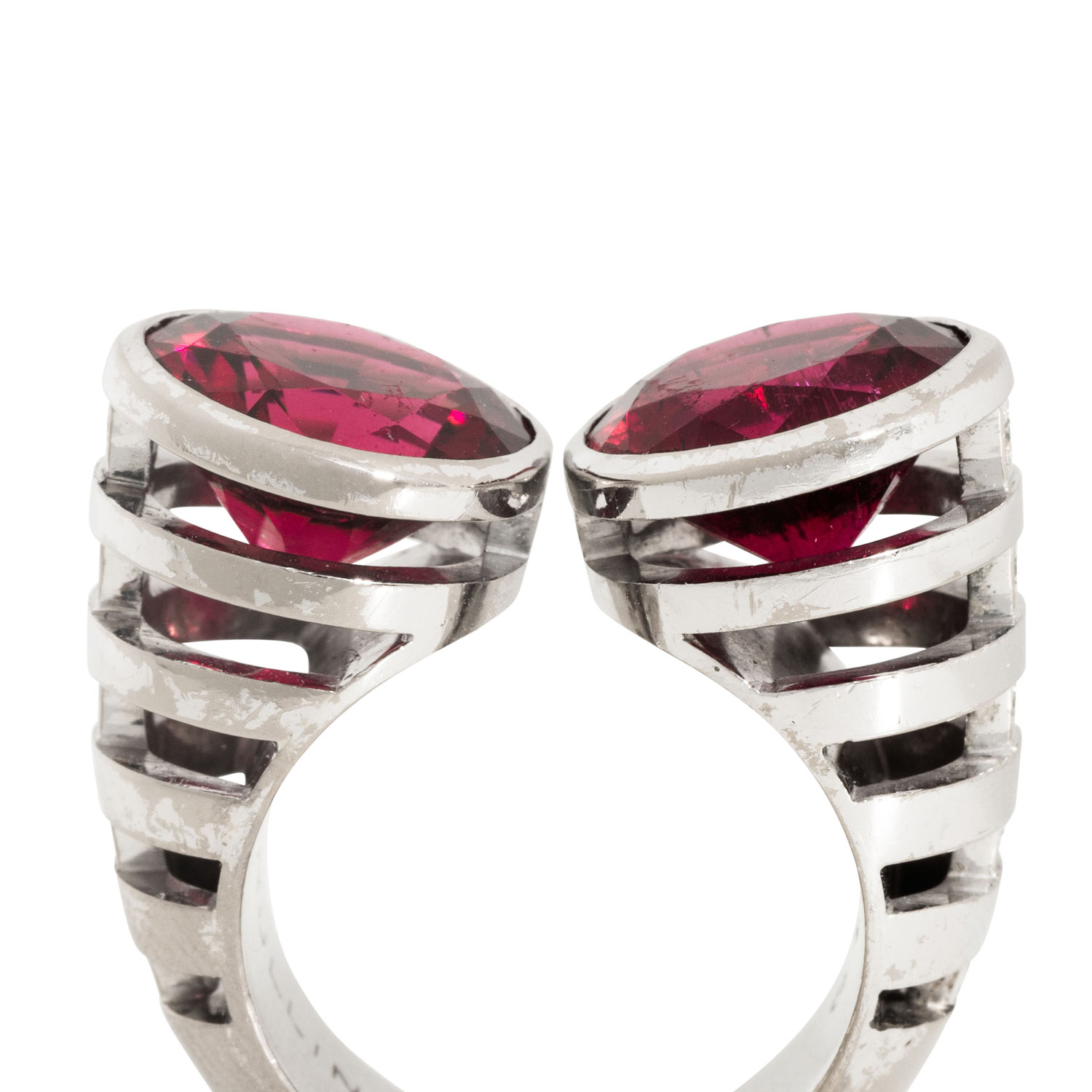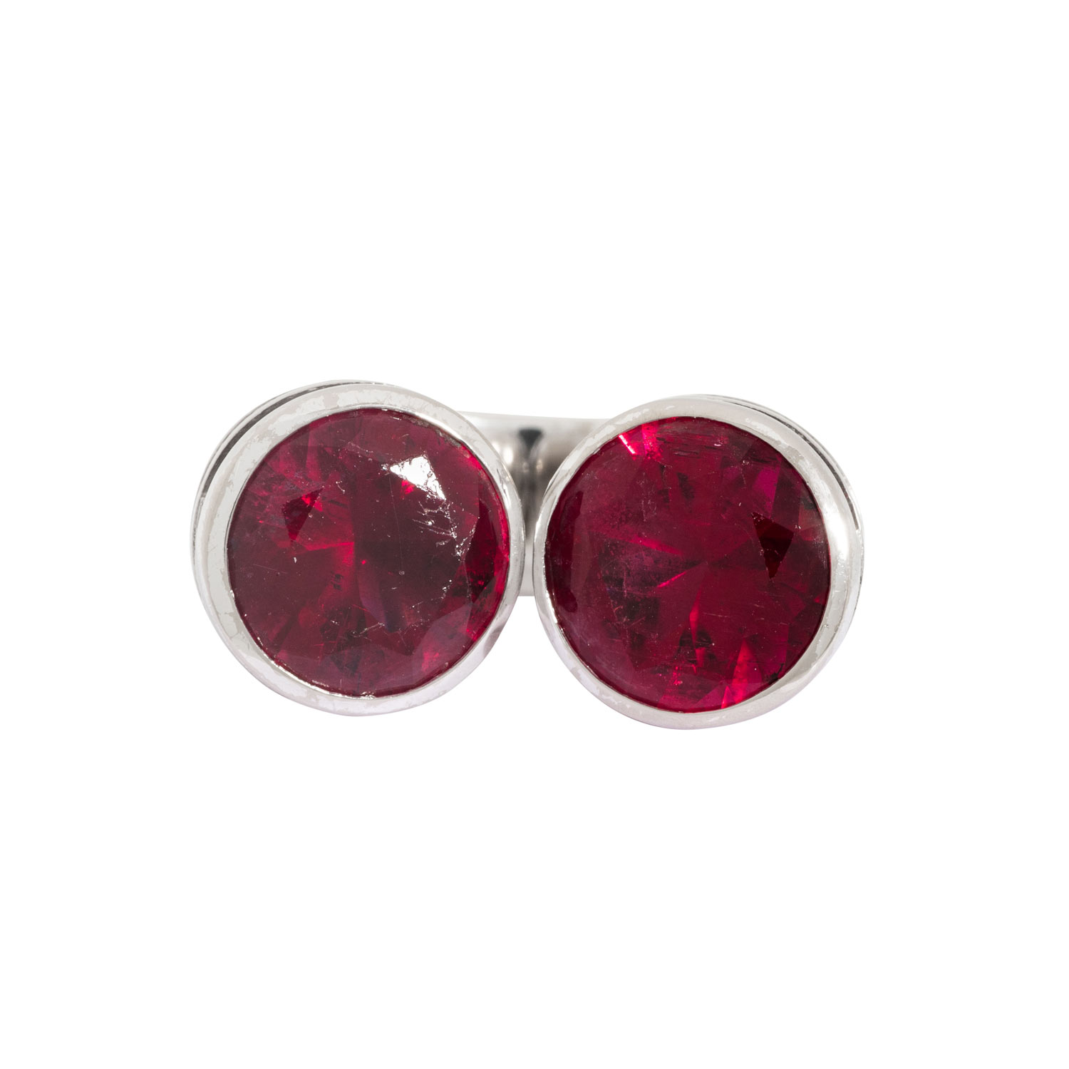 Ring with 2 rubellites weighing approx. 9.98 ct in total
