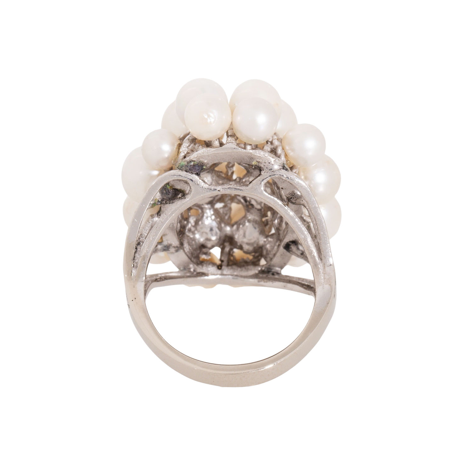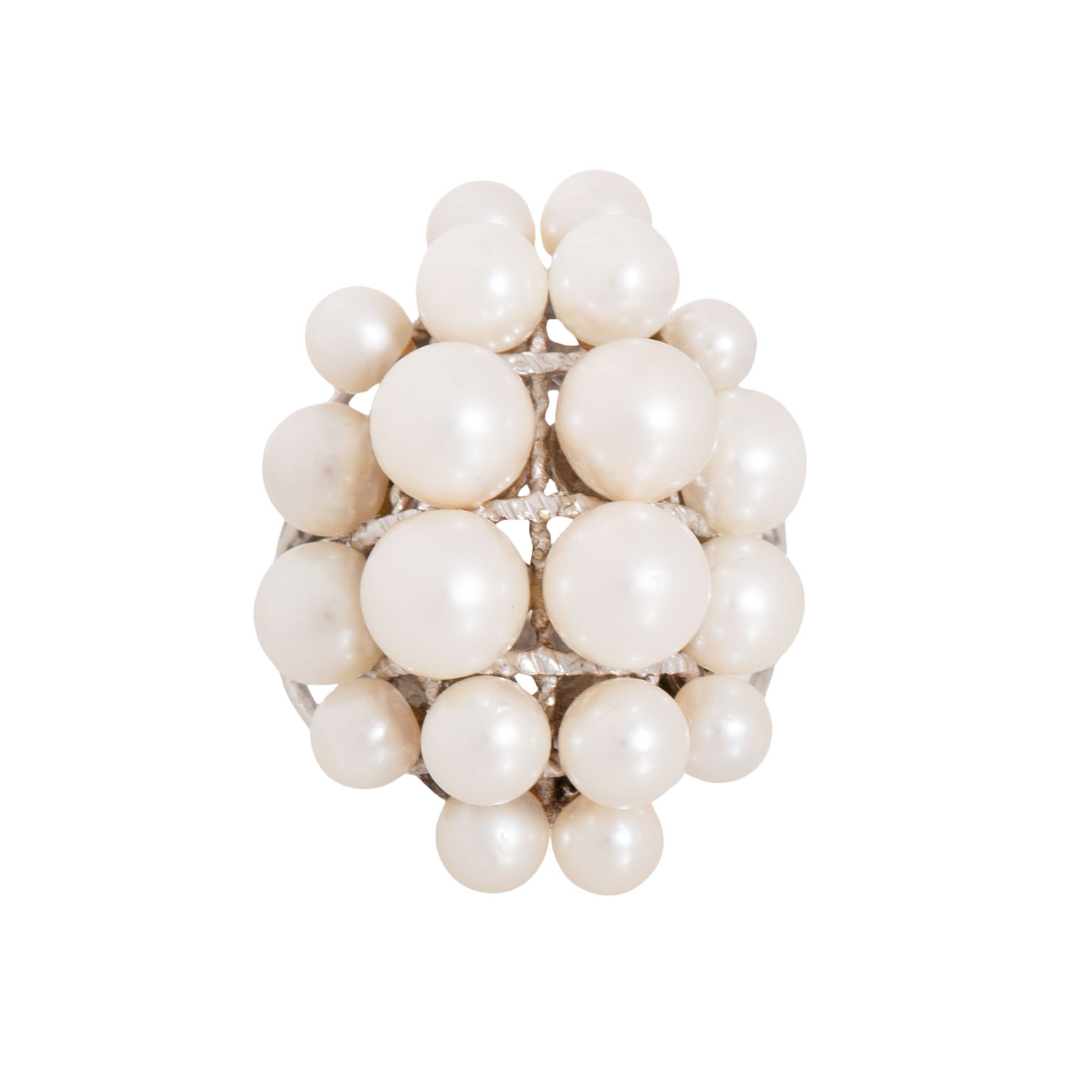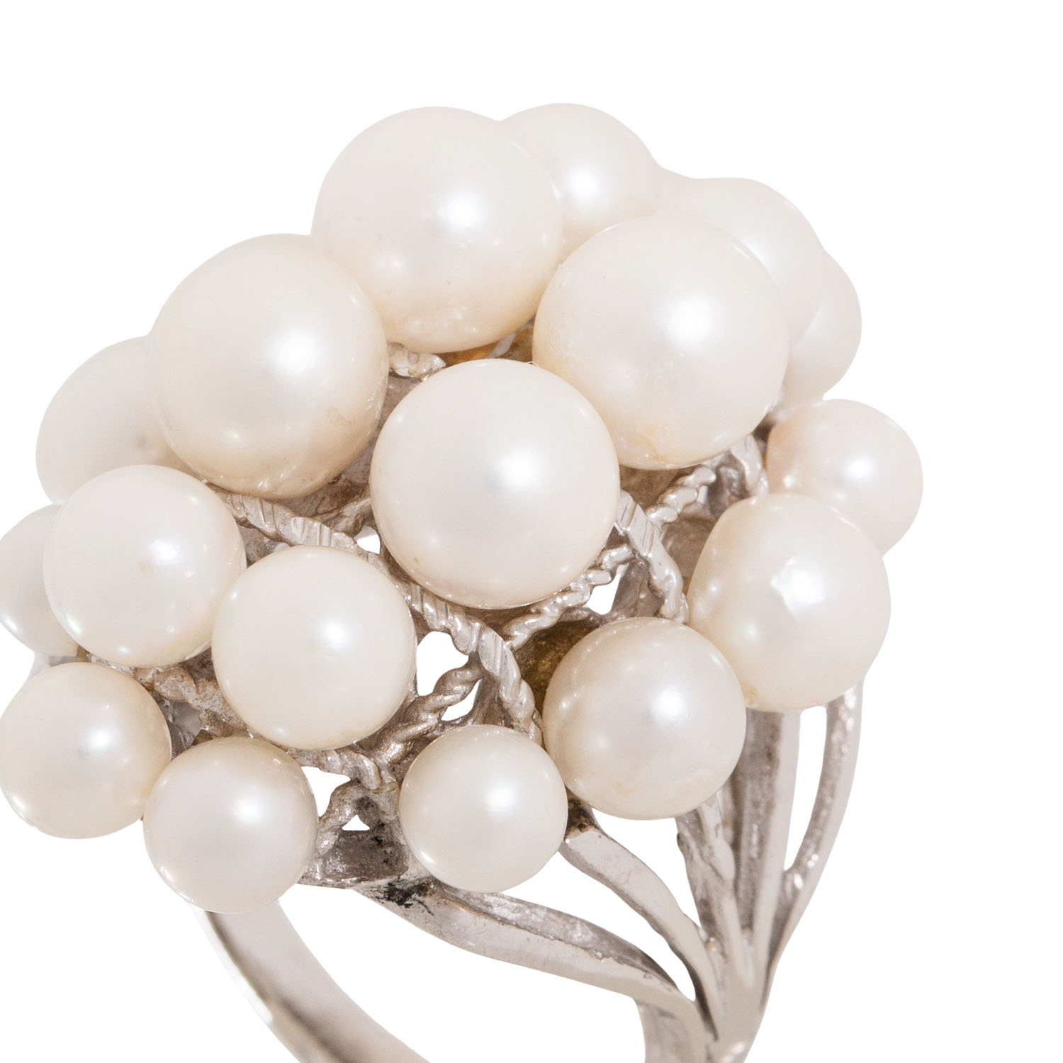 Ring with 20 cultured Akoya pearls, white, D: 4 - 6.5 mm, good to medium lustre, 14K white gold, ring size 51, mid 20th century, minor signs of wear.
