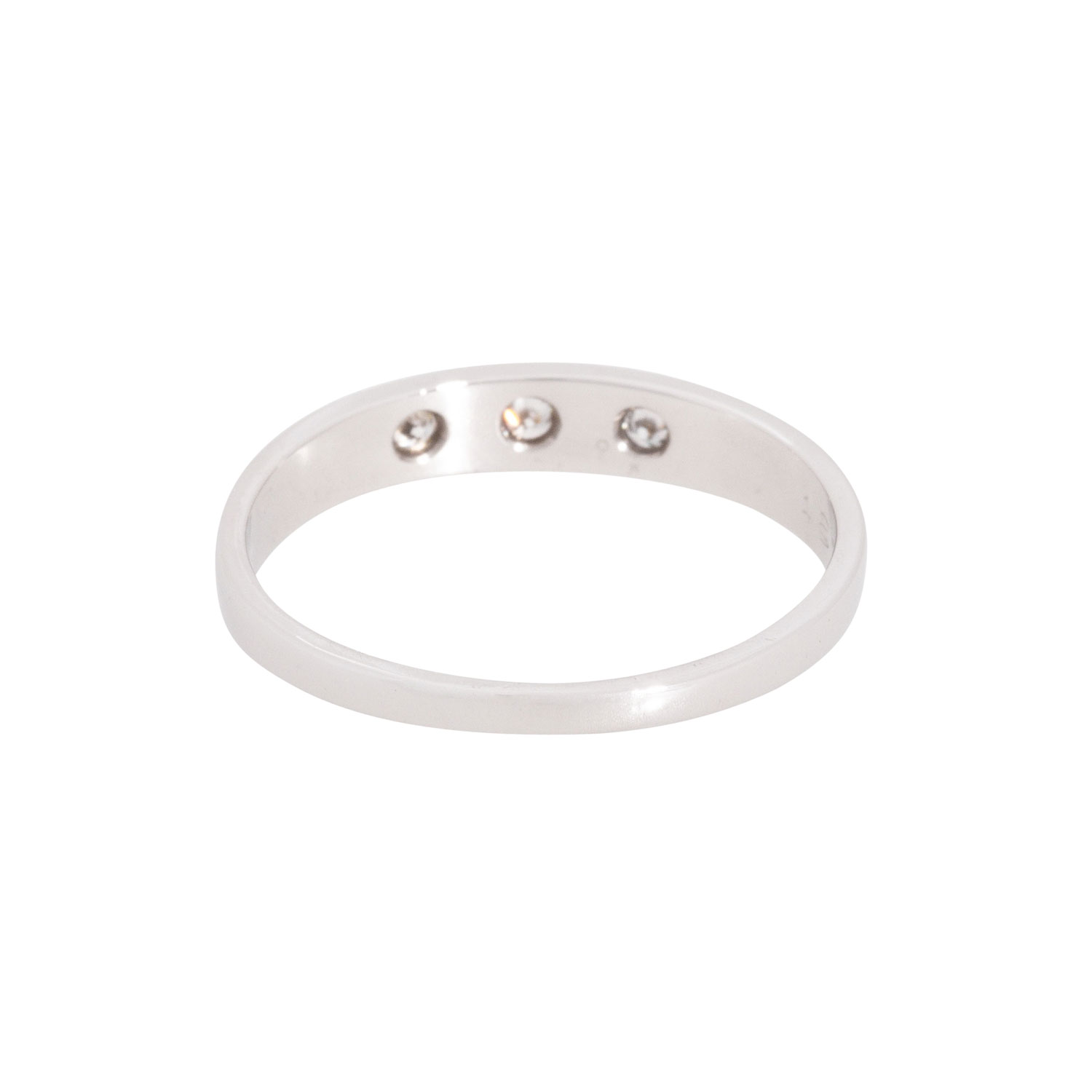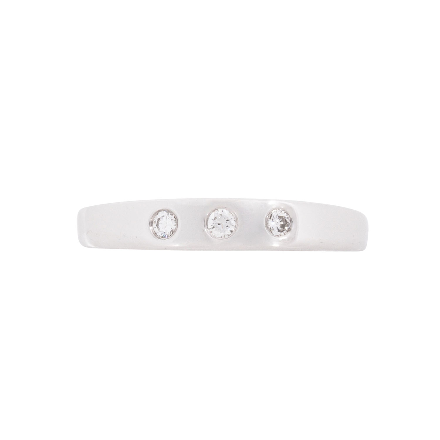 Ring with 3 brilliant-cut diamonds totall. ca. 0,12 ct, marked, good colour and clarity, 14K white gold, 2.8 g, ring size: 62.5, late 20th century, minor signs of wear.