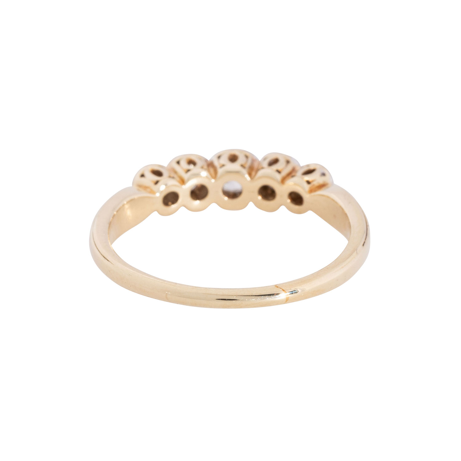 Ring with 5 brilliant-cut diamonds totalling ca. 0.36 ct, ca. WHITE (H)/VS, 14K yellow and white gold, 3.8 g, ring size: 62, late 20th century, signs of wear.