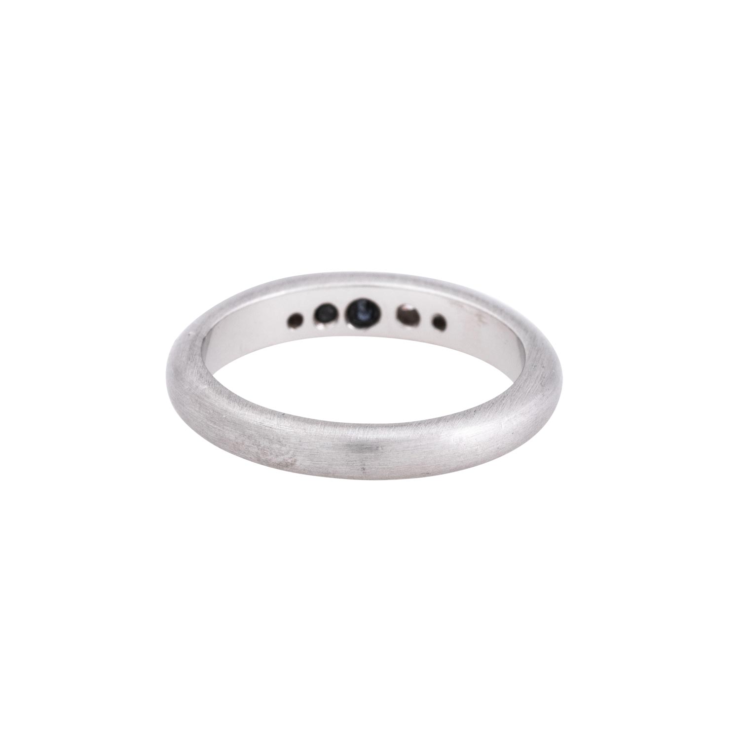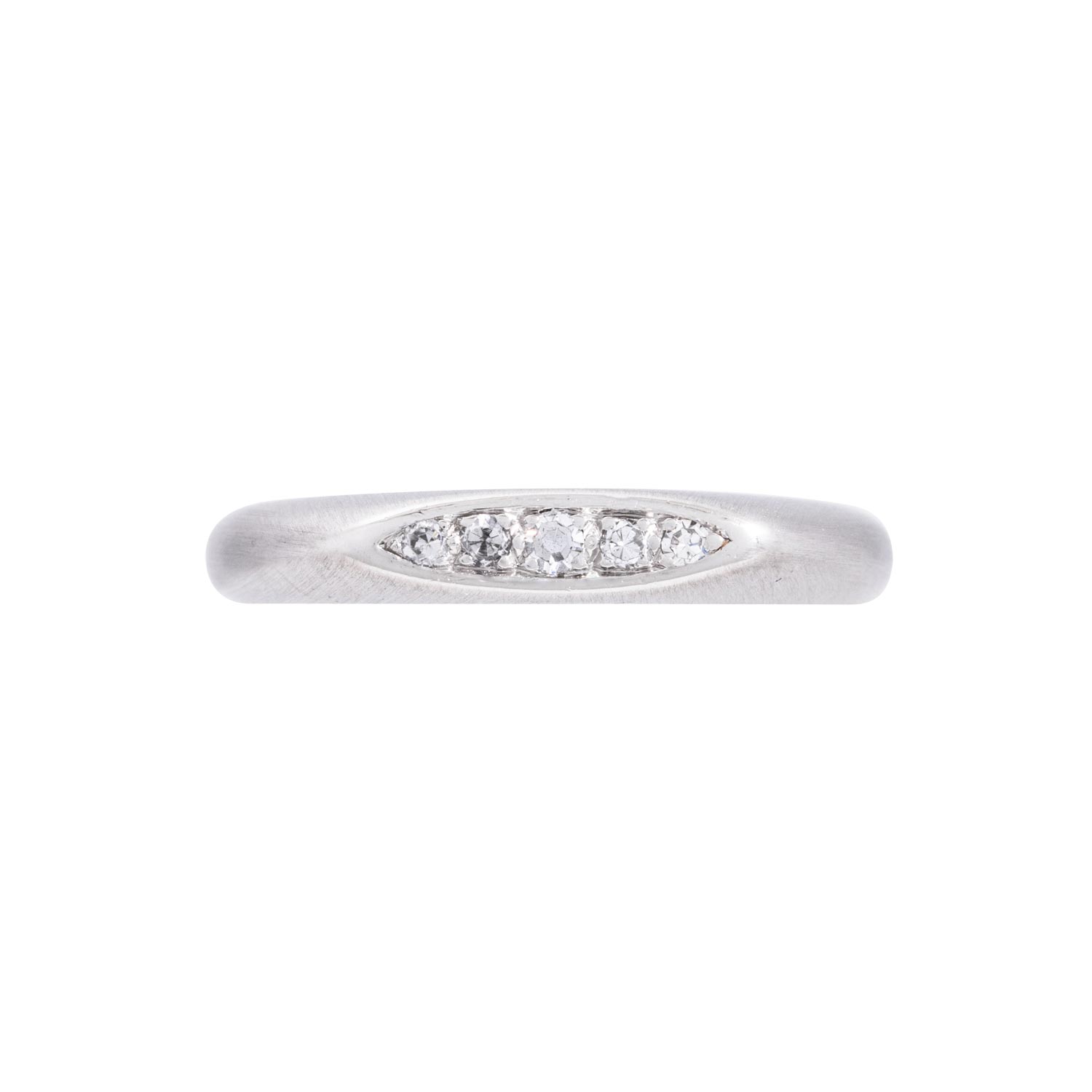 Ring with 5 single cut diamonds totall. ca. 0,05 ct, medium colour and clarity, 950 PT, 5.7 g, ring size: 52, 20th century, minor signs of wear.