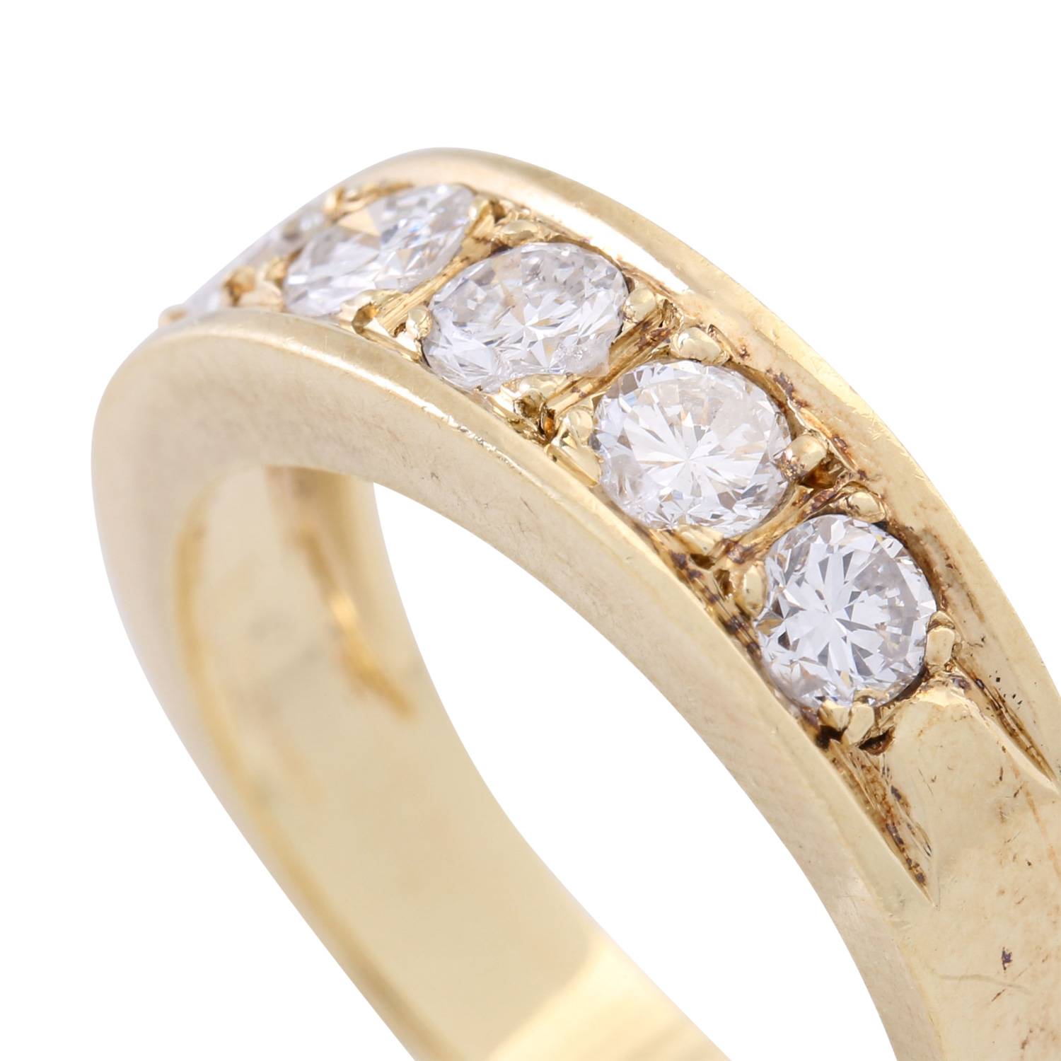 Ring with 6 brilliant-cut diamonds totalling ca. 1.0 ct, RW (G)/VS-SI, YG 14K, 5.9 g, ring size 54, 20th/21st century, good condition. Handcrafted.