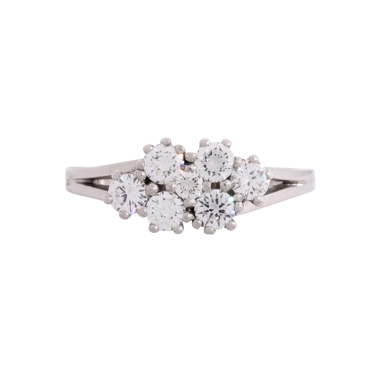 Ring with 7 brilliant-cut diamonds totalling ca. 0.64 ct, engraved, ca. WHITE-STW (H-J)/VS-SI, WG 18K, 3.8 g, ring size 51, 20th/21st century, with minimal signs of wear.